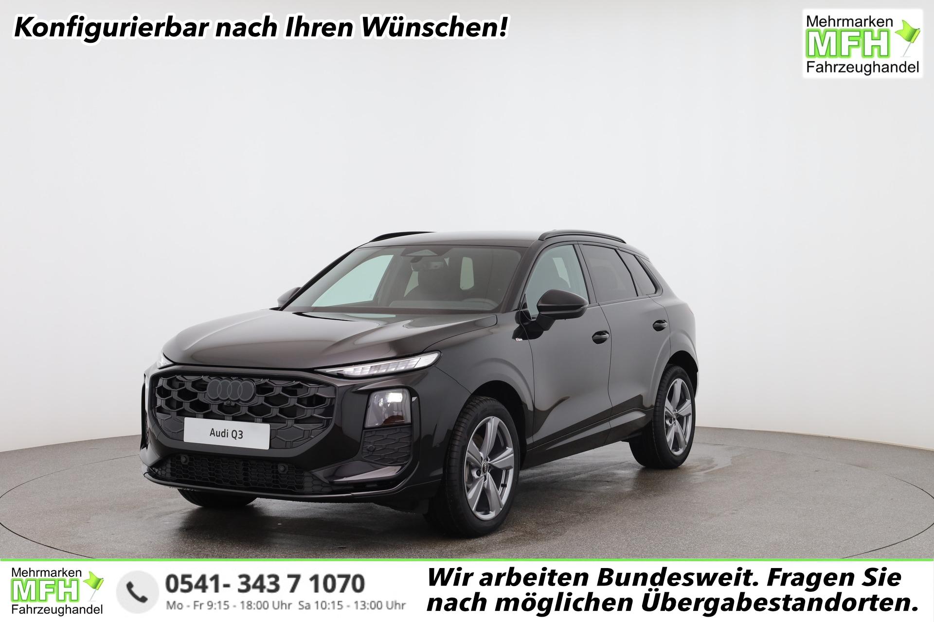 Audi Q3 Basis 2.0 TFSI quattro (Allrad) 204PS S-Tronic (Automatik), 17" Alufelgen, Elektr. Heckklappe, MMI Navigation plus, Sitzheizung, 3-Zonen-Klimaautomatik, Parksensoren vorn/hinten, M-Lederlenkrad, Tempomat, Dachreling, Virtual Cockpit