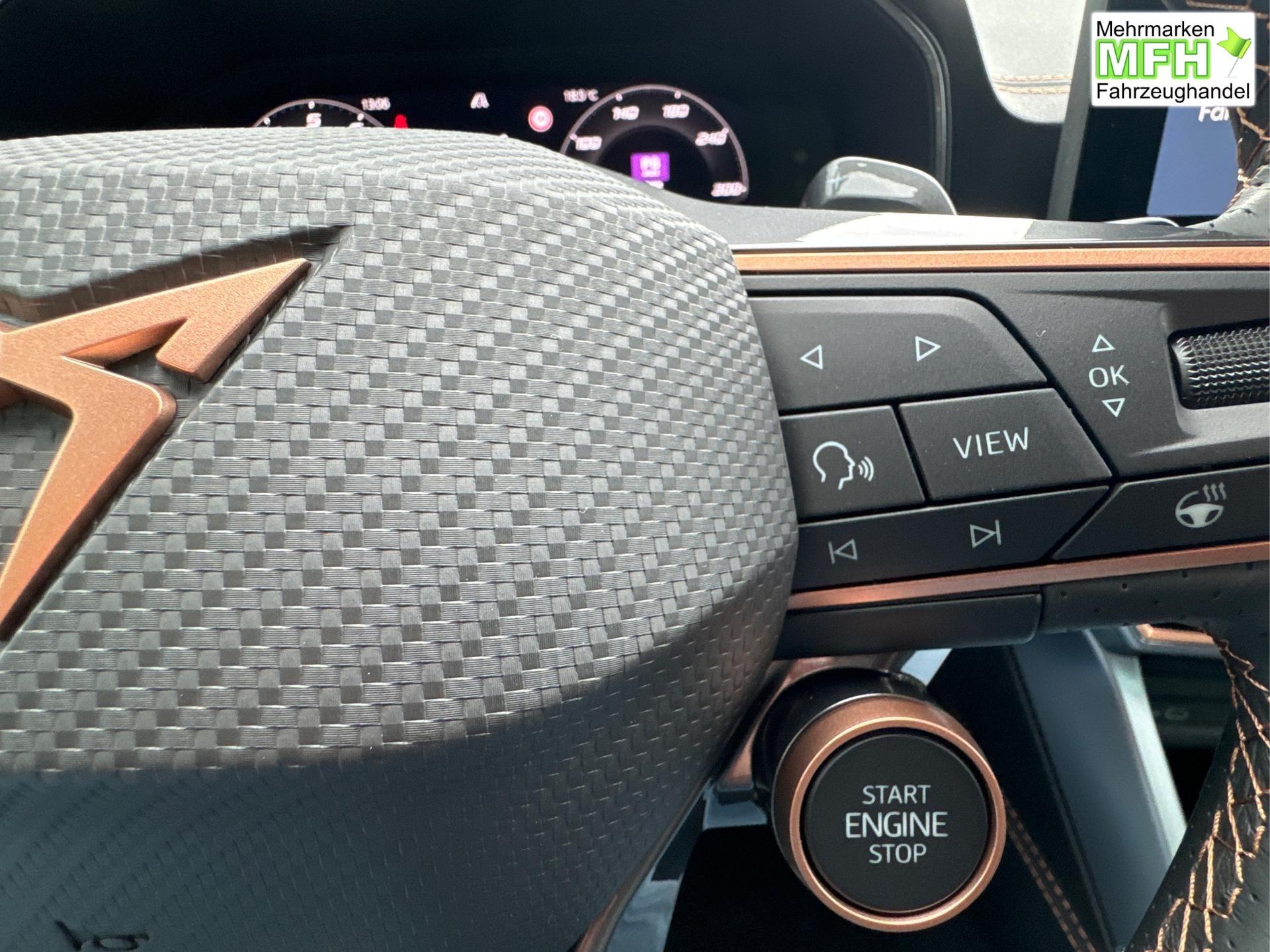 • Multifunktionslederlenkrad, Sportlenkrad, beheizbar, mit Schaltwippen und Cupra Mode Selector vorhanden