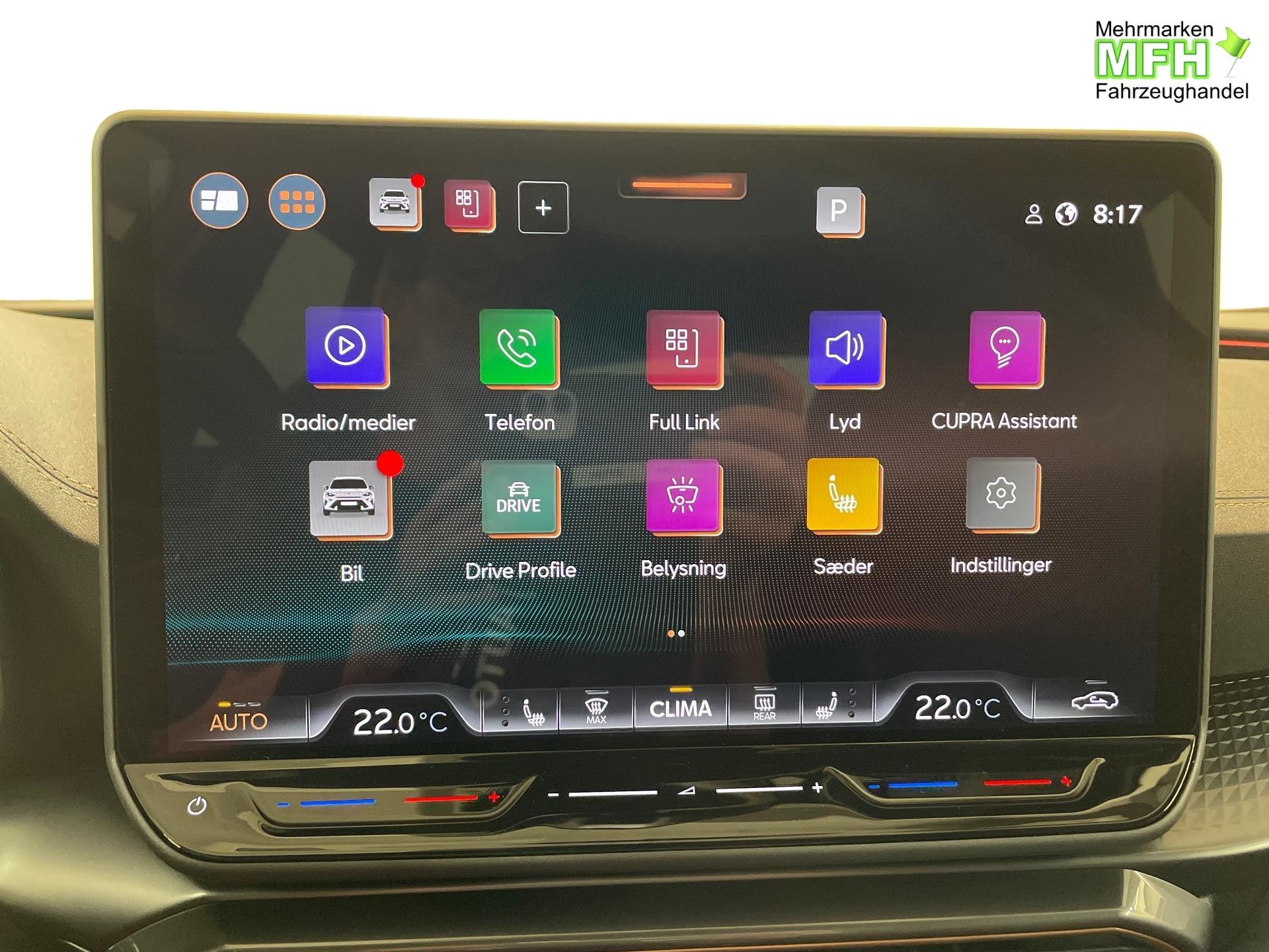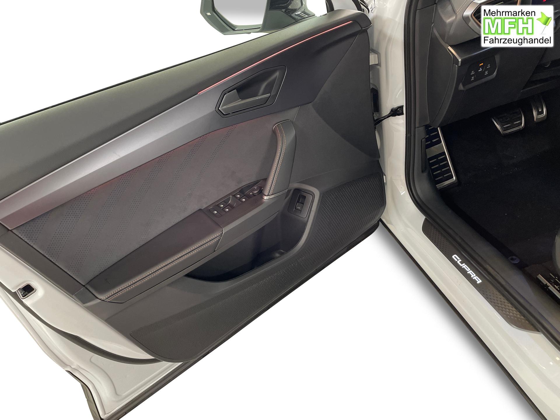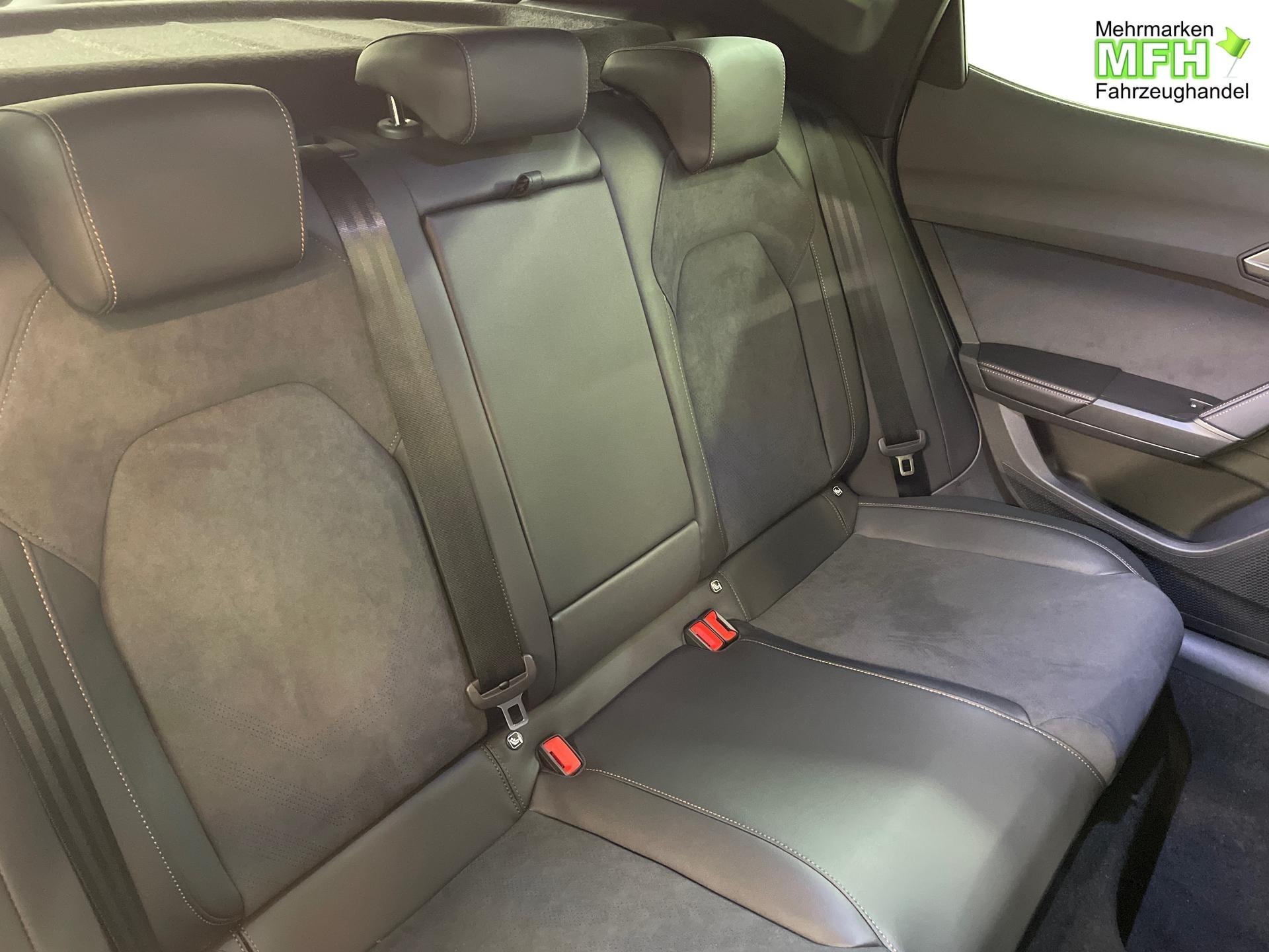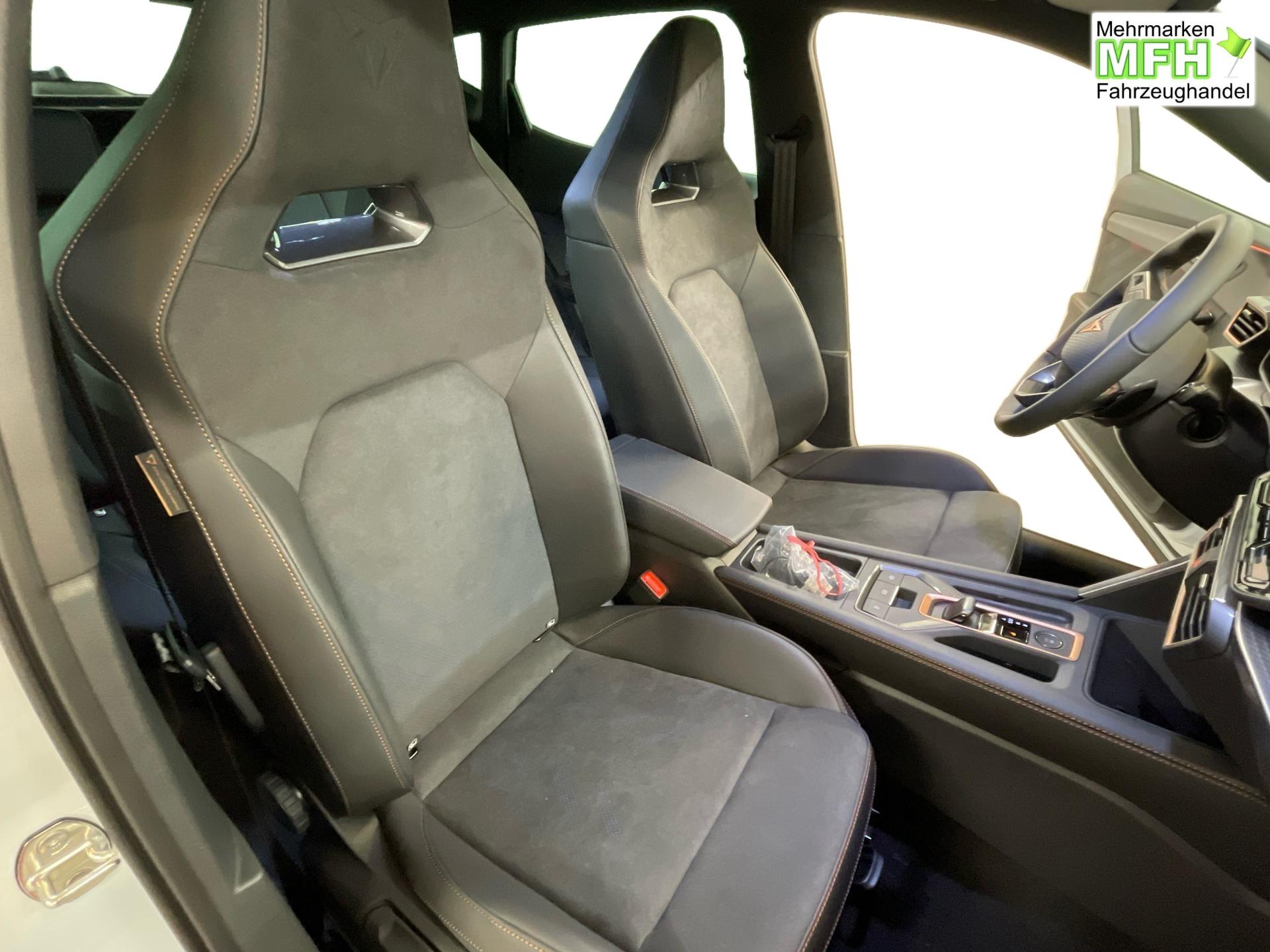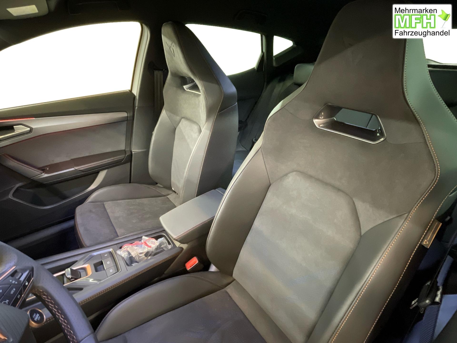 Innenausstattung CUPRA Sportschalensitze vorne mit Sitzmittelbahn in Dinamica, Schwarz mit Blau Akzenten