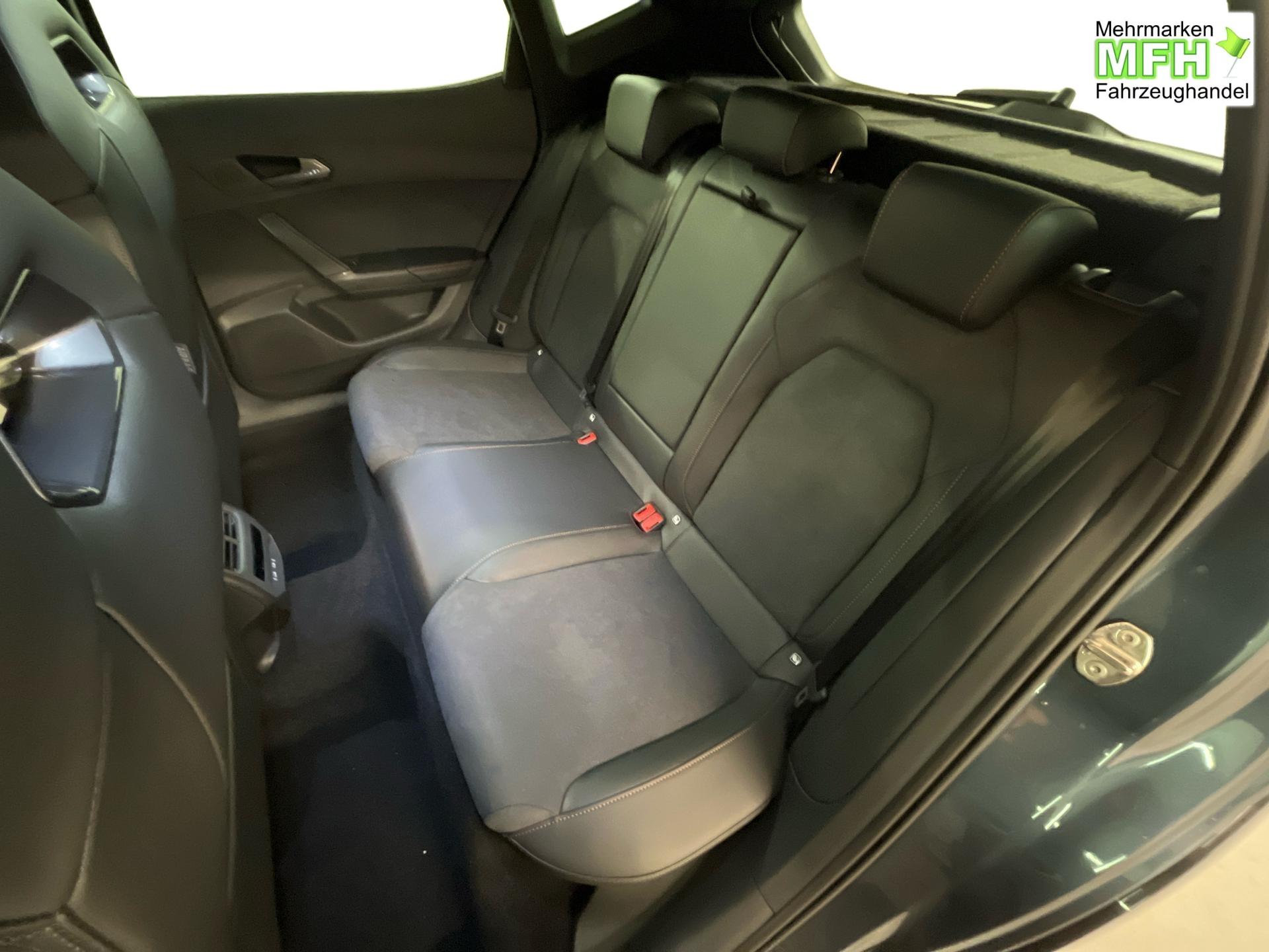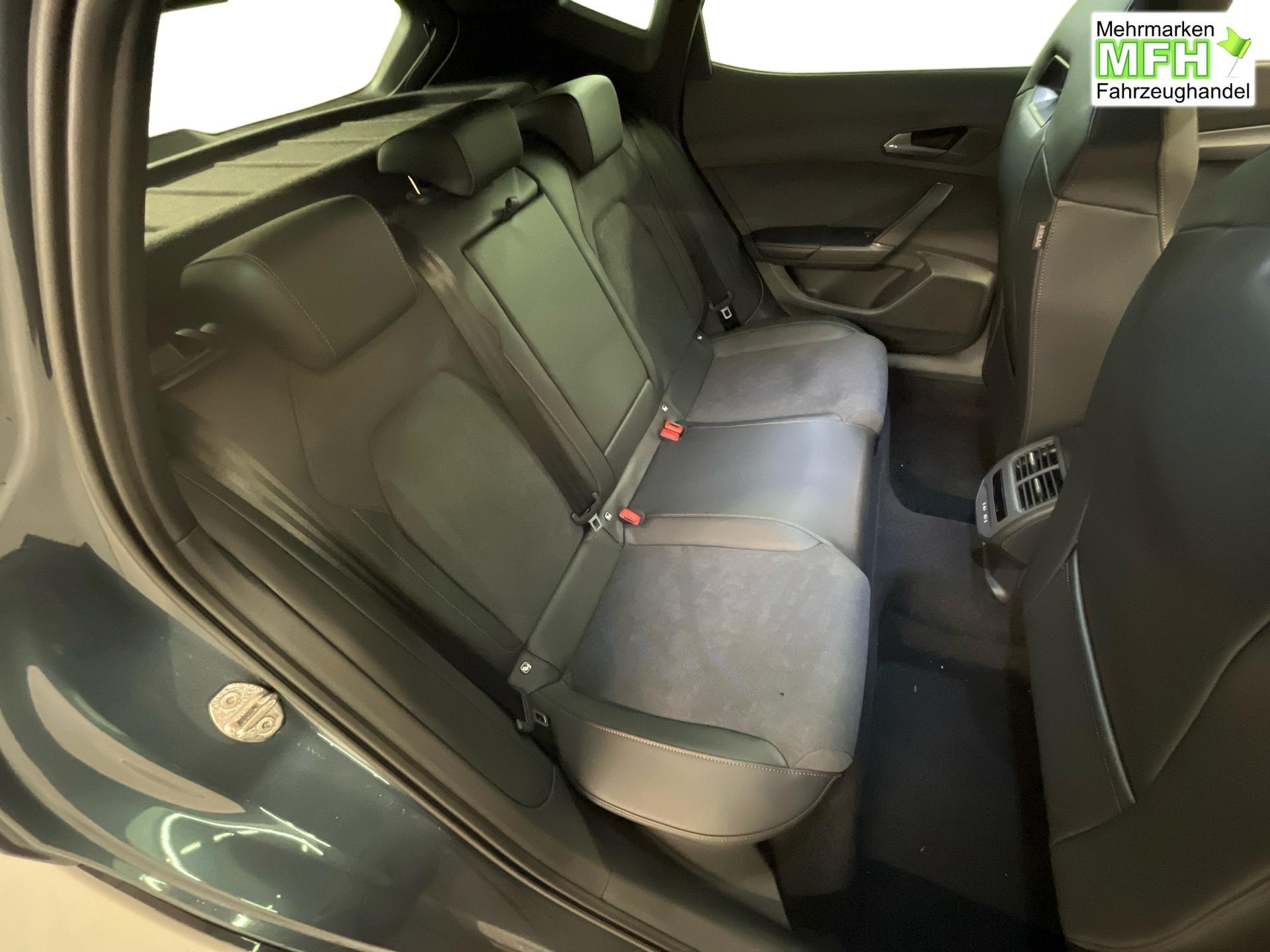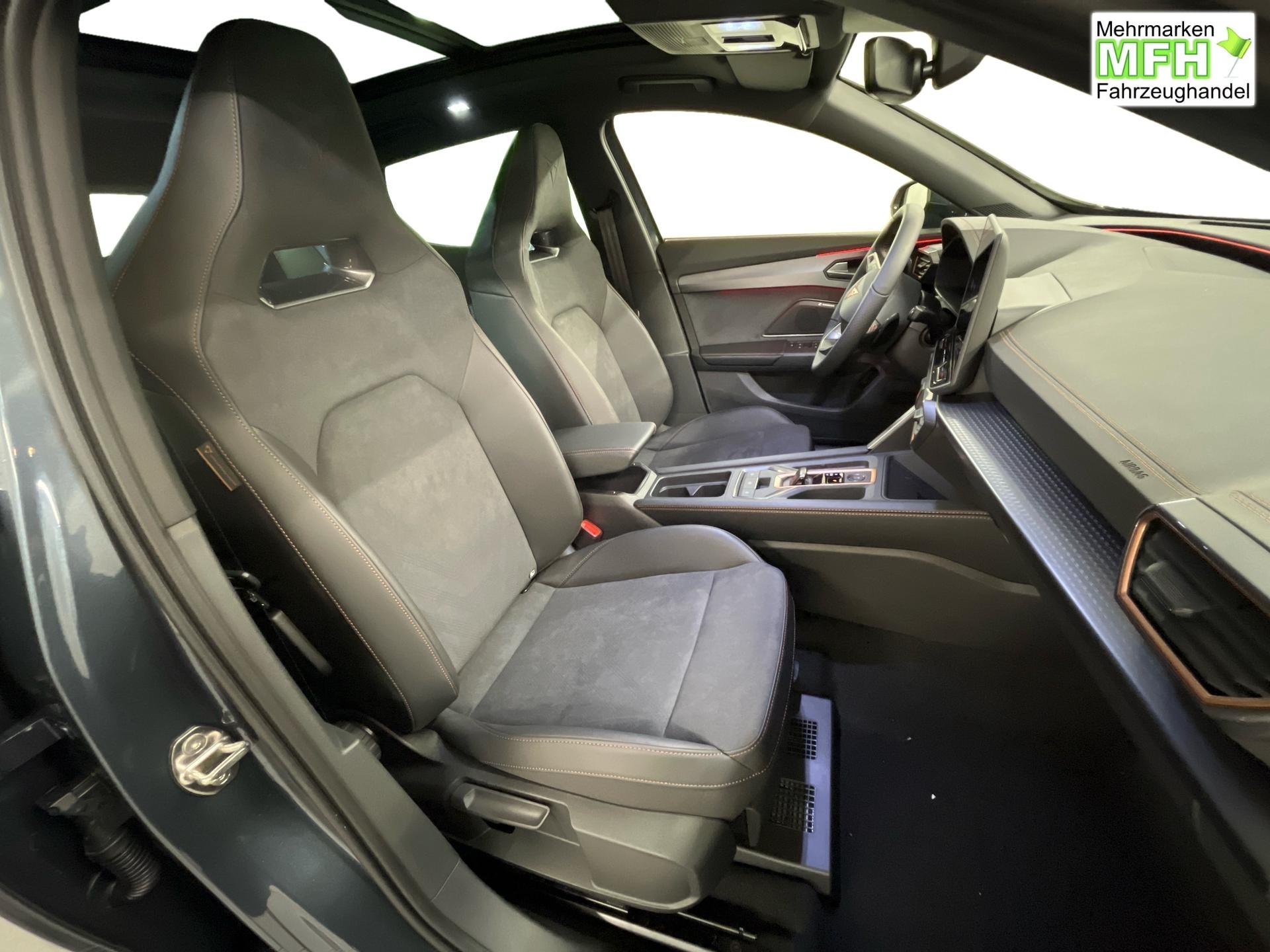 Innenausstattung CUPRA Sportschalensitze vorne mit Sitzmittelbahn in Dinamica, Schwarz mit Blau Akzenten