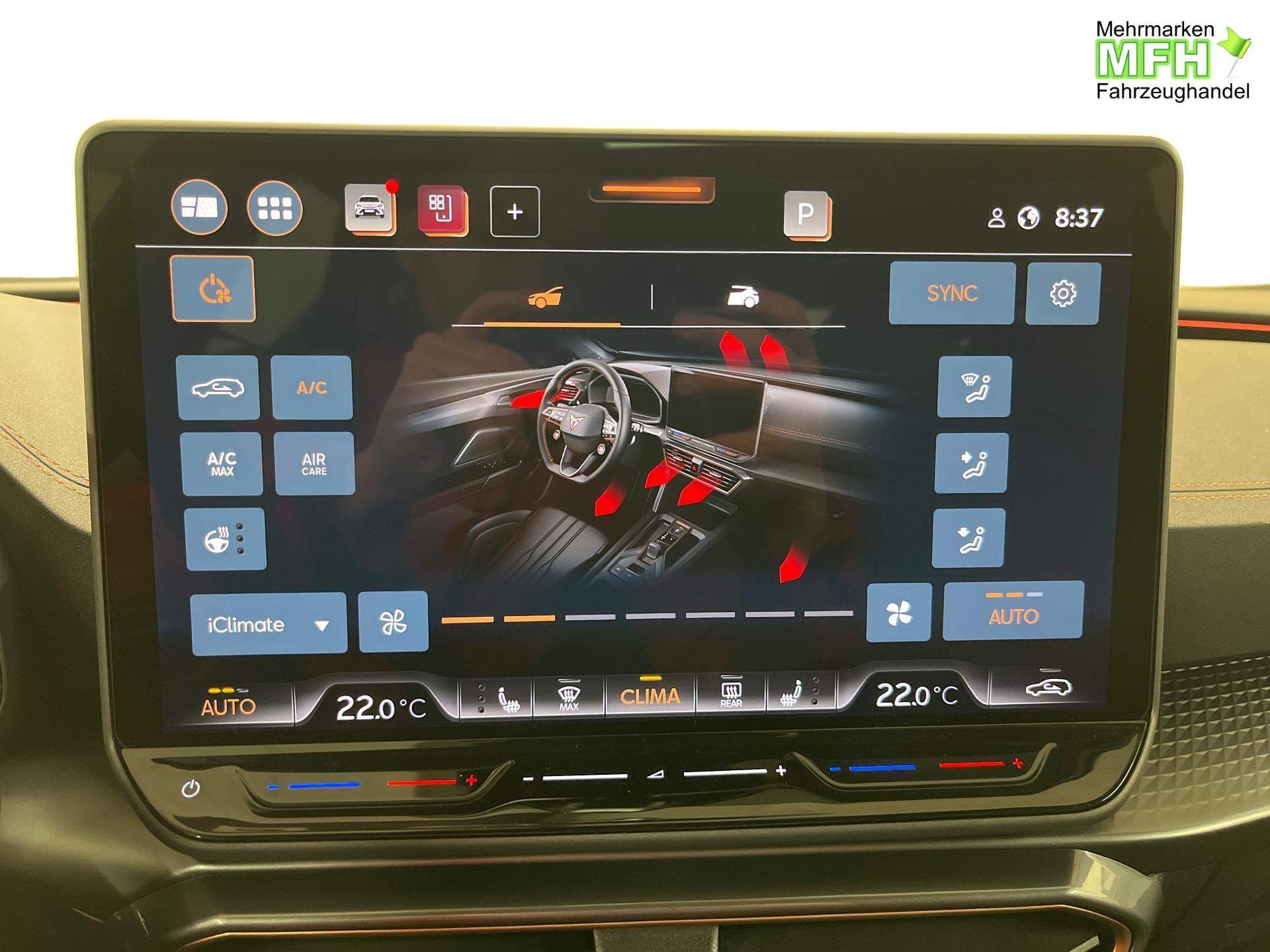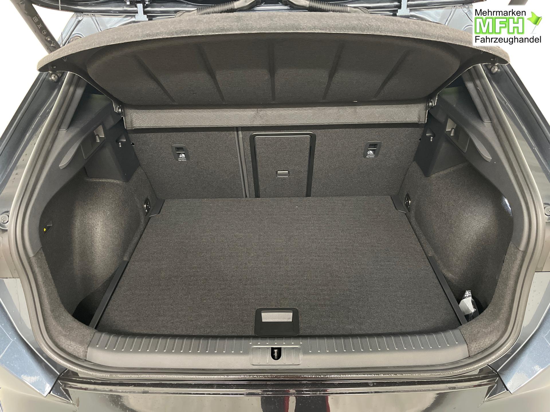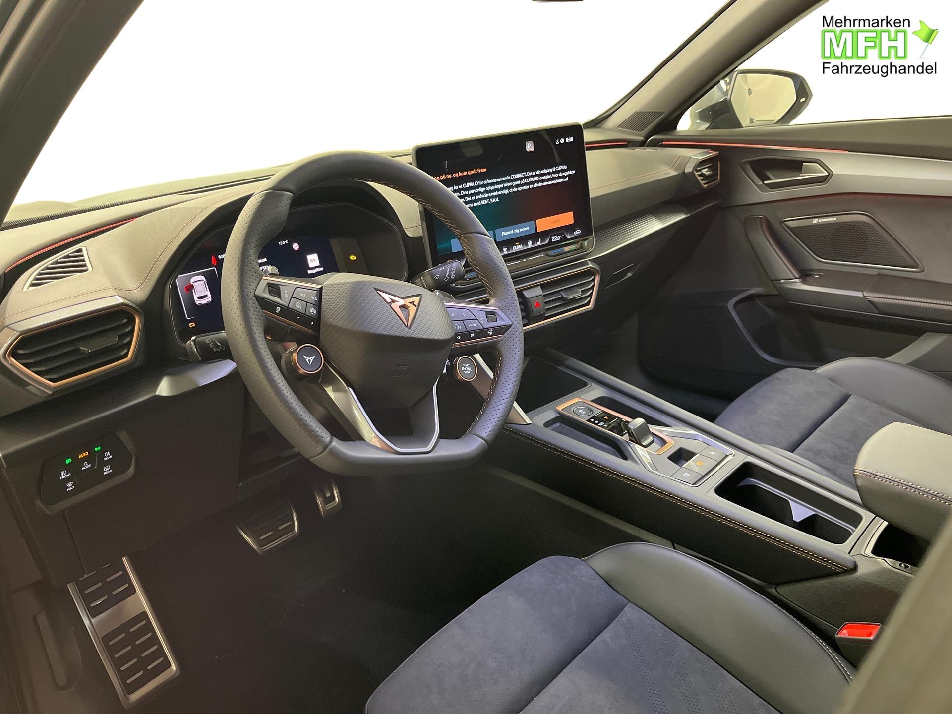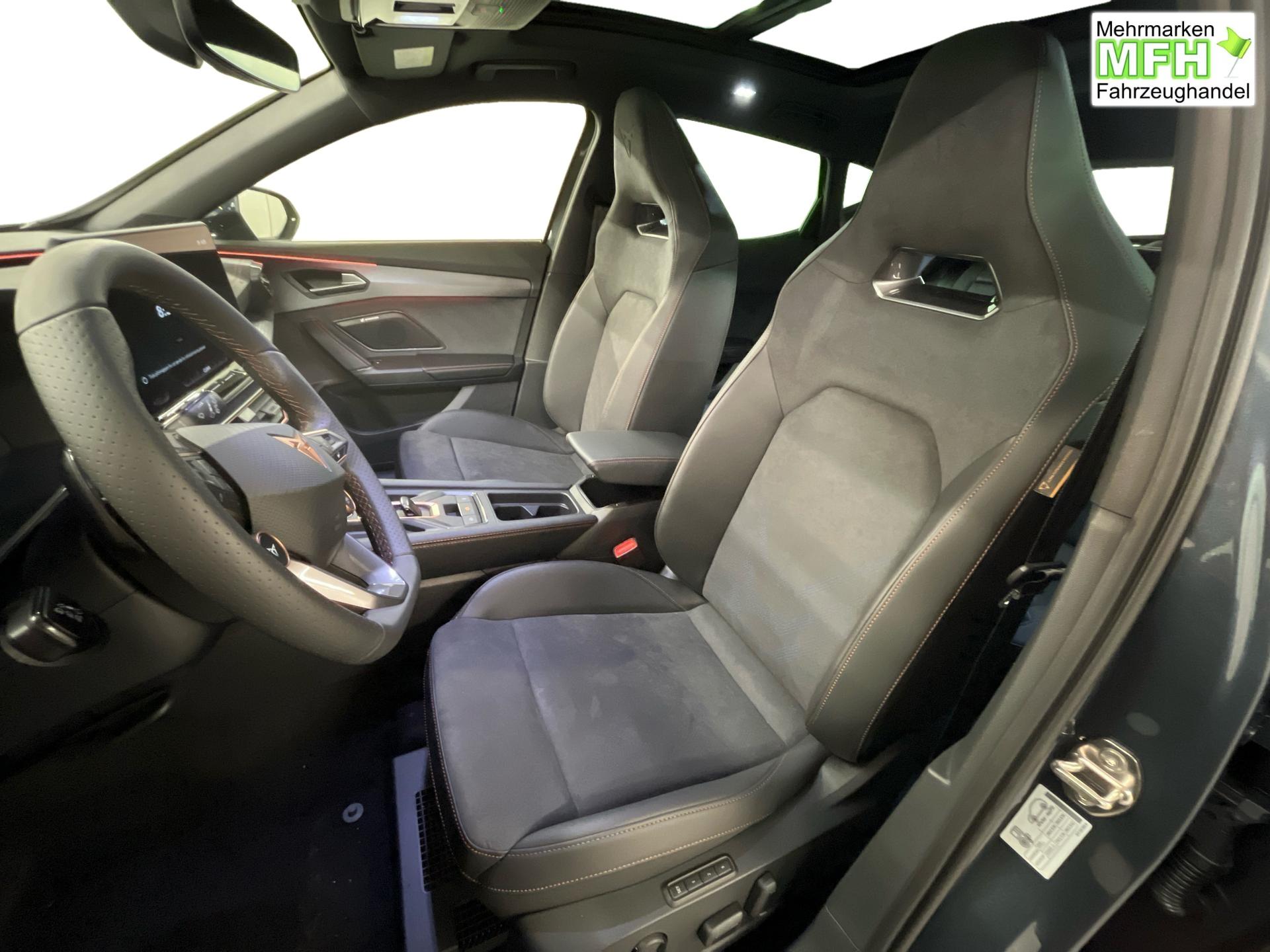 Innenausstattung CUPRA Sportschalensitze vorne mit Sitzmittelbahn in Dinamica, Schwarz mit Blau Akzenten