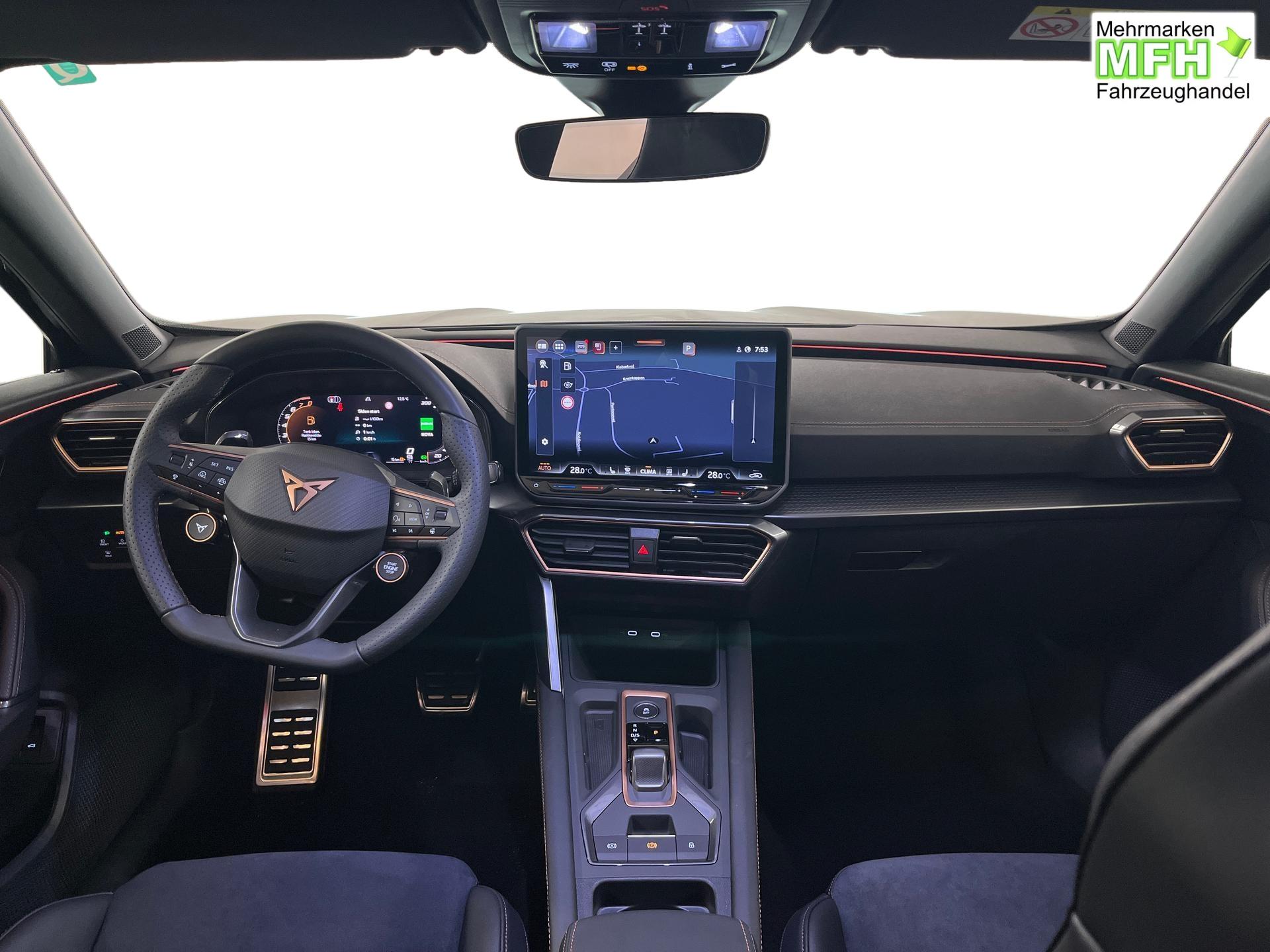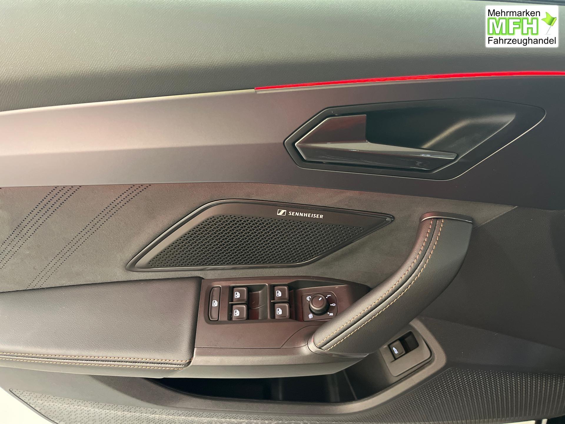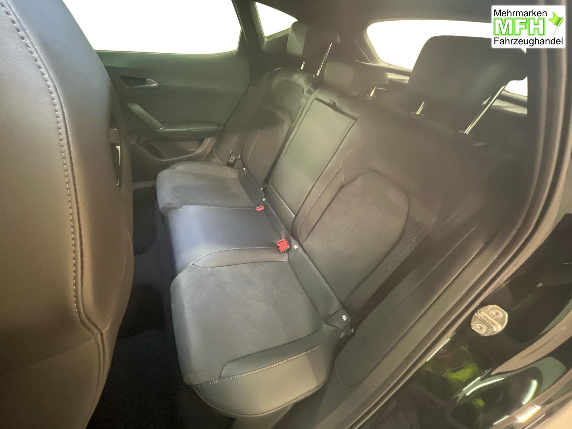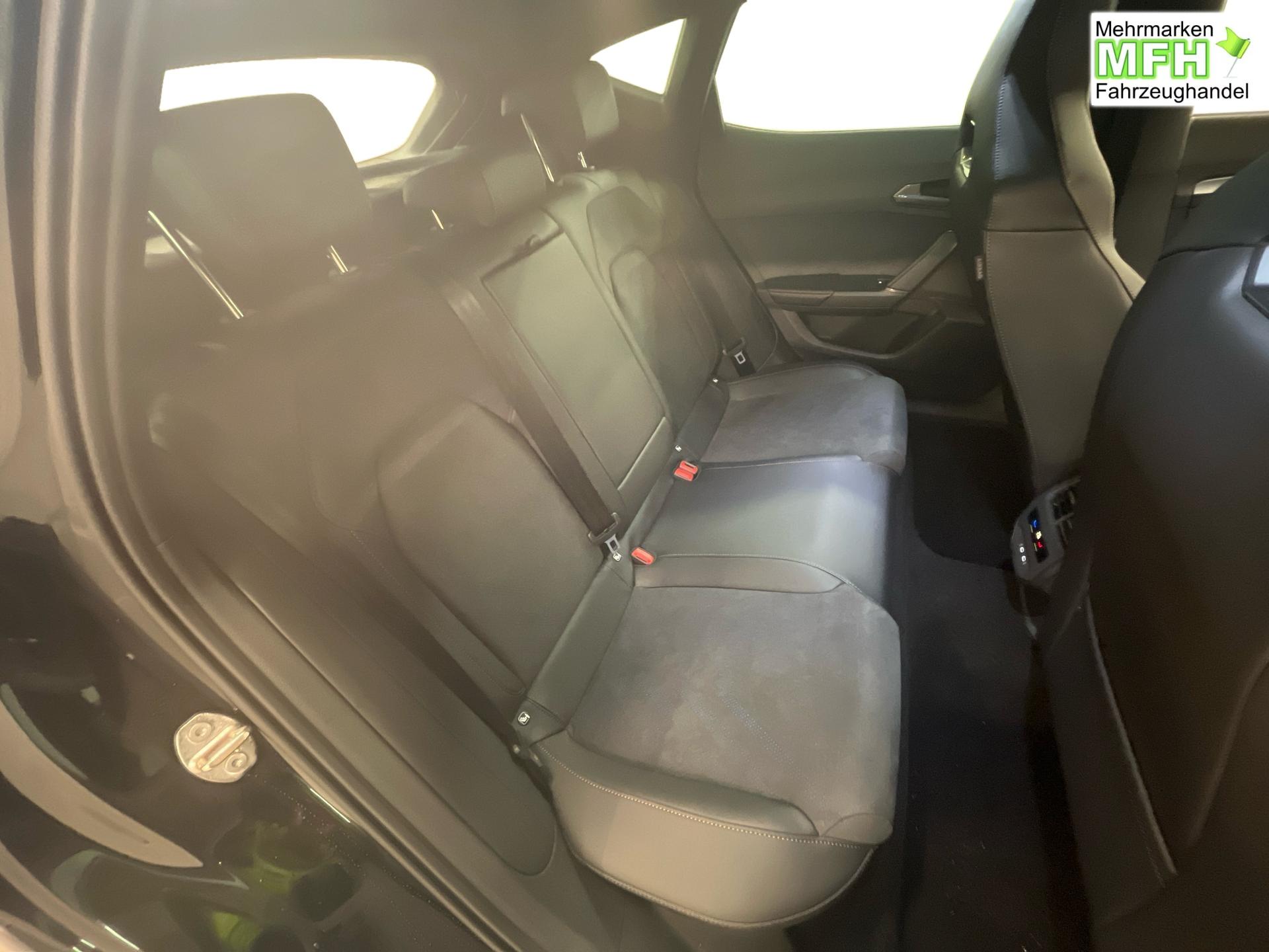 Innenausstattung CUPRA Sportschalensitze vorne mit Sitzmittelbahn in Dinamica, Schwarz mit Blau Akzenten