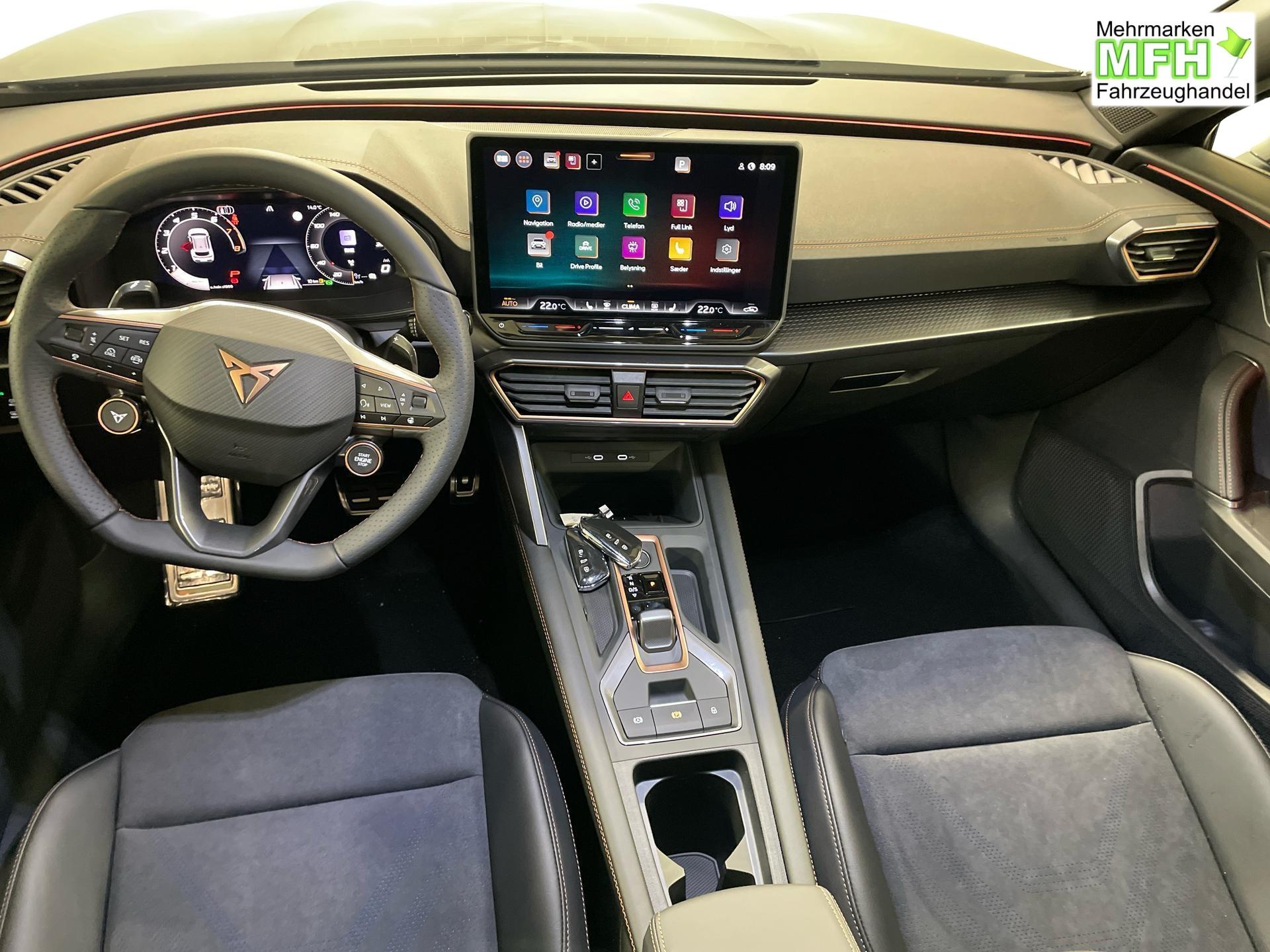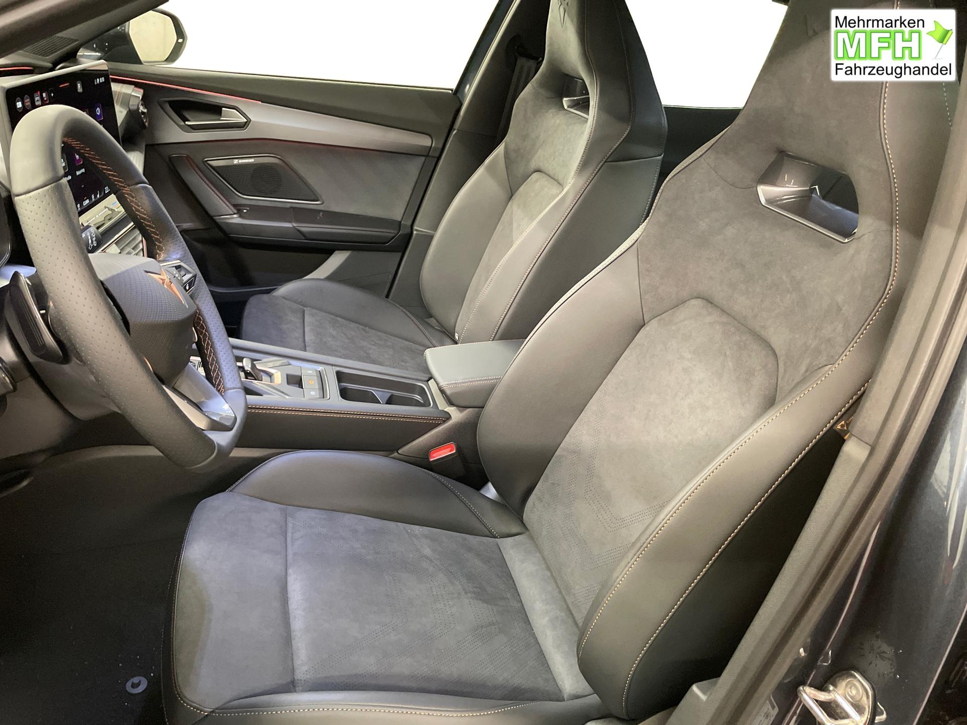 Innenausstattung CUPRA Sportschalensitze vorne mit Sitzmittelbahn in Dinamica, Schwarz mit Blau Akzenten