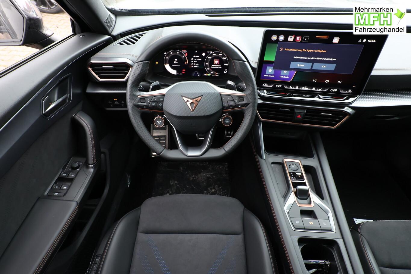 Performance-Paket (Fahrassistenz-System: Adaptive Fahrwerksregelung (DCC) / HD Matrix-LED-Scheinwerfer), Design-Paket Dynamic (Lendenwirbelstütze Sitz vorn links, elektr. verstellbar / Sitzbezug / Polsterung: Stoff Dinamica / Kunstleder schwarz mit blauen Akzenten / Sitz vorn links elektr. verstellbar (mit Memory) / Sitzheizung vorn / Sport-Schalensitze vorn mit integrierten Kopfstützen / Außenspiegel elektr. verstell-, heiz- und anklappbar, Spiegelabsenkung, Welcome Light, Memory / Winter-Paket), Edge-Paket (Ambiente-Beleuchtung LED / Ambiente-Beleuchtung Smart Ambient Light / Schließ-/Startsystem Kessy Advanced / Heckklappe/-Deckel elektr. betätigt (öffnen + schliessen, sensorgesteuert) / Rückfahrkamera / Diebstahl-Warnanlage mit Innenraumüberwachung und Abschleppschutz), Audiosystem inkl. 12,9"-Touchscreen, Bluetooth-Schnittstelle, Fahrassistenz-System: Abbiege- und Ausweichassistent, Fahrassistenz-System: Autom. Distanzregelung (ACC), Fahrassistenz-System: Kreuzungsassistent, Freisprecheinrichtung Bluetooth, Gepäcktaschen an Rückseite der Vordersitzlehnen, Geschwindigkeits-Begrenzeranlage, Induktionsladeschale für Smartphone, Isofix-Aufnahmen für Kindersitz an Beifahrersitz und Rücksitz, LM-Felgen 8x19, Mittelarmlehne hinten, Navigation in Verbindung mit dem Smartphone (über Apple Carplay / Android Auto /...), Reifen 245/40 R19, Rücksitzlehne geteilt/klappbar, Schadstoffarm nach Abgasnorm Euro 6e (EU6 EA), Schublade unter dem rechten Vordersitz, Serviceintervall 30.000 km oder 2 Jahre, Sprachsteuerungs-System, Vorbereitung für Navigationssystem, Licht- und Sicht-Paket (Innenspiegel mit Abblendautomatik / Einschaltautomatik für Fahrlicht / Licht- und Regensensor / Lichtassistent (Coming Home, Leaving Home)), Einstiegsleisten vorn beleuchtet, Fensterzierleisten schwarz, Gepäckraumabdeckung / Rollo, Karosserie: 5-türig, Kombiinstrument digital (virtual cockpit), Kopfstützen hinten (3-fach), Ladekabel mit Schukostecker, Leseleuchten hinten LED, Leseleuchten vorn LED, Mobile Online Dienste Cupra Connect plus, Motor 2,0 Ltr. - 110 kW TDI, Parkbremse elektrisch mit Auto-Hold-Funktion, Radioempfang digital (DAB+), Radstand Standard, Sitz vorn rechts höhenverstellbar, Sonnenblende links mit Spiegel (beleuchtet), Sonnenblende rechts mit Spiegel (beleuchtet), Steckdose 230V im Gepäckraum, Warnanlage für Sicherheitsgurt-System, Full Link (MirrorLink, Apple CarPlay und Android Auto), USB-Schnittstelle vorn (2-fach, Typ C), Antriebsart: Frontantrieb, Elektron. Differentialsperre (XDS), Getriebe 7-Gang - Doppelkupplungsgetriebe DSG, Klimaanlage Climatronic 3-Zonen, Airbag Beifahrerseite abschaltbar, Airbag Fahrer-/Beifahrerseite, Fensterheber elektrisch vorn + hinten mit Komfortschaltung, Kopf-Airbag-System, Mittelarmlehne vorn, Seitenairbag, Seitenairbag vorn mitte (Central Airbag), Seitenscheiben hinten und Heckscheibe abgedunkelt, Dachreling schwarz, hochglänzend, Fahrassistenz-System: Automatische Distanzregelung (ACC), Fahrassistenz-System: Verkehrszeichenerkennung, Notrufsystem, Lenkrad heizbar (CUPRA Supersport, Leder) mit Multifunktion und Schaltfunktion, Progressivlenkung, Einparkhilfe vorn und hinten, Fahrassistenz-System: Müdigkeitserkennung, Fahrassistenz-System: Spurhalteassistent, Fahrassistenz-System: Umfeldbeobachtungssystem (Front assist) mit City-Notbremsfunktion, Reifenkontroll-Anzeige, Rußpartikelfilter, Start/Stop-Anlage