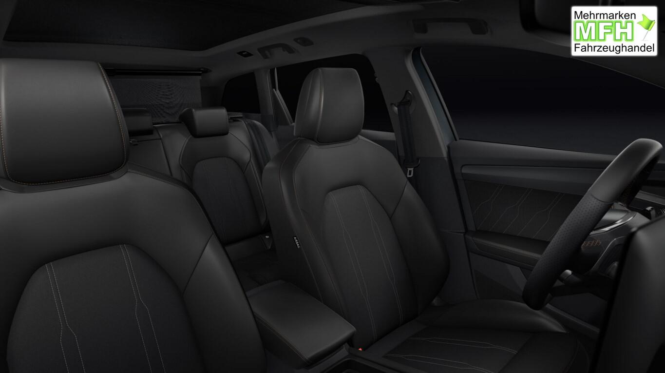 Skyline-Paket (Panorama Schiebe-/Hebedach elektrisch), Anhängerkupplung (Kugelkopf mit elektr. Entriegelung, schwenkbar), Edge-Paket (Ambiente-Beleuchtung LED / Ambiente-Beleuchtung Smart Ambient Light / Schließ-/Startsystem Kessy Advanced / Heckklappe/-Deckel elektr. betätigt (öffnen + schliessen, sensorgesteuert) / Rückfahrkamera / Diebstahl-Warnanlage mit Innenraumüberwachung und Abschleppschutz), Winter-Paket (Sitzheizung vorn), Anti-Blockier-System (ABS), Bluetooth-Freisprecheinrichtung inkl. Sprachsteuerung, Bordcomputer, Elektr. Stabilitätsprogramm (ESP), Heckleuchten Voll-LED mit dynamischem Lichtband (Infinite Light), LM-Felgen 18 Zoll (Garbi), Navigation in Verbindung mit dem Smartphone (über Apple Carplay / Android Auto /...), Otto-Partikelfilter, Pedale Aluminium-Design, Scheinwerfer Voll-LED, Sommerreifen 225/40 R18, Zentralverriegelung, Licht- und Sicht-Paket (Innenspiegel mit Abblendautomatik / Einschaltautomatik für Fahrlicht / Licht- und Regensensor / Lichtassistent (Coming Home, Leaving Home)), Media-System Plus (Audiosystem mit 12,9" Touchscreen-Farbdisplay), Abdeckkappen Außenspiegel Dark Aluminium, Connectivity-Box, Dachhimmel schwarz, Einstiegsleisten vorn beleuchtet, Fensterzierleisten schwarz hochglänzend, Gepäck-/Laderaumboden doppelt, Gepäckraum-Abtrennung (Netz), Gepäckraumbeleuchtung (LED), Karosserie: 5-türig, Kombiinstrument digital (virtual cockpit), Lendenwirbelstütze Sitz vorn links, verstellbar, Lendenwirbelstütze Sitz vorn rechts, verstellbar, Leseleuchten hinten LED, Leseleuchten vorn LED, Motor 2,0 Ltr. - 150 kW 16V TSI, Radioempfang digital (DAB+), Sitz vorn links höhenverstellbar, Sitz vorn rechts höhenverstellbar, Sitzbezug / Polsterung: Stoff/Kunstleder schwarz (Sharp Textil), Sonnenblende links mit Spiegel (beleuchtet), Sonnenblende rechts mit Spiegel (beleuchtet), Warnanlage für Sicherheitsgurt-System, Full Link (MirrorLink, Apple CarPlay und Android Auto), USB-Ladeanschlüsse (2-fach, Typ C) für 2.Sitzreihe, USB-Schnittstelle vorn (2-fach, Typ C), Getriebe 7-Gang - Doppelkupplungsgetriebe DSG, Klimaanlage Climatronic 3-Zonen, Airbag Beifahrerseite abschaltbar, Airbag Fahrer-/Beifahrerseite, Fensterheber elektrisch vorn + hinten mit Komfortschaltung, Isofix-Aufnahmen für Kindersitz an Beifahrersitz und Rücksitz (inkl. i-Size-Kindersitze), Mittelarmlehne vorn, Seitenscheiben ab 2.Sitzreihe und Heckscheibe dunkel getönt (Privacy Glass), Sportsitze vorn, Fahrassistenz-System: Fahrprofilauswahl (CUPRA Drive Profile), Dachreling schwarz, hochglänzend, Wärmeschutzverglasung, Fahrassistenz-System: Automatische Distanzregelung (ACC), Notrufsystem, Lenkrad heizbar (CUPRA Supersport, Leder) mit Multifunktion und Schaltfunktion, Progressivlenkung, Außenspiegel elektr. verstell-, heiz- und anklappbar mit Spiegelabsenkung und Welcome Light, Einparkhilfe vorn und hinten, Fahrassistenz-System: Müdigkeitserkennung, Fahrassistenz-System: Spurhalteassistent, Fahrassistenz-System: Umfeldbeobachtungssystem (Front assist) mit City-Notbremsfunktion, Reifenkontroll-Anzeige