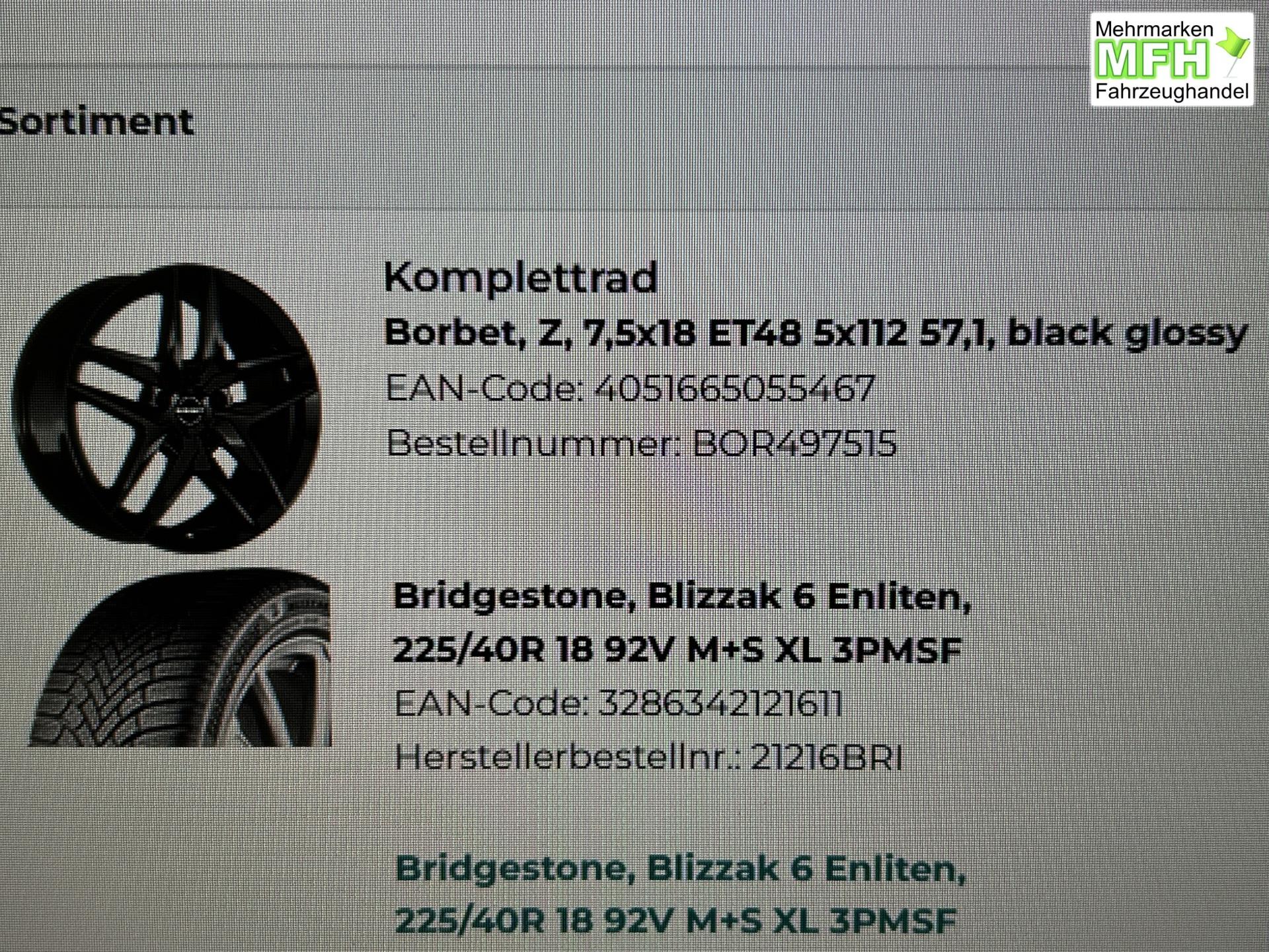 mit Reifen Bridgestone, Blizzak 6 Enliten, 225/40R 18 92V M+S