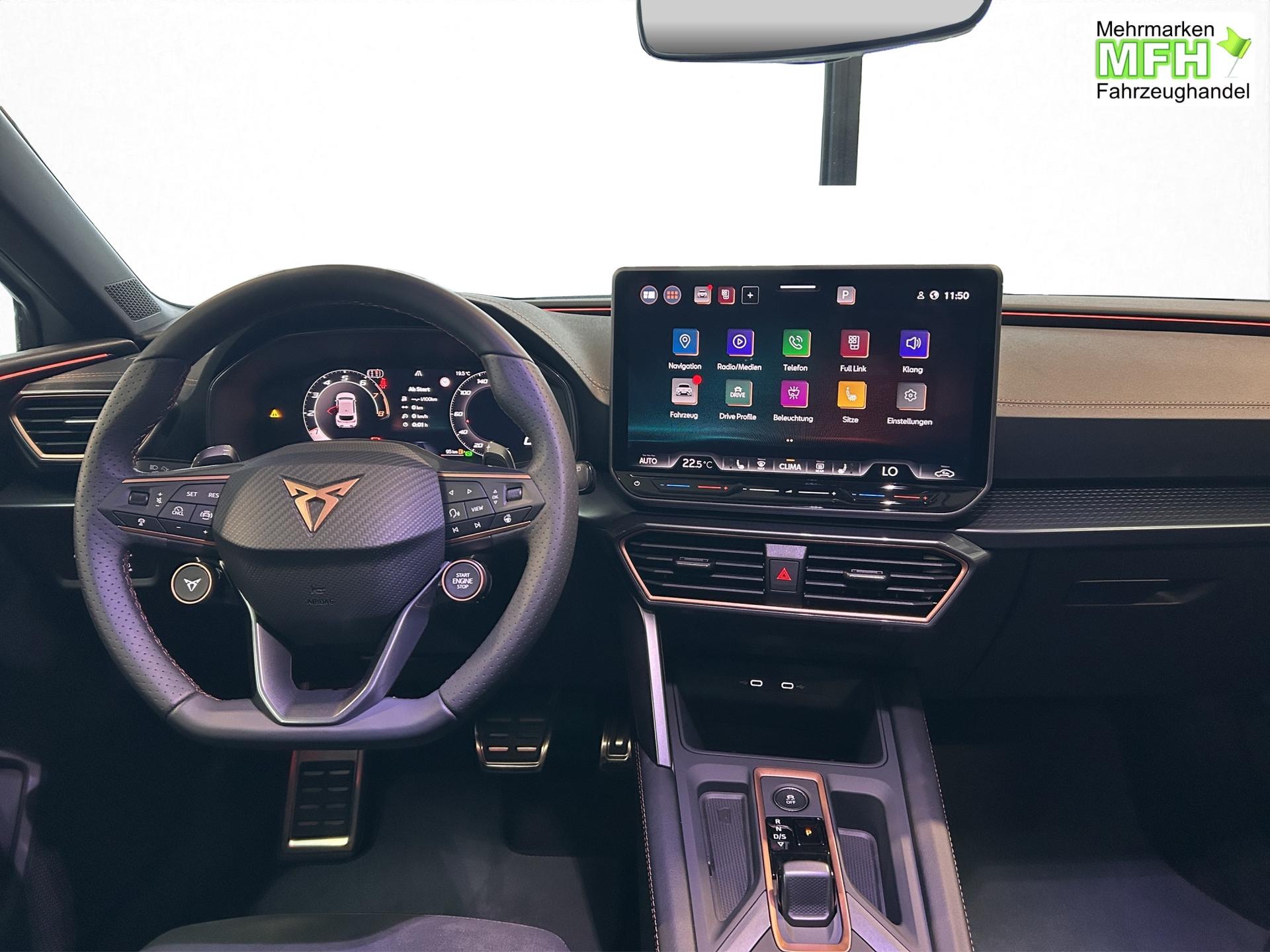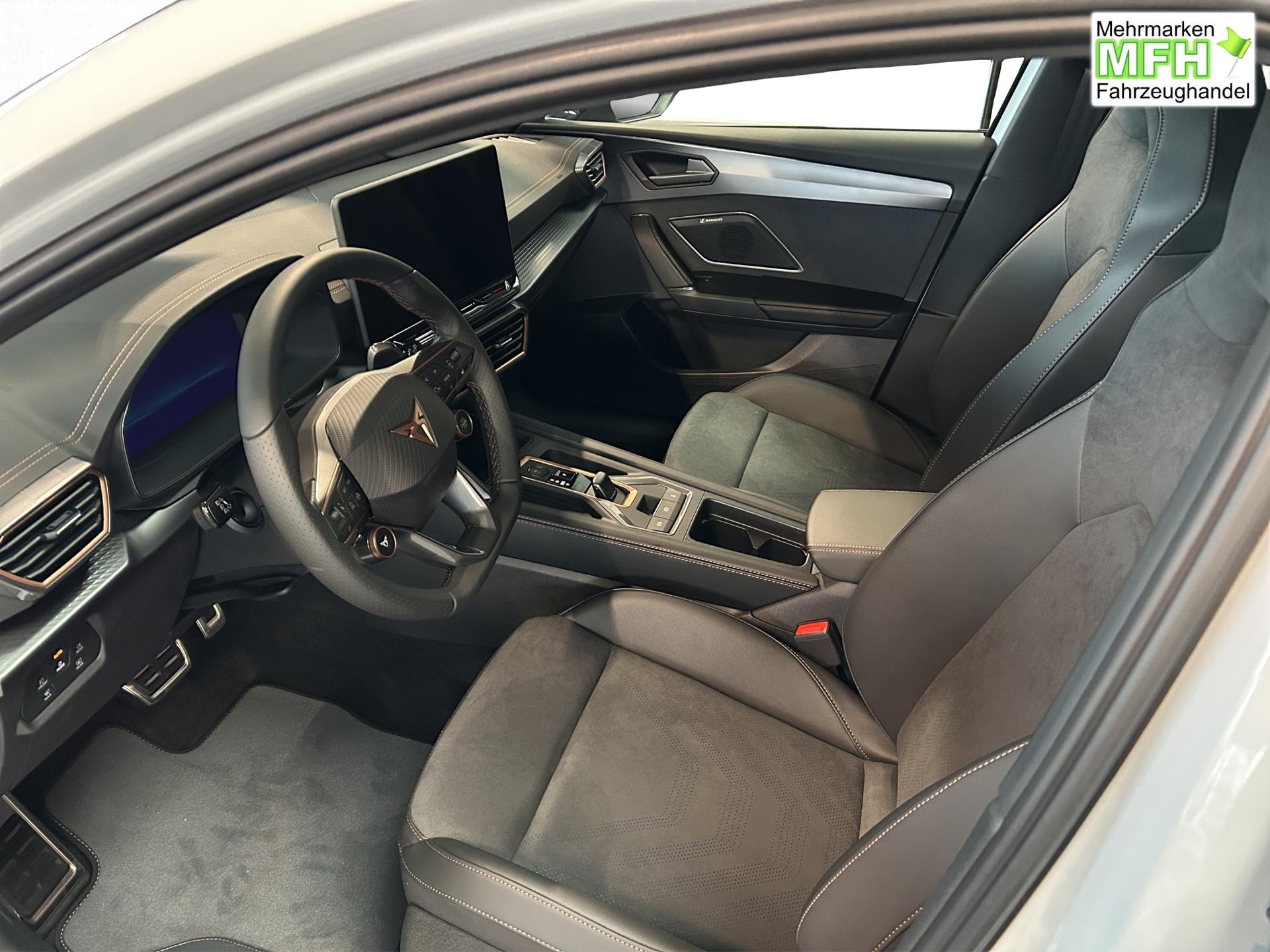 SERIENAUSSTATTUNG: ACC bis 210km/h, Fernlichtassistent, 3-Zonen-Climatronic, Digital Cockpit Plus, Induktive Ladefunktion, Wireless Full Link, Supersport-Multifunktionslederlenkrad beheizbar, LED-Tagfahrlicht, 230V Steckdose im Kofferraum, 2* USB-C vorne 2* USB-C hinten, Fahrer- und Beifahrerairbag, Außenspiegel elektrisch verstell- , beheiz- und anklappbar, Coming Home-/ Leaving Home Funktion, Dachhimmel schwarz, XDS, Front Assist, Innenspiegel autom. abblendbar, ISOFIX, Mittelarmlehne vorne, abgedunkelte Seitenscheiben ab der B-Säule, Sprachsteuerung, Cupra Drive Profil, Parksensoren vorne und hinten, Licht und Regensensor, DAB, el. Handbremse inkl. auto Hold, el. Fensterheber vorne und hinten, Gepäckraumabdeckung, LED- Nebelscheinwerfer, LED-Rückleuchten mit dynamischen Blinker, Mittelarmlehne hinten, Rücksitzlehne geteilt umklappbar, Reifendruckkontrolle, Start-Stopp- Funktion, Tank 45l, Verkehrszeichenerkennung, el. Wegfahrsperre, eCall, uvm.