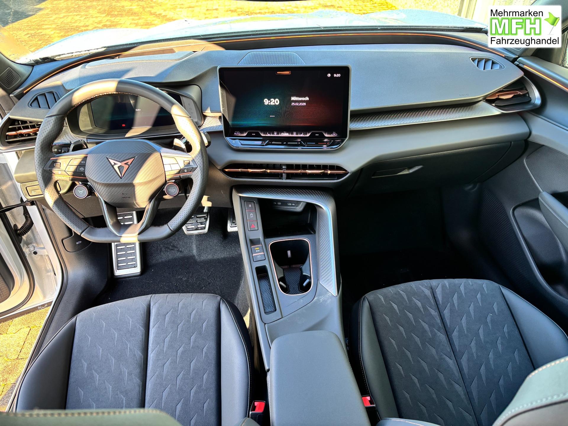 Innenausstattung Interieur "Moon Light" Dinamica: Sitzfläche in Dinamica Schwarz, Nähte in Kupfer; Vordersitze elektrisch einstellbar; Fahrersitz mit Memoryfunktion; Außenspiegel mit Memoryfunktion; Sitzheizung vorne; Elektrische Lordosenstütze Vordersitze; Indirekte Beleuchtung Türen vorne und hinten; Armaturenbrett in Schwarz; Mittelkonsole in Schwarz; Türgriffe in Kunstleder Schwarz; Mittelarmlehne in Schwarz