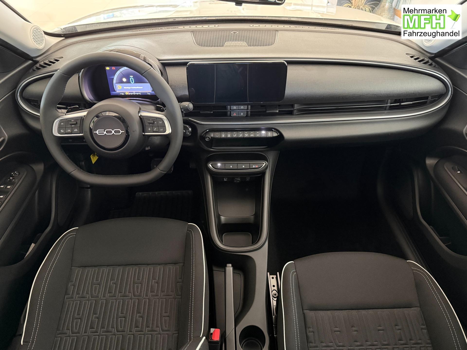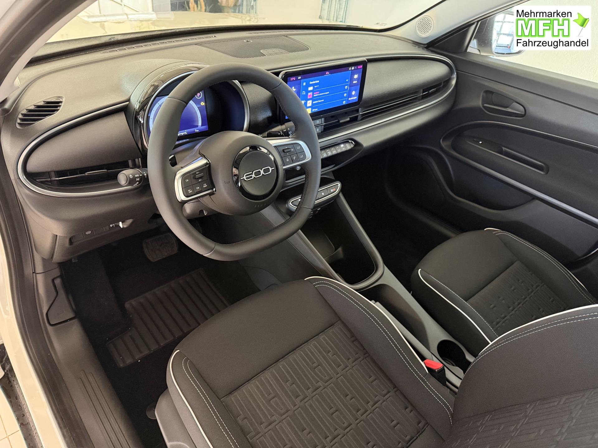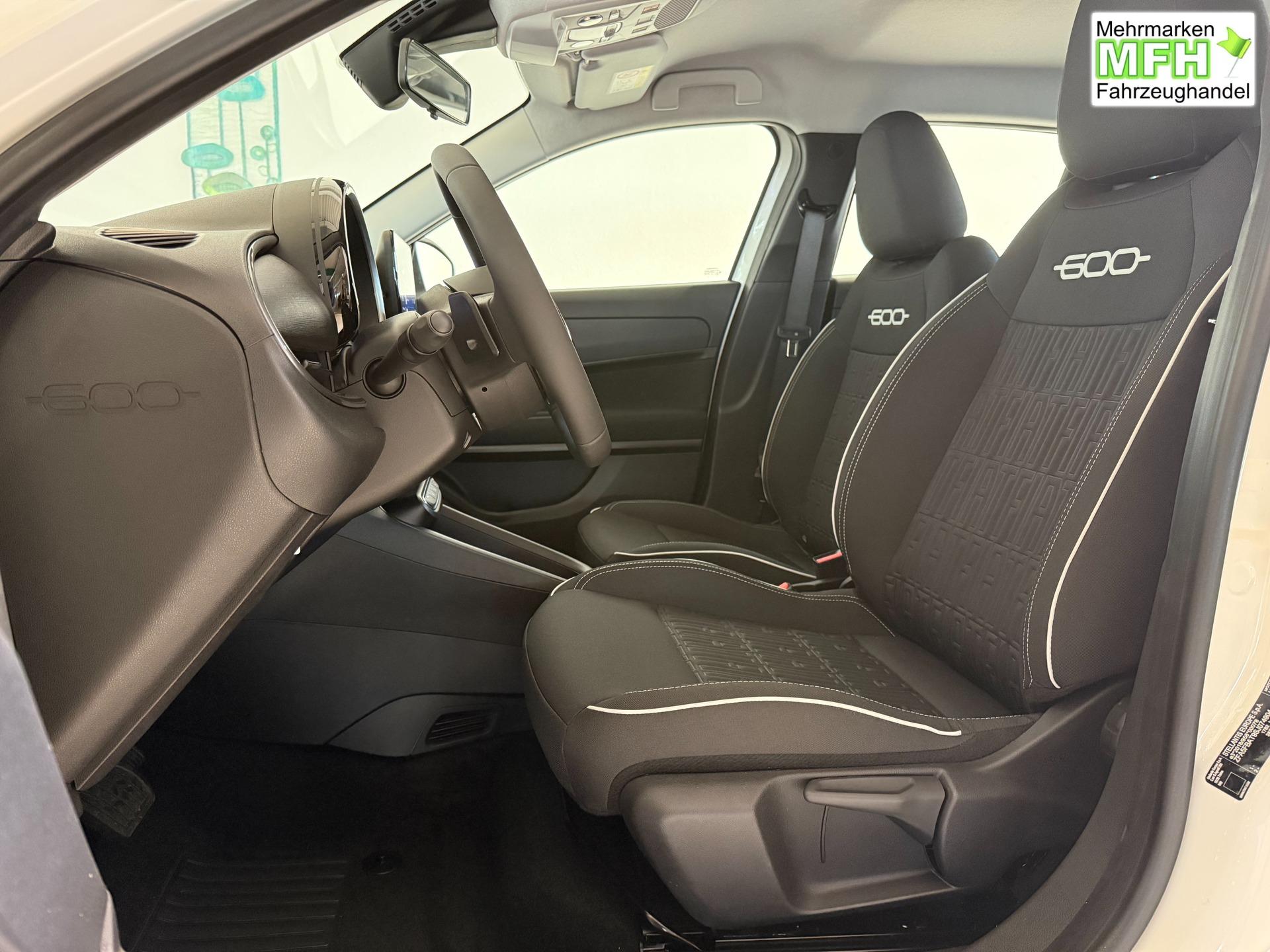 Innenausstattung Stoffsitze in Schwarz mit Fiat Monogramm