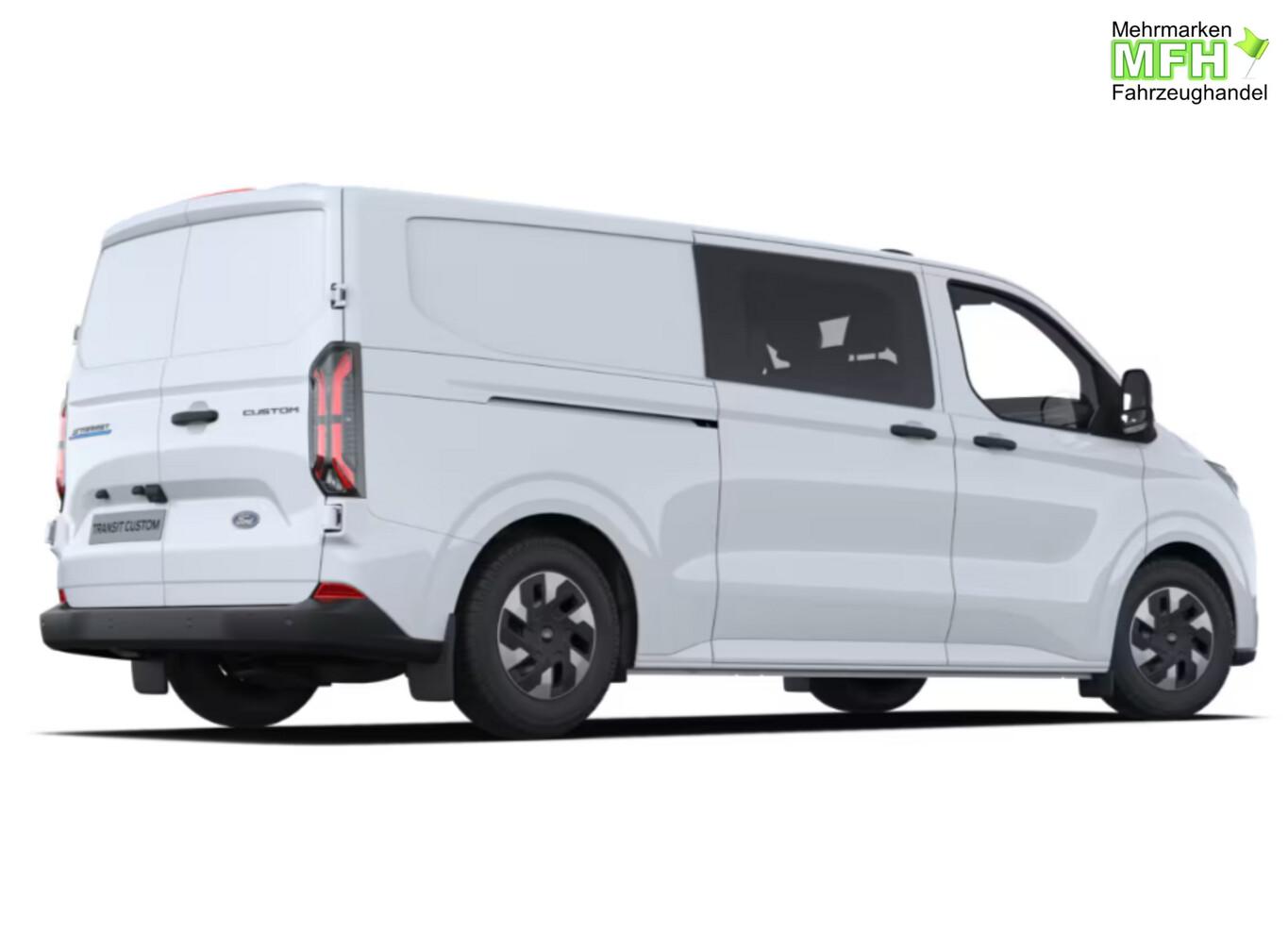 Scheinwerfer LED (Blinkleuchten LED / Fahrassistenz-System: Fernlichtassistent (Scheinwerfer mit Abblendautomatik) / Tagfahrlicht LED), Anhängerkupplung: Kugelkopf fest, Zusatzheizung elektrisch, 13" Multifunktionsdisplay, 2. Sitzreihe mit 3er Sitzbank, 4 Lautsprecher, 6 Verzurrösen, Beifahrerairbag deaktivierbar, Bluetooth-Schnittstelle mit Sprachsteuerung, Einparkhilfe vorn und hinten, Fahrassistenz-System: Falschfahrer-Warnfunktion, Fahrassistenz-System: Pre-Collision-System, Fahrassistenz-System: Spurhalteassistent, Fahrassistenz-System: Verkehrsschildassistent, Geschwindigkeits-Regelanlage (Tempomat), Handschuhfach, Heckflügeltüren (Öffnungswinkel 90/180°), Heckleuchten LED, Intelligenter Geschwindigkeits-Begrenzer, Lenkrad mit Multifunktion, Navigation in Verbindung mit dem Smartphone (über Apple Carplay / Android Auto /...), Reifen 215/65 R16, Rückfahrkamera, Smartphone-Schnittstelle (Apple CarPlay / Android Auto), Tagfahrlicht LED, Wärmepumpe, Sitz-Paket 11A: Fahrersitz (4-fach verstellbar) - Beifahrerdoppelsitz, Stoff (Sitze im Fahrerhaus: Fahrersitz mit Lendenwirbelstütze), Elektromotor 100 kW, Fenster im Lade-/FG-Raum: - feststehend, 2.Reihe links, Feststellbremse elektrisch, Ford SYNC 4 mit AppLink und Touchscreen, Heizung mit Umluftschaltung, Karosserie/Aufbau: Doppelkabine, Laderaumleuchte LED, Power KeyFree-Startfunktion, Radstand 3500 mm, Schiebetür Lade-/Fahrgastraum rechts, Stahlfelgen 6,5x16, Zul. Gesamtgewicht 3,20 t, USB-Schnittstelle, Anti-Blockier-System (ABS), Fahrassistenz-System: Notbrems-Assistent, Antriebsart: Heckantrieb, Elektron. Stabilitäts-Programm (ESP), Getriebe für Elektrofahrzeug, Klimaautomatik, Airbag Beifahrerseite, Armlehne Fahrersitz, Laderaumtrennwand ohne Fenster, Sitze im Fahrerhaus: Fahrer- und Beifahrersitz heizbar, Zentralverriegelung mit Fernbedienung, Bordcomputer, Fahrassistenz-System: Berganfahr-Assistent, Fahrassistenz-System: Notrufsystem, Reifendruck-Kontrollsystem