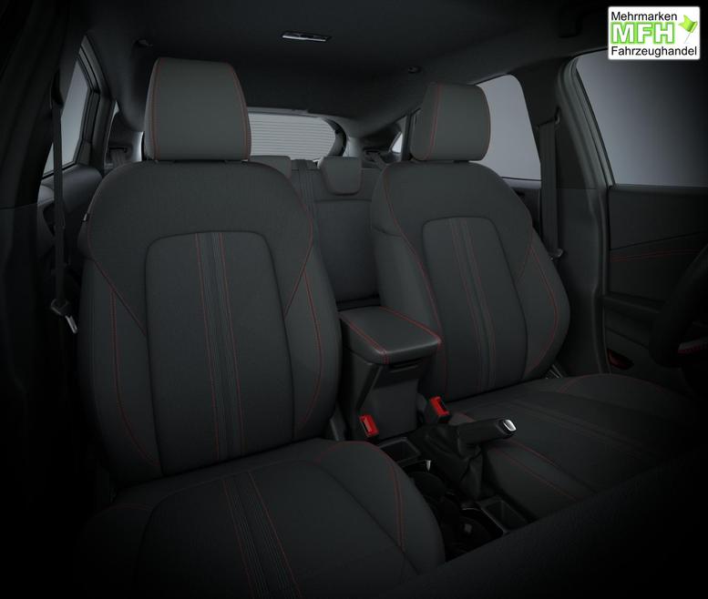 • Schwarzer Stoffbezug mit roter Naht