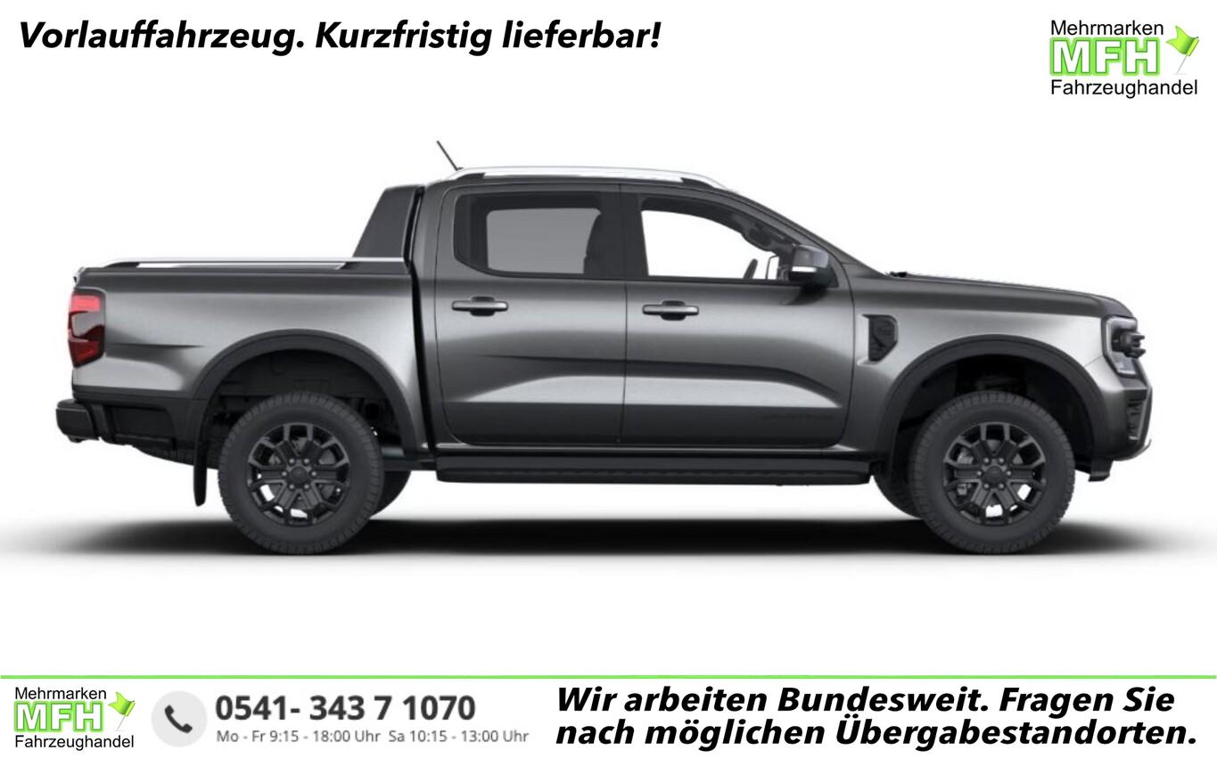 Technologie-Paket 68 (Fahrassistenz-System: Rückfahr-Assistent (Notbremsassistent) / Intelligenter Geschwindigkeits-Begrenzer / Anhängerkupplung / Fahrassistenz-System: Notbrems-Assistent / Fahrassistenz-System: Pre-Collision-System / Adaptive Geschwindigkeitsregelanlage (Adaptive Cruise Control / ACC) / Fahrassistenz-System: Abstandsregelung (Distance Alert, DA) / Fahrassistenz-System: Auffahrwarnsystem / Fahrassistenz-System: Verkehrsschildassistent / Rückfahrkamera mit Split View / Außenspiegel mit Totwinkel-Assistent / Fahrassistenz-System: Totwinkel-Assistent inkl. Cross Traffic Alert / Parkpilotsystem vorn und hinten / Fahrassistenz-System: Spurfolgeassistent (Lane Following Assist, LFA) / Fahrassistenz-System: Spurhalteassistent), Laderaumwanne (Steckdose (12V-Anschluß) im Koffer-/Laderaum), 3-Punkt-Sicherheitsgurt hinten, 360°-Kamera, 360°-Umfeldbeleuchtung, Ablagetaschen an Rückseite der Vordersitzlehnen, Audio-Navigationssystem Ford SYNC 4 inkl. 12"-Touchscreen, 6 Lautsprecher, USB-Anschluss, Bluetooth Freisprecheinrichtung, Bluetooth-Schnittstelle, Brillenablagefach in Dachablagegalerie, vorn, Diebstahlschutz für Leichtmetallräder, Fahrassistenz-System: Anhänger-Rangierhilfe, Fensterheber elektr. hinten, Isofix-Aufnahmen für Kindersitz, Kindersicherung, Lenkrad mit Multifunktion, Leseleuchten vorn, Leuchtweitenregulierung, LM-Felgen 18", Mittelarmlehne hinten, Mittelarmlehne vorn, Notrufsystem eCall, Radioempfang digital (DAB), Reifen 255/65 R18, Reserverad in Fahrbereifung, Rücksitzbank (3.Reihe) Dreiersitzbank, Schmutzfänger vorn und hinten, Smartphone Schnittstelle (Apple CarPlay / Android Auto), Sonnenblenden mit Spiegel, Sperrdifferential hinten, Verzurrösen, Bremskraftverstärker elektrisch (Parkbremse elektrisch), Lenkrad heizbar (Lenkrad (Leder)), Outdoor-Paket (Unterfahrschutz (Motor)), Sitz-Paket 7 (Sitz vorn rechts verstellbar (4-fach) / Warnanlage für Sicherheitsgurte hinten / Warnanlage für Sicherheitsgurte vorn / Sitz vorn links elektr. verstellbar (8-fach) / Sitzheizung vorn), Zentralverriegelung mit Fernbedienung (Doppelverriegelung Zentralverriegelung), Außenspiegel elektr. anklappbar (Bodenleuchte im Außenspiegel), Diebstahl-Warnanlage mit Innenraumüberwachung (Doppelverriegelung Zentralverriegelung), Sicherheits-Paket 3 (Gurtstraffer / Airbag Beifahrerseite abschaltbar / Airbag Fahrer-/Beifahrerseite / Isofix-Aufnahmen für Kindersitz / Knieairbag Beifahrerseite / Knieairbag Fahrerseite / Kopf-Schulter-Airbag vorn / Seitenairbag vorn), Getränkehalter vorn, Heckscheibe heizbar, Innenraumfilter: Staub- und Pollenfilter, Innenspiegel mit Abblendautomatik, Karosserie/Aufbau: Pritsche, Doppelkabine, Kombiinstrument Digitalanzeige 8 Zoll, Motor 2,0 Ltr. - 151 kW EcoBlue, Radstand 3270 mm, Seitenschweller mit Trittbrett, Anti-Blockier-System (ABS), Antriebsart: Allradantrieb, Elektron. Stabilitäts-Programm (ESP), Getriebe Automatik - Typ: 10R80 (10-Stufen), Klimaautomatik 2-Zonen, Fensterheber elektr. vorn mit Komfortschaltung, KeyFree-System, Sitzbezug / Polsterung: Leder, Verglasung hinten abgedunkelt (Privacy Glass), Dachreling, Frontscheibe heizbar, Heckklappe Easy Lift (Pick-Up), Heckklappenentriegelung elektrisch (ohne Schloss), Außenspiegel elektr. verstell- und heizbar, Blinkleuchte in Außenspiegel integriert, Fahrassistenz-System: Fernlichtassistent (Scheinwerfer mit Abblendautomatik), Nebelscheinwerfer LED, Scheibenwischer mit Regensensor, Scheinwerfer LED, Tagfahrlicht, Reifendruck-Kontrollsystem, Rußpartikelfilter, Start/Stop-Anlage