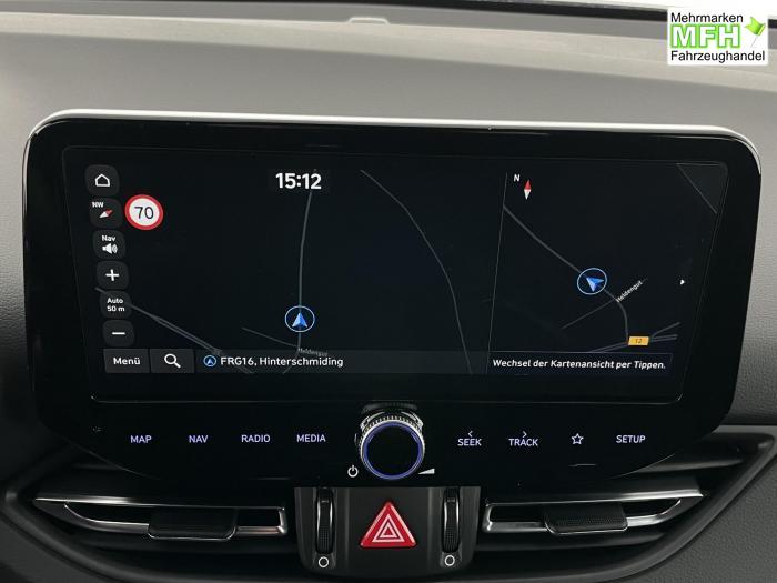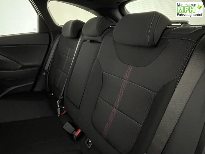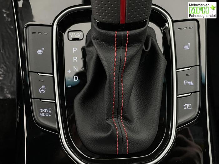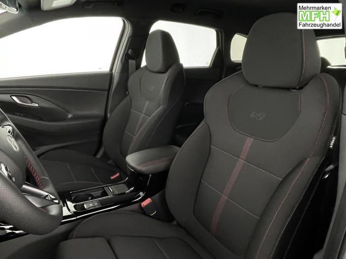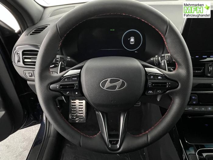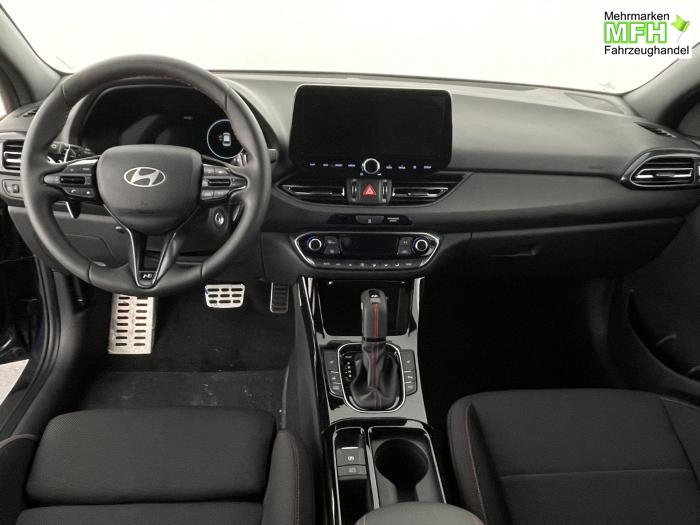 Android Auto, Apple CarPlay, Bluetooth, Navigationssystem 10,25'', Sprachsteuerung, USB-Anschluss, Bi-LED-Scheinwerfer, LED Tagfahrlicht, LED-Rückleuchten, Lichtsensor, Elektrische Fensterhebern vorn und hinten, Getönte Scheiben, Dachhimmel in Schwarz, Lenkradheizung, Mittelarmlehne vorn und hinten, Spiegel automatisch abblendbar, Sport-Multifunktions-Lederlenkrad mit Schaltwippen, beheizbar, Sport-Pedale in Edelstahl, Automatische Zweizonen - Klimaregelung , 18'' Alufelgen der Größe 225/40 R18, Alarmanlage, Elektrische Parkbremse mit AutoHold, Fahrer- und Beifahrerairbag, ISOFIX + TopTether, Vorder- und Seitenaribags, Beifahrersitz höhenverstellbar, Fahrersitz höhenverstellbar, Fahrersitz mit elektrischer Lendenwirbelstütze, Vordersitze beheizbar, Hyundai Garantie 5 Jahre, Autonomer Notbremsassistent, Berganfahrassistent HAC, Fahrprofilauswahl, Frontkollisionswarner mit Fußgänger-/Fahrradfahrererken-nung FCA, Intelligente Geschwindigkeitsassistent ISLA, Park Distance Control vorne und hinten, Reifendruck-Kontrollsystem, Rückfahrkamera, Spurhalteassistent LKA, Tempomat, Virtual Cockpit, Zentralverriegelung mit Fernbedienung, [ISLA] adaptive Geschwindigkeitsregelanlage, Start/Stopp-Automatik, Außenspiegel elektrisch anklappbar, Außenspiegel elektrisch beheizbar, Außenspiegel elektrisch einstellbar, Außenspiegelgehäuse in Schwarz, Dachreling, EU-Fahrzeug mit Tageszulassung