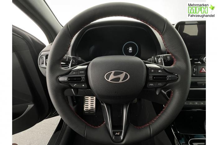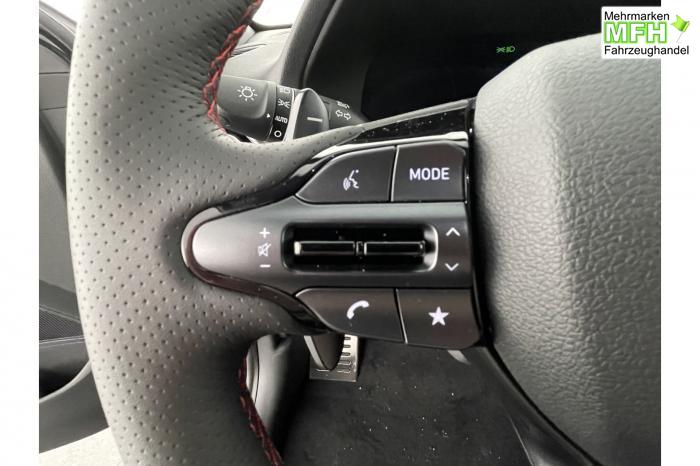 Android Auto, Apple CarPlay, Bluetooth, Navigationssystem 10,25'', Sprachsteuerung, USB-Anschluss, Bi-LED-Scheinwerfer, LED Tagfahrlicht, LED-Rückleuchten, Lichtsensor, Elektrische Fensterhebern vorn und hinten, Getönte Scheiben, Dachhimmel in Schwarz, Gepäcktrennnetz, Lenkradheizung, Mittelarmlehne vorn und hinten, Spiegel automatisch abblendbar, Sport - Multifunktionslenkrad, Sport-Pedale in Edelstahl, Automatische Zweizonen - Klimaregelung , 18'' Alufelgen der Größe 225/40 R18, Alarmanlage, Elektrische Parkbremse mit AutoHold, Fahrer- und Beifahrerairbag, ISOFIX + TopTether, Vorder- und Seitenaribags, Beifahrersitz höhenverstellbar, Fahrersitz höhenverstellbar, Fahrersitz mit elektrischer Lendenwirbelstütze, Vordersitze beheizbar, Hyundai Garantie 5 Jahre, Aktiver Spurfolgeassistent LFA, Autonomer Notbremsassistent, Berganfahrassistent HAC, Fahrprofilauswahl, Frontkollisionswarner mit Fußgänger-/Fahrradfahrererken-nung FCA, Intelligente Geschwindigkeitsassistent ISLA, Park Distance Control vorne und hinten, Reifendruck-Kontrollsystem, Rückfahrkamera, Spurhalteassistent LKA, Tempomat, Zentralverriegelung mit Fernbedienung, [ISLA] adaptive Geschwindigkeitsregelanlage, Start/Stopp-Automatik, Außenspiegel elektrisch anklappbar, Außenspiegel elektrisch beheizbar, Außenspiegel elektrisch einstellbar, Außenspiegelgehäuse in Schwarz, Dachreling, EU-Fahrzeug mit Tageszulassung