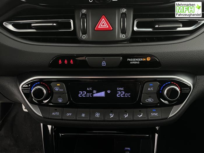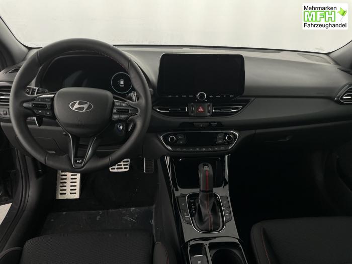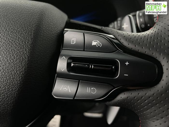 Android Auto, Apple CarPlay, Bluetooth, Navigationssystem 10,25'', Sprachsteuerung, USB-Anschluss, Bi-LED-Scheinwerfer, LED Tagfahrlicht, LED-Rückleuchten, Lichtsensor, Elektrische Fensterhebern vorn und hinten, Getönte Scheiben, Dachhimmel in Schwarz, Gepäcktrennnetz, Lenkradheizung, Mittelarmlehne vorn und hinten, Spiegel automatisch abblendbar, Sport - Multifunktionslenkrad, Sport-Pedale in Edelstahl, Automatische Zweizonen - Klimaregelung , 18'' Alufelgen der Größe 225/40 R18, Alarmanlage, Elektrische Parkbremse mit AutoHold, Fahrer- und Beifahrerairbag, ISOFIX + TopTether, Vorder- und Seitenaribags, Beifahrersitz höhenverstellbar, Fahrersitz höhenverstellbar, Fahrersitz mit elektrischer Lendenwirbelstütze, Vordersitze beheizbar, Hyundai Garantie 5 Jahre, Aktiver Spurfolgeassistent LFA, Autonomer Notbremsassistent, Berganfahrassistent HAC, Fahrprofilauswahl, Frontkollisionswarner mit Fußgänger-/Fahrradfahrererken-nung FCA, Intelligente Geschwindigkeitsassistent ISLA, Park Distance Control vorne und hinten, Reifendruck-Kontrollsystem, Rückfahrkamera, Spurhalteassistent LKA, Tempomat, Zentralverriegelung mit Fernbedienung, [ISLA] adaptive Geschwindigkeitsregelanlage, Start/Stopp-Automatik, Außenspiegel elektrisch anklappbar, Außenspiegel elektrisch beheizbar, Außenspiegel elektrisch einstellbar, Außenspiegelgehäuse in Schwarz, Dachreling, EU-Fahrzeug mit Tageszulassung