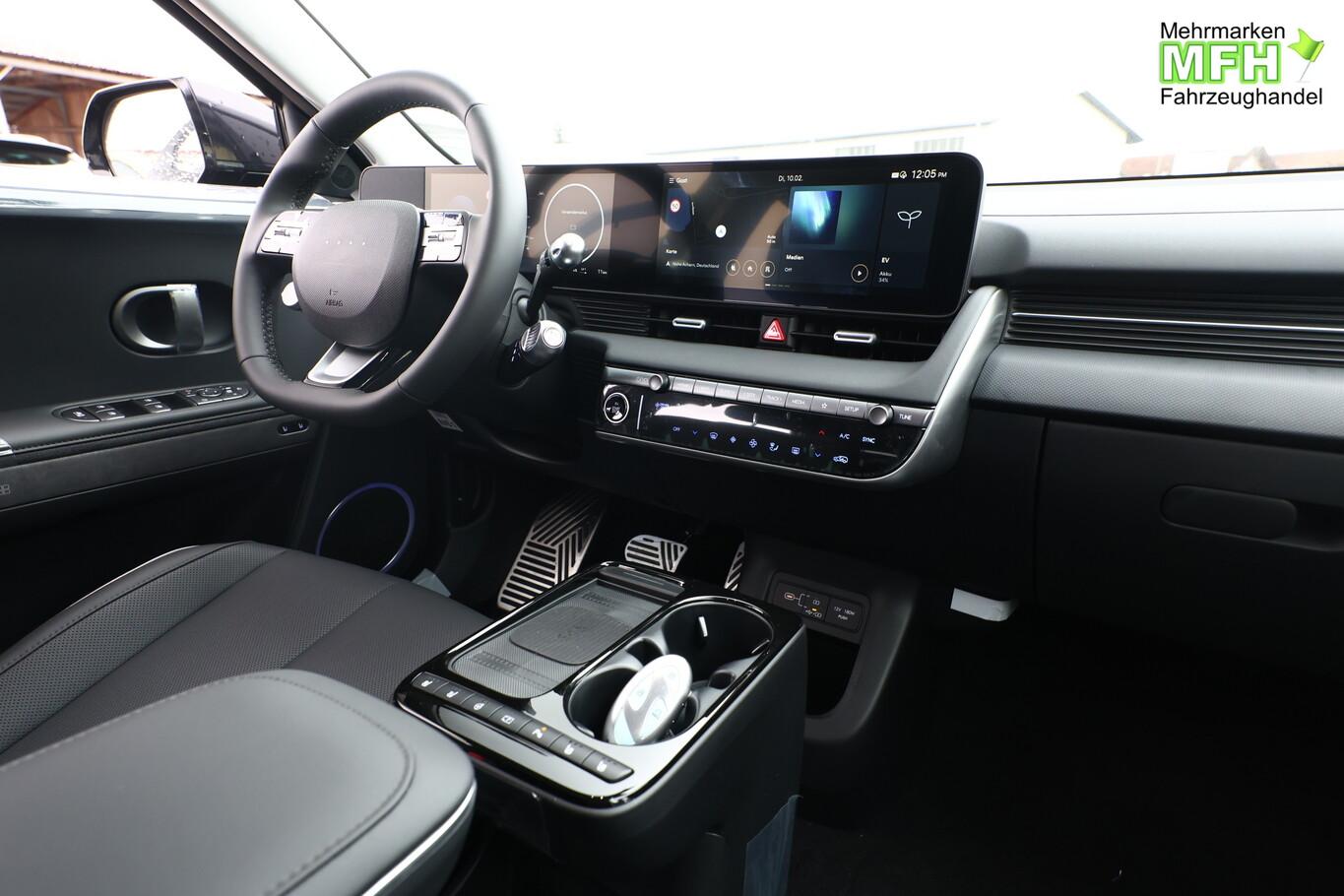 Park-Paket (Einparkhilfe seitlich / Radlaufabdeckung vorn und hinten lackiert / Seitenschutzleisten silber / Stoßfänger vorn mit Applikationen (Silber) / Fahrassistenz-System: City-Notbremsfunktion, rückwärts (PCA-R) / Kamerasystem Around View / Fahrassistenz-System: Totwinkel-Assistent mit Monitoranzeige (BVM) / Fahrassistenz-System: Remote Parklenkassistent (Remote Smart Parking Assist, RSPA)), Sound-System BOSE (7 Lautsprecher / Soundgenerator (innen) / Subwoofer), Ambientebeleuchtung, Bluetooth-Schnittstelle, Digitaler Fahrzeugschlüssel 2.0, Fahrassistenz-System: Spurwechselassistent, Freisprecheinrichtung Bluetooth, Head-up-Display, Kein Ladekabel vorhanden, LM-Felgen 20 Zoll, Mittelkonsole verschiebbar, Panorama-Glasdach, Reifen 255/45 R20, Relax-Paket, Rücksitzbank elektrisch verschiebbar, Sitzbelüftung vorn, Sitzbezug / Polsterung: Leder, Sitze vorn mit Memoryfunktion, Sitze vorn mit Relaxfunktion, SmartLink (Apple CarPlay & Android Auto), Sonnenrollos an den hinteren Türen (2. Sitzreihe), Wärmeschutzverglasung Frontscheibe, Dachspoiler (grosse Ausführung) (3. Bremsleuchte), LED-Paket (Blinkleuchten LED in Außenspiegel integriert / LED-Leuchtband vorn / Matrix-LED-Scheinwerfer), Audio-Navigationssystem (Touchscreen-Farbdisplay (12,25 Zoll)), Lenkrad (Leder) 3-Speichen (Lenkrad heizbar / Lenkrad (Leder) / Lenkrad (Leder) mit Multifunktion), Fahrassistenz-System: Autonome Notbremsfunktion inkl. Frontkollisionswarnung (FCA) (Fahrassistenz-System: Ausweich-Assistent (Evasive Steer Assistance, ESA) / Fahrassistenz-System: Ausweich-Assistent Fahrtrichtung (FCA-LS) / Fahrassistenz-System: Ausweich-Assistent Gegenverkehr (FCA-LO) / Fahrassistenz-System: Autonome Notbremsfunktion inkl. Abbiegefunktion (FCA-JT) / Fahrassistenz-System: Autonome Notbremsfunktion inkl. Fahrradfahrererkennung (FCA-Cyc.) / Fahrassistenz-System: Autonome Notbremsfunktion inkl. Fußgängererkennung (FCA-Ped.) / Fahrassistenz-System: Querverkehrs-Assistent vorn (Kreuzungs-Assistent)), Außenspiegel Unterschale schwarz lackiert, Batterieheizsystem, Elektromotor 168 kW (cont. 56 kW), Fahrassistenz-System: Autobahnassistent 2.0 (Highway Driving Assist, HDA 2.0), Fahrassistenz-System: Insassenalarm (RSA), Fahrassistenz-System: Multikollisionsbremse (Multi Collision Brake), Geschwindigkeits-Begrenzeranlage (Speed-Limiter), Heckscheibe heizbar, Heckscheibenwischer, HV-Batterie 84 kWh (Lithium-Ionen), Induktionsladeschale für Smartphone, Innenspiegel mit Abblendautomatik, Instrumentenanzeige Farbdisplay 12,25 Zoll, Karosserie: 5-türig, Kopfstützen hinten verstellbar, Kühlergrill, Aktive Luftklappen, regelbar, Ladevorrichtung On-Board-Lader (3-Phasen), Lendenwirbelstütze Sitz vorn links, elektr. verstellbar, Lendenwirbelstütze Sitz vorn rechts, elektr. verstellbar, Lenksäule (Lenkrad) höhenverstellbar, Lenksäule (Lenkrad) längsverstellbar, Mittelarmlehne hinten, Parkbremse elektrisch (EPB), Pedale Aluminium, Radioempfang digital (DAB+), Türgriffe außen ausfahrbar / versenkbar, elektrisch, Türgriffe außen Wagenfarbe, Wärmepumpe für Heizungs-/Klimaanlage, Audiosystem: Radio RDS, USB-Anschluss (Typ C), USB-Anschluss hinten (Typ C), USB-Anschluss Mittelkonsole, Anti-Blockier-System (ABS), Antriebsart: Heckantrieb, Elektron. Stabilitätskontrolle (ESC) mit Bremsassistent, Getriebe für Elektrofahrzeug, Klimaautomatik 2-Zonen, Airbag Beifahrerseite, Airbag Beifahrerseite abschaltbar, Airbag Fahrerseite, Fensterheber elektrisch vorn und hinten, mit Auf-/Ab-Automatik, Isofix-Aufnahmen für Kindersitz, Kopf-Airbag-System, Mittelarmlehne vorn verschiebbar, Rücksitzlehne geteilt/klappbar, Seitenairbag vorn, Seitenairbag vorn mitte (Central Airbag), Sitz vorn links elektr. verstellbar, Sitz vorn rechts elektr. verstellbar, Sitzheizung hinten, Sitzheizung vorn, Smart-Key, Verglasung hinten abgedunkelt (Privacy Glass), Zentralverriegelung mit Fernbedienung, Heckklappe/-Deckel elektr. betätigt (Öffnung, sensorgesteuert), Fahrassistenz-System: Berganfahrhilfe, Fahrassistenz-System: Verkehrszeichenerkennung, erweitert (Geschwindigkeits-Regel-/Begrenzeranlage), Geschwindigkeits-Regelanlage (Tempomat) mit Abstandsregelung ACC, Navigationsbasierte Adaptive Geschwindigkeitsregelanlage (Tempomat) mit Abstandsregelung (NSCC), Rückfahrkamera, Fahrassistenz-System: Sicherheitssystem mit automatischem Notruf (ERA GLONASS / eCall), Service-System: Remote Services (Blue Link), Lenkrad mit Schaltwippen, Außenspiegel elektr. anklappbar, Außenspiegel elektr. verstell- und heizbar, beide, Einschaltautomatik für Fahrlicht / Lichtsensor, Fahrassistenz-System: Fernlichtassistent, Heckleuchten LED (Pixel-Design), Scheibenwischer mit Regensensor, Fahrassistenz-System: aktiver Spurhalteassistent (LKAS, Lane Keep Assist System), Fahrassistenz-System: Aufmerksamkeits-Assistent, Fahrassistenz-System: Spurfolgeassistent (Lane Following Assist, LFA), Reifendruck-Kontrollsystem, Start-Stop-Knopf