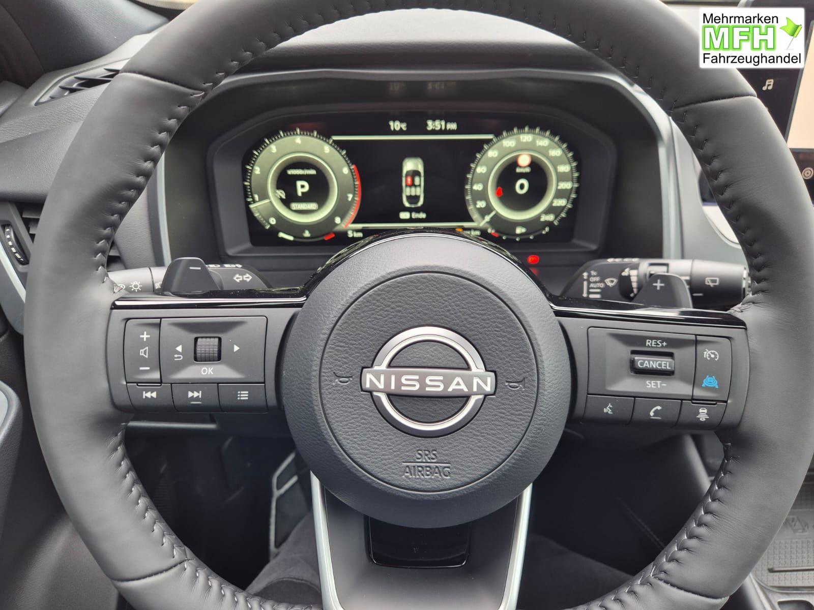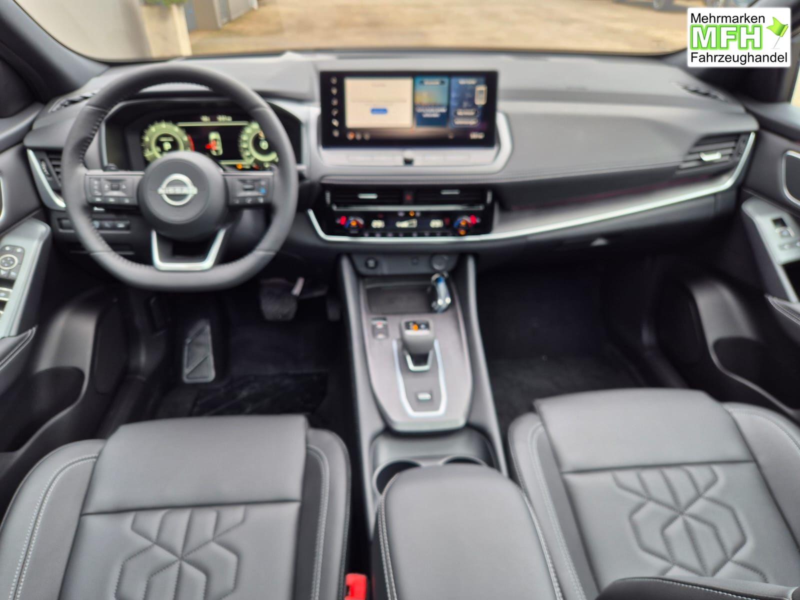 Nissan Qashqai 1.3 DIG-T MHEV 158 PS X-Tronic Tekna Voll-Leder Klimaautomatik PanoGlasdach Sitzheizung Lenkradheizung Navi Head-Up Display elektr. Heckklappe ACC PDC v+h 360°Kamera DAB Bluetooth Touchscreen Apple CarPlay Android Auto 19"LM