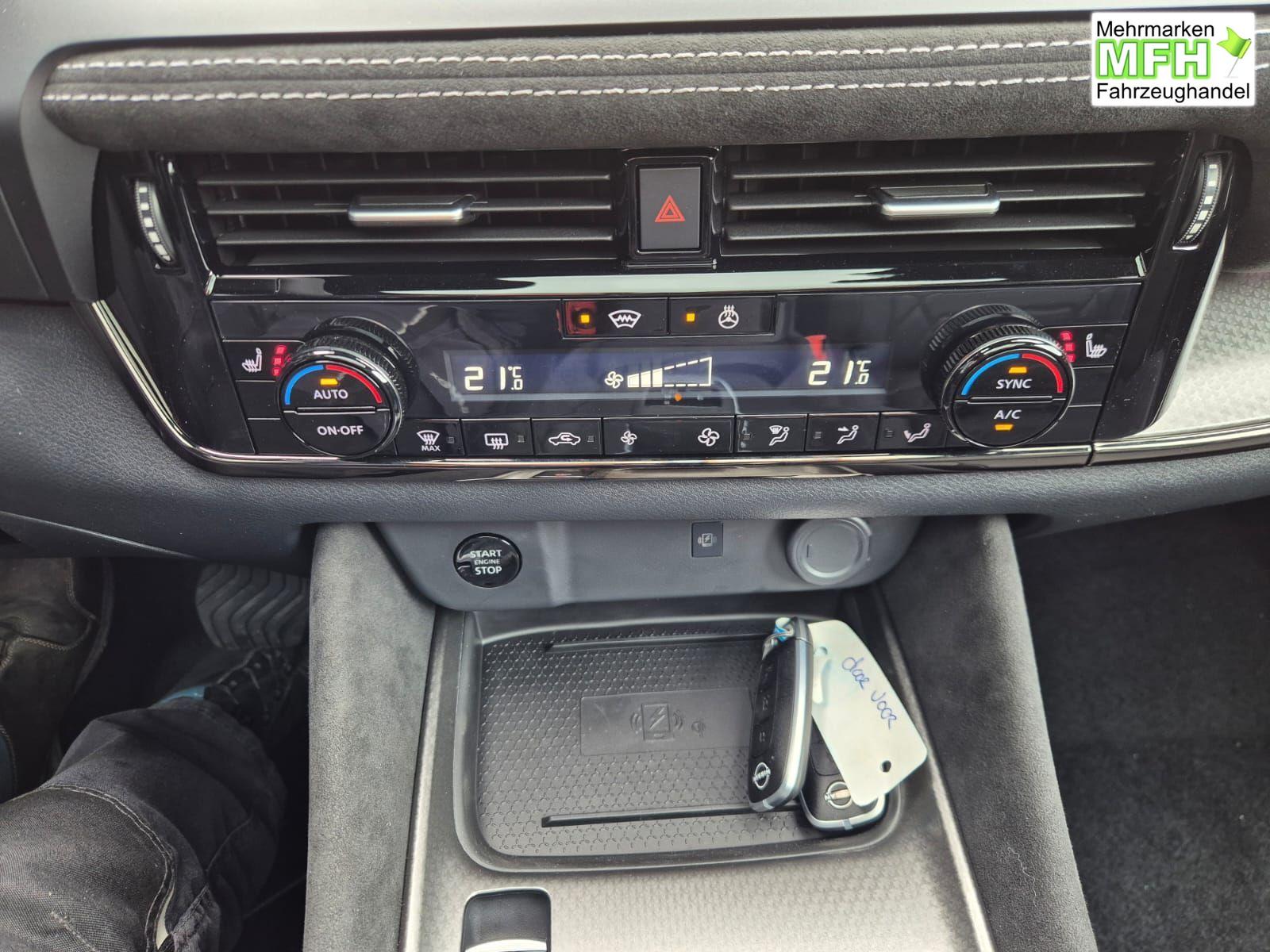 Nissan Qashqai 1.3 DIG-T MHEV 158 PS X-Tronic N-Design 20"Zoll Teil-Leder PanoGlasdach Klimaautomatik Sitzheizung Lenkradheizung Navi Head-Up Display elektr. Heckklappe ACC PDC v+h 360°Kamera DAB Bluetooth Touchscreen Apple CarPlay Android Auto