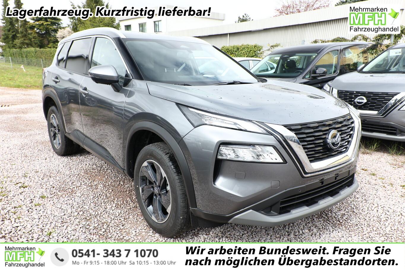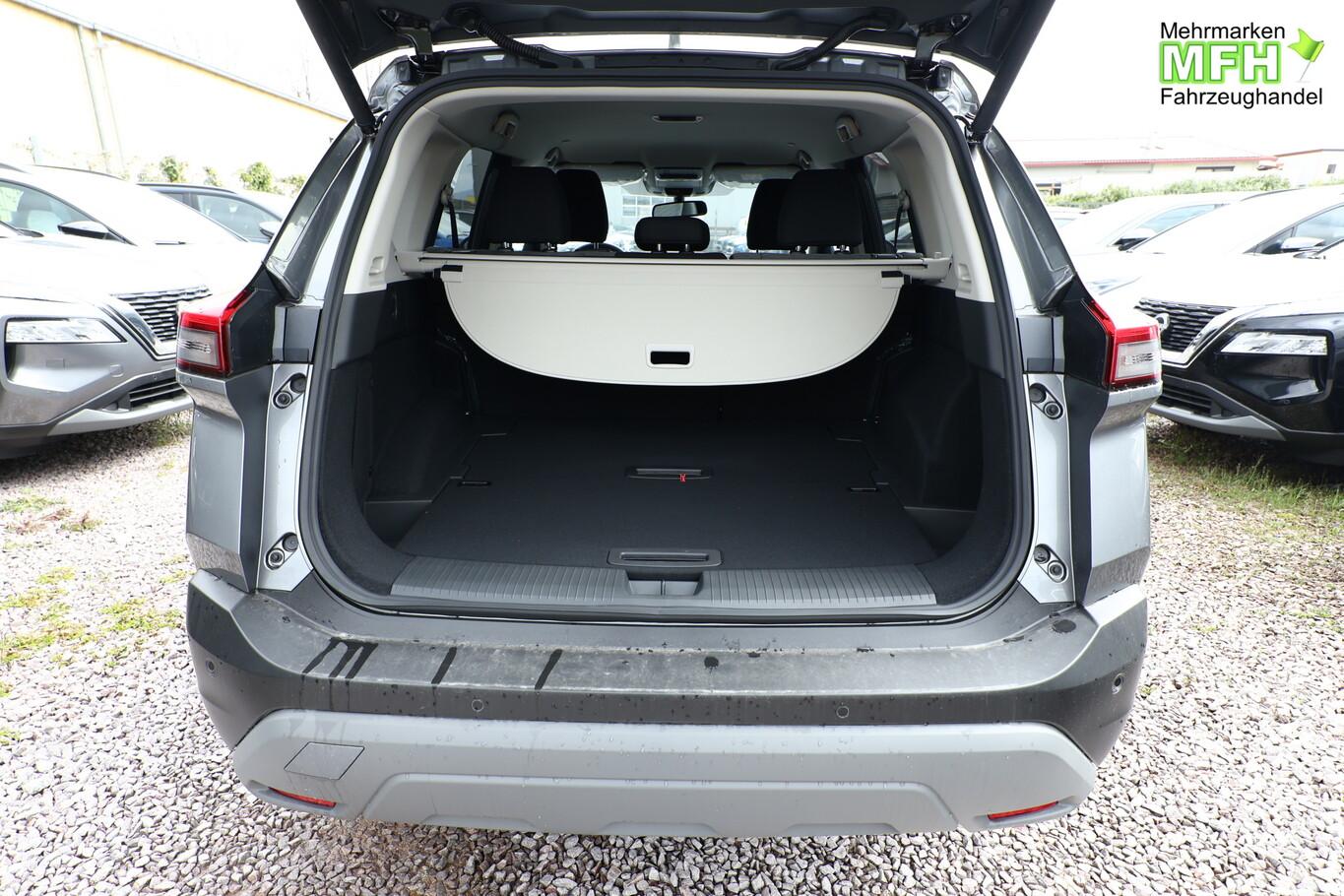 Fahrassistenz-System: ProPilot mit Navi-Link (Fahrassistenz-System: Autonomer Lenk-Assistent für selbstständiges Spurhalten / Fahrassistenz-System: Autom. Distanzregelung mit vorausschauender Geschw.-Regelung / Fahrassistenz-System: Stauassistent inkl. Stop&Go-Funktion), Elektrische Heckklappe (sensorgesteuert), Familien-Paket, Frontscheibe heizbar, Innenraumfilter: Pollenfilter, Klimaautomatik 3-Zonen, Lenkrad heizbar, LM-Felgen 18 Zoll, Sitzbezug / Polsterung: Stoff, Sitzheizung hinten (2.Sitzreihe), Sitzheizung vorn, Sommerreifen 235/60 R18, Sonnenschutzrollo an Türscheiben hinten, Zentralverriegelung, Motor 1,5 Ltr. - 120 kW VC-T MHEV (Mild-Hybrid 120 kW (Motor 1,5 Ltr. - 120 kW VC-T MHEV)), Ausstattungs-Paket: Nissan Connect Navigationssystem (Radioempfang digital (DAB) / Touchscreen-Farbdisplay (12,3 Zoll) / Bluetooth-Schnittstelle / Freisprechanlage Bluetooth / Navigationssystem / Smartphone Schnittstelle (Apple CarPlay & Android Auto) / Sprachbediensystem Spracherkennung / Around View Monitor (360° Umgebungsansicht) / Kamerasystem Around View / Service-System: Amazon Alexa / Service-System: Google Services / Service-System: Nissan Connect Services), Ambiente-Beleuchtung Mittelkonsole, Elektr. Bremskraftverteilung (EBD), Induktionsladeschale für Smartphone, Innenspiegel mit Abblendautomatik, Instrumentenanzeige TFT-Farbdisplay (12,3 Zoll), Karosserie: 5-türig, Lendenwirbelstütze Sitz vorn links, elektr. verstellbar, Lendenwirbelstütze Sitz vorn rechts, Notbrems-Warnblinkautomatik, Otto-Partikelfilter (OPF), Parkbremse elektrisch, Radstand 2705 mm, Sitz vorn links höhenverstellbar, Sitz vorn rechts höhenverstellbar, USB-Anschluss im Fond, Anti-Blockier-System (ABS), Antriebsart: Frontantrieb, Elektron. Stabilitäts-Programm (ESP), Getriebe Automatik stufenlos - X-Tronic-CVT, Airbag Fahrer-/Beifahrerseite, Isofix-Aufnahmen für Kindersitz, Keyless-Entry, Kopf-Airbag-System, Rücksitzbank verschiebbar, Rücksitzlehne geteilt (40:20:40), Seitenairbag vorn mitte (Center-Airbag), Verglasung hinten abgedunkelt, Fahrmodusschalter, Dachreling, Auto-Hold-Funktion, Fahrassistenz-System: Auffahrwarnsystem (Forward Collision Warning, FCW), Fahrassistenz-System: Verkehrszeichenerkennung, Geschwindigkeits-Regelanlage (Tempomat) mit Abstandsregelung, Rückfahrkamera, Fahrassistenz-System: Sicherheitssystem ERA GLONASS mit automatischem Notruf, Lenkrad (Leder) mit Multifunktion, Außenspiegel elektr. anklappbar, Außenspiegel elektr. verstell- und heizbar, Fahrassistenz-System: Fernlichtassistent, Fahrassistenz-System: Totwinkel-Assistent, Heckleuchten LED, Licht- und Regensensor, Scheinwerfer LED, Tagfahrlicht LED, Einparkhilfe hinten, Einparkhilfe vorn, Fahrassistenz-System: aktiver Spurhalteassistent, mit korrigierendem Bremseingriff, Fahrassistenz-System: Autonomer Notbrems-Assistent, Fahrassistenz-System: Müdigkeitserkennungs-Sensor, Fahrassistenz-System: Querverkehrs-Assistent Heck (Rear Cross Traffic Alert, RCTA), Reifendruck-Kontrollsystem
