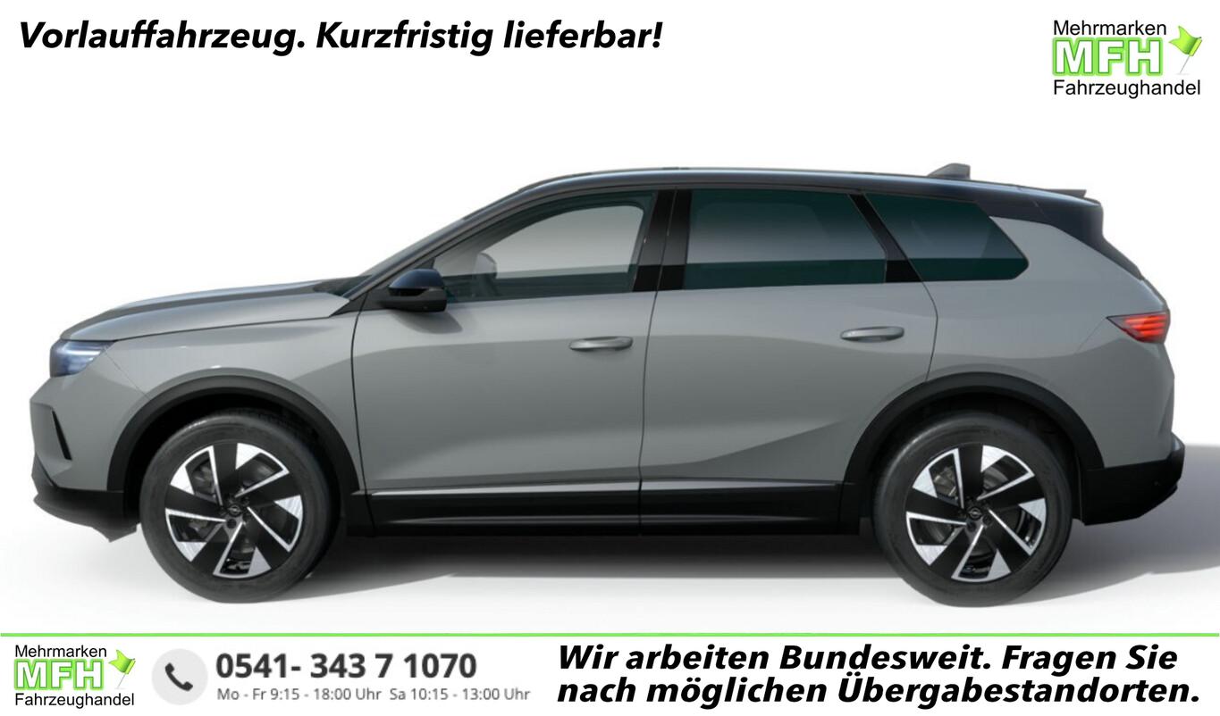 Komfort-Paket (Leseleuchten Seitentüren (Kuppel-LED) / Seitenscheiben als Verbundglas / Sound-System Focal / Sonnenschutzrollo an Türscheiben hinten elektr. / Kofferraumdeckel / Heckklappe elektr. betätigt (öffnen + schliessen, sensorgesteuert) / Panorama-Schiebedach elektrisch), Tech-Paket 1 (Automatische Umluft-Control / Frontscheibe heizbar (ThermaTec) / Head-up-Display / Kamerasystem 360° / Fahrassistenz-System: Totwinkel-Assistent / Fahrassistenz-System: Querverkehrs-Assistent Heck (Rückfahr-Assistent) / Fahrassistenz-System: Spurhalteassistent (LPA) mit halbautonomen Spurwechselassistent (HIA)), 4 USB-Schnittstellen (Typ C), 4-Wege-Kopfstützen vorn, 6 Lautsprecher, Adaptive Geschwindigkeits-Regelanlage (ACC), Airbag Fahrer-/Beifahrerseite, Ambiente-Beleuchtung LED, Außenspiegel elektr. verstell-, heiz- und anklappbar, Außenspiegel mit LED-Zugangsbeleuchtung, Außenspiegel schwarz, Bluetooth-Freisprecheinrichtung, Brust-Becken-Seitenairbags Fahrer-/Beifahrerseite, Dach in Schwarz, Dachhimmel schwarz, Fahrassistenz-System: Frontkollisionswarner mit automatischer Gefahrenbremsung, Fahrassistenz-System: Müdigkeitserkennung, Fahrassistenz-System: Verkehrszeichenerkennung, Fahrmodusschalter, Gepäckraumbeleuchtung LED, Getränkehalter vorn und hinten, Gurtwarnanlage, Handschuhfach beleuchtet, Intelligenter Geschwindigkeitsbegrenzer (ISA), Kabellose Smartphone-Integration (Apple CarPlay und Android Auto), Kombiinstrument digital (10"), Kopf-Airbag-System, Kühlbares Ablagefach Mittelkonsole, Lendenwirbelstützen elektr. verstellbar, Lenkrad (Kunstleder) mit Multifunktion, LM-Felgen 19", Matrix-LED-Scheinwerfer (Intelli-Lux HD), Mittelarmlehne hinten, Opel Blitz, beleuchtet (Vizor), Opel Schriftzug am Heck, beleuchtet, Pixel-Box in Mittelkonsole, Reifen 225/55 R19, Sicherheitsnetz, Sitzbezug/Polsterung: Stoff/Kunstleder, Steckdose (12V-Anschluss) im Kofferraum, Steckdose (12V-Anschluss) vorn und hinten, Zentralverriegelung mit Fernbedienung, Motor 1,2 Ltr. - 100 kW (System: 107 kW) Mild-Hybrid (Mild-Hybrid 107 kW (Motor 1,2 Ltr. - 100 kW)), Audio-Navigationssystem Multimedia Navi (16" Touchscreen-Farbdisplay) (DAB-Tuner (Radioempfang digital)), Ergonomiesitz vorn links/rechts, Feststellbremse elektrisch, Gepäck-/Laderaumboden doppelt, Induktionsladeschale für Smartphone (Wireless Charging), Innenspiegel mit Abblendautomatik, Karosserie: 5-türig, Kindersicherung, Lenkrad heizbar, Leseleuchten Seitentüren (Eco Kuppel-LED), Leseleuchten vorn (Eco Kuppel-LED), Otto-Partikelfilter (OPF), Radstand Standard, Sonnenblenden mit Spiegel (LED-Beleuchtung), Antriebsart: Frontantrieb, Elektron. Stabilitäts-Programm (ESP), Getriebe Automatik - Doppelkupplungsgetriebe (6-Stufen, Hybrid), Klimaautomatik 2-Zonen, Fensterheber elektrisch hinten, Fensterheber elektrisch vorn, Isofix-Aufnahmen für Kindersitz an Beifahrersitz, Isofix-Aufnahmen für Kindersitz an Rücksitz, Rücksitzlehne geteilt (40:20:40), Schließ-/Startsystem Keyless Open, Sitzheizung vorn, Wärmeschutzverglasung hinten abgedunkelt (Solar-Protect), Fahrassistenz-System: Berganfahr-Assistent (HSA, Hill Start Assist), Rückfahrkamera mit 180° Umgebungsansicht, Heckleuchten LED, Tagfahrlicht LED, Parkpilotsystem vorn und hinten, Reifendruck-Kontrollsystem