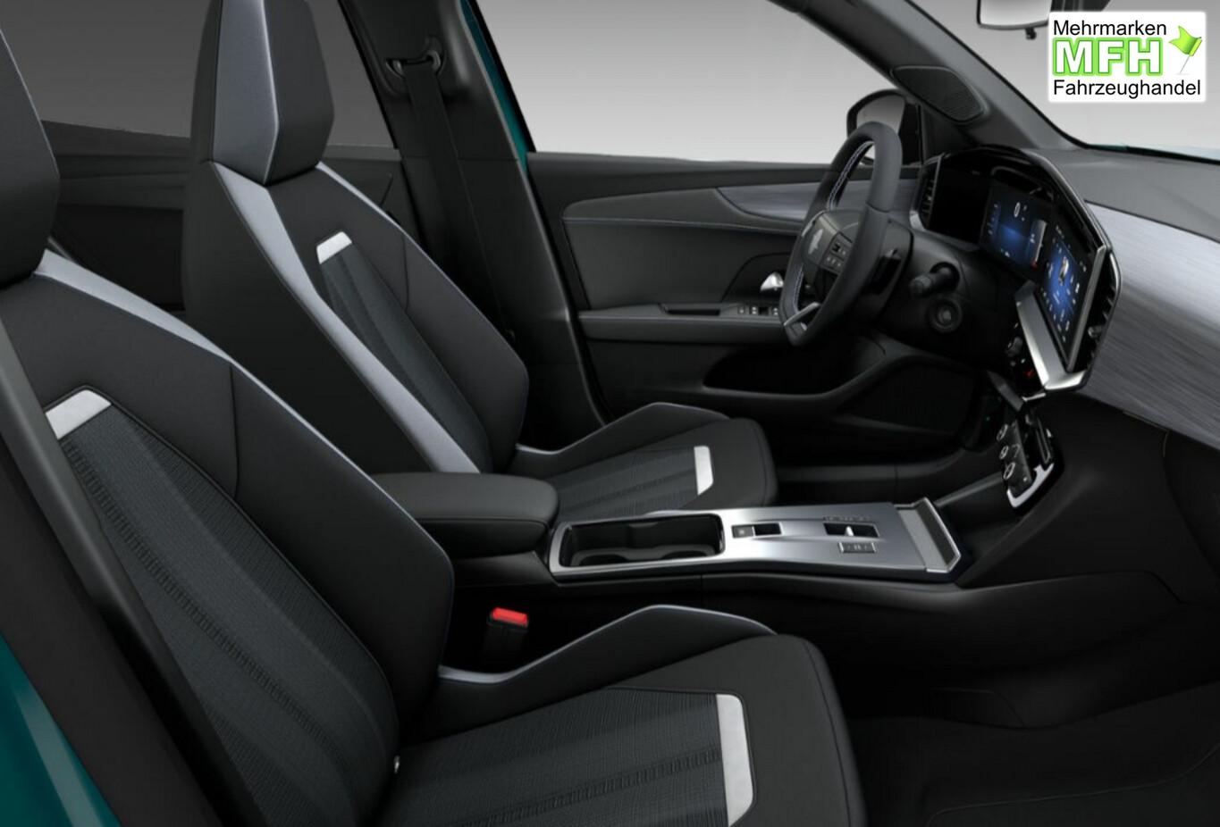 Infotainment-Paket (6 Lautsprecher / Induktionsladeschale für Smartphone (Wireless Charging) / Multifunktionsanzeige mit Touchscreen-Farbdisplay 12 Zoll / Opel Connect / Audio-Navigationssystem Multimedia Navi Pro (10" Display) / Smartphone Schnittstelle (Apple CarPlay & Android Auto)), Winter-Paket (Lenkrad heizbar / Sitzheizung vorn), Reifen-Reparaturkit, Ablagetasche an Rückseite der Vordersitzlehnen, Fahrassistenz-System: Automatisches Fernlicht, Fahrassistenz-System: Notbrems-Assistent, Fahrassistenz-System: Spurhalteassistent, Innenspiegel abblendbar, Isofix-Aufnahmen für Kindersitz, Kombiinstrument Digital, Lenkrad (Leder), Lenkrad heizbar, Leseleuchten LED vorn, LM-Felgen 17 Zoll, Notrufassistent, Otto-Partikelfilter, Reifen 215/60 R17, Reifendruck Überwachung, Sitz vorn links höhenverstellbar, Sommerreifen, Start-/Stopp System, Zentralverriegelung, Black-Paket (Dach, Design-Ausführung (schwarz) / Kühlergrill, Opel Vizor, Rahmen in Hochglanz-Schwarz / Schriftzug Heckklappe Schwarz, Hochglanz), Parkpilotsystem hinten (Rückfahrkamera mit 180° Umgebungsansicht), DAB-Tuner (Radioempfang digital), Karosserie: 5-türig, Mild-Hybrid 107 kW (Motor 1,2 Ltr. - 100 kW), Radstand 2557 mm, Freisprecheinrichtung Bluetooth, Anti-Blockier-System (ABS), Antriebsart: Frontantrieb, Elektron. Stabilitäts-Programm Plus (ESP), Getriebe Automatik - Doppelkupplungsgetriebe (6-Stufen, Hybrid), Klimaautomatik, Fahrassistenz-System: Verkehrszeichenerkennung, Heckleuchten LED, Scheibenwischer mit Regensensor, Fahrassistenz-System: Müdigkeitserkennungs-Sensor