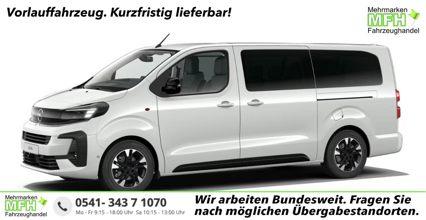 Design-Paket Black Edition (Außenspiegel schwarz hochglänzend / Seitenschutzleisten Schwarz, Hochglanz), Opel Connect, 12V-Steckdosen (vorn und 3. Sitzreihe), Ablagefach oben zentral, schließbar, Ablagetasche an Vordersitzlehnen, Adaptives Traktionssystem (IntelliGrip) inkl. Fahrmodusschalter, Armlehne Sitz vorn rechts, Audio-Navigationssystem, Audiobedienung am Lenkrad, Digitales Fahrerinfodisplay, Einstiegsleisten beleuchtet (2. Sitzreihe), Fahrassistenz-System: Autonomer Notbrems-Assistent, Fahrassistenz-System: Frontkollisionswarnung, Fahrassistenz-System: Totwinkel-Assistent, Feststellbremse elektrisch, Flankenschutz, Gepäckraumbeleuchtung (2 Stück), Geschwindigkeits-Begrenzeranlage, Induktionsladeschale für Smartphone, Innenspiegel mit Abblendautomatik, ISOFIX-Vorrüstung 2. und 3. Sitzreihe, Kindersicherung elektrisch, Klapptische an Vordersitzlehnen, Lenkrad (Kunstleder) heizbar, LM-Felgen 17 Zoll, Nebelscheinwerfer, Oberes Handschuhfach, schließbar (Premium), Parkpilotsystem vorn und hinten, Reifen 225/55 R17, Reihe 2+3: Rückenlehne in der Neigung einstellbar, Reihe 2+3: Rücksitzlehnen geteilt (2/3:1/3) klappbar, Sitzbänke verschieb- und herausnehmbar, Rückfahrkamera mit 180° Umgebungsansicht, Schadstoffarm nach Abgasnorm Eure 6e (EU6 EA), Scheinwerfer Voll-LED, Schiebetür links elektr. betätigt (sensorgesteuert), Schiebetür rechts elektr. betätigt (sensorgesteuert), Schließ-/Startsystem Keyless Open, Sitz vorn links inkl. Armlehne und Lendenwirbelstütze, Sitz vorn links mit Massagefunktion, Sitz vorn rechts mit Massagefunktion, Sitzheizung vorn, Sitzverstellung vorn links elektr. (6-fach), Sitzverstellung vorn rechts elektr. (4-fach), Solar Protect®-Wärmeschutzverglasung, extra stark getönt, hinten (90% Tönungsgrad), Sonnenblenden mit Spiegel beleuchtet, Tagfahrlicht LED, Unteres Handschuhfach, schließbar, Fahrassistenz-Paket 1 (Frontscheibe wärmeabweisend (Solar-Reflect) / Fahrassistenz-System: Verkehrszeichenerkennung / Fahrassistenz-System: Fernlichtassistent / Fahrassistenz-System: Müdigkeitserkennungs-Sensor / Fahrassistenz-System: Spurhalteassistent), HiFi-Soundsystem inkl. Subwoofer (10 Lautsprecher), Sitzkombination: (3) 8-Sitzer (Sitzbezug / Polsterung: Leder), Klima-Paket (USB-Schnittstelle hinten (2-fach) / Klimaanlage im Fond / Klimaautomatik 2-Zonen), Abdeckleiste Schiebetürschiene in Wagenfarbe, DAB-Tuner (Radioempfang digital), Heckscheibe heizbar, Laderaumabdeckung, Lenksäule (Lenkrad) verstellbar, Motor 2,2 Ltr. - 132 kW Blue-HDI FAP, SCR-System (AdBlue-Technologie), Steckdose 230V, Wärmeschutzverglasung hinten stark abgedunkelt (Solar-Protect), Anti-Blockier-System (ABS), Antriebsart: Frontantrieb, Elektron. Stabilitäts-Programm Plus (ESP), Getriebe Automatik - mit Start-/Stop (8-Stufen), Airbag Beifahrerseite abschaltbar, Airbag Fahrer-/Beifahrerseite, Fensterheber elektrisch vorn, Kopf-Airbag-System, Seitenairbag vorn, Sonnenschutzrollo an Seitenscheiben hinten, Fahrassistenz-System: Berganfahr-Assistent (HSA, Hill Start Assist), Geschwindigkeits-Regelanlage (Tempomat), Außenspiegel elektr. verstell- und heizbar, elektr. anklappbar, Einschaltautomatik für Fahrlicht, Scheibenwischer mit Regensensor, Reifendruck-Kontrollsystem