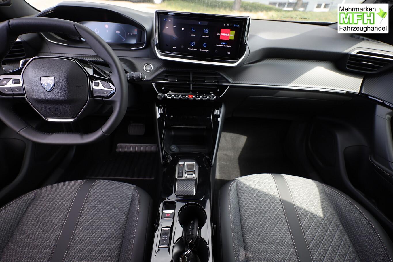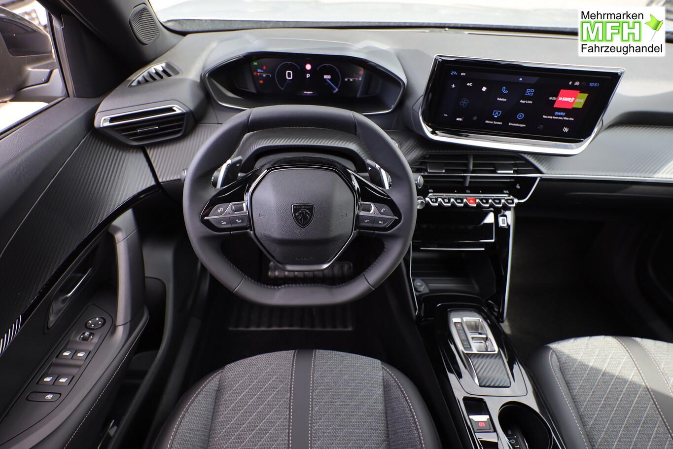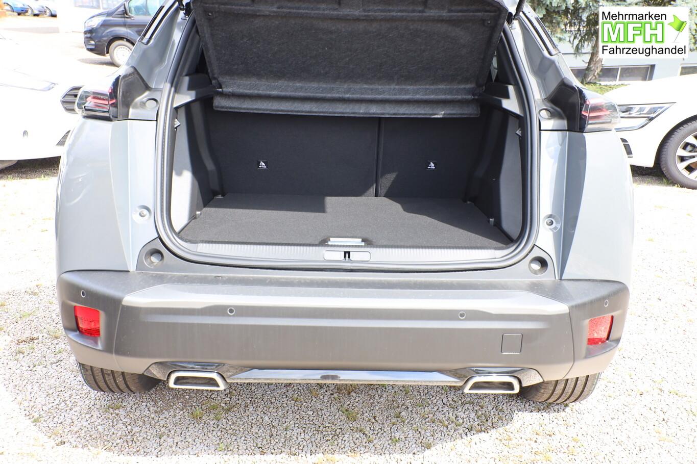 Navigations- und Zugangs-Paket (Gepäckraumboden verschiebbar, variabel / Induktionsladeschale für Smartphone / Multifunktionsanzeige mit Farbdisplay (DGT10CHD) / Navigationssystem i-Connect Advanced / Startanlage Keyless System / Zentralverriegelung / Startanlage Keyless System / Peugeot Connect-Box / SOS-Taste (Notruf für Lokalisierung Fahrzeug)), Ausstattungs-Paket: Vision & Drive Assist (Fahrassistenz-System: Aktiver Notbrems-Assistent (Active Safety Brake Plus) / Adaptive Geschwindigkeitsregelanlage (ACC) / Rückfahrkamera mit 360° Umgebungsansicht / Außenspiegel mit Umfeldleuchte / Fahrassistenz-System: Totwinkel-Assistent (SAM)), Grip-Control-Paket (Fahrmodusschalter (Adaptives Traktionssystem) / Fahrassistenz-System: Bergabfahrhilfe), Radioempfang digital (DAB+), 6 Lautsprecher, Allwetterbereifung, BT-Freisprechanlage, Dachreling, Fensterheber elektrisch hinten, Kombiinstrument digital 10", Lenkrad (Leder), LM-Felgen 17 Zoll, MirrorLink (Apple Carplay, Android Auto), Reifen 215/60 R17, Schadstoffarm nach Abgasnorm Euro 6e (EU6 EA) , USB-Schnittstelle, Rücksitzlehne geteilt/klappbar (Rücksitzbank klappbar 1/3-2/3), Außenspiegel elektr. anklappbar (Außenspiegel anklappbar), Außenspiegel mit Abdeckkappen schwarz, Frontscheibe geräuschdämmend, Innenraumfilter: Staub- und Pollenfilter, Innenspiegel mit Abblendautomatik, Karosserie: 5-türig, Kartentasche an Vordersitze, Kindersicherung, manuell, Kopfstützen hinten (3-fach), Mild-Hybrid 100 kW (Motor 1,2 Ltr. - 100 kW), Mobile Online Dienste MirrorLink und AppinCar (Mirror Screen), Otto-Partikelfilter (GPF), Parkbremse elektrisch, Radstand 2605 mm, Sitze vorn höhenverstellbar, Türgriffe außen Wagenfarbe, Warnanlage für Sicherheitsgurte, Anti-Blockier-System (ABS), Fahrassistenz-System: Aktiver Notbrems-Assistent (Active Safety Brake), Antischlupfregelung (ASR), Antriebsart: Frontantrieb, Elektron. Stabilitäts-Programm (ESP, Bosch), Getriebe Automatik - Doppelkupplungsgetriebe (6-Stufen, Hybrid), Klimaautomatik, Airbag Beifahrerseite abschaltbar, Airbag Fahrer-/Beifahrerseite, Fensterheber elektr. vorn, links mit Impulsgeber, Isofix-Aufnahmen für Kindersitz, Kopf-Airbag-System, Kopf-Airbag-System hinten, Mittelarmlehne vorn, Seitenairbag vorn, Seitenscheiben hinten und Heckscheibe dunkel getönt, Sitzheizung vorn, Verzurrösen Laderaum, Zentralverriegelung inkl. Türverriegelung automatisch, Zentralverriegelung mit Fernbedienung, Bordcomputer, Fahrassistenz-System: Berganfahrhilfe, Lenkrad mit Multifunktion, Servolenkung elektrisch, Außenspiegel elektr. verstell- und heizbar, beide, Blinkleuchte in Außenspiegel integriert, Einschaltautomatik für Fahrlicht, Scheibenwischer mit Regensensor, Scheinwerfer Eco-LED, Tagfahrlicht LED, Einparkhilfe vorn und hinten, Fahrassistenz-System: aktiver Spurassistent (Lenkunterstützung), Fahrassistenz-System: Müdigkeitserkennungs-Sensor, Reifendruck-Kontrollsystem