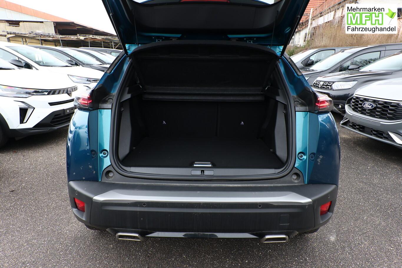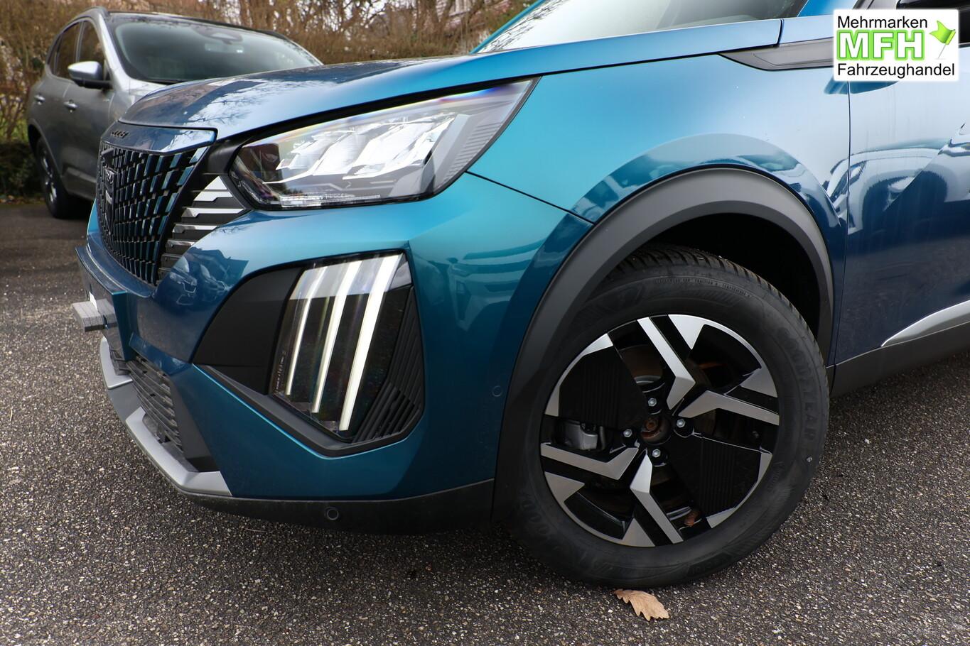 Navigations- und Zugangs-Paket (Gepäckraumboden verschiebbar, variabel / Induktionsladeschale für Smartphone / Multifunktionsanzeige mit Farbdisplay (DGT10CHD) / Navigationssystem i-Connect Advanced / Startanlage Keyless System / Zentralverriegelung / Startanlage Keyless System / Peugeot Connect-Box / SOS-Taste (Notruf für Lokalisierung Fahrzeug)), Ausstattungs-Paket: Vision & Drive Assist (Fahrassistenz-System: Aktiver Notbrems-Assistent (Active Safety Brake Plus) / Adaptive Geschwindigkeitsregelanlage (ACC) / Rückfahrkamera mit 360° Umgebungsansicht / Außenspiegel mit Umfeldleuchte / Fahrassistenz-System: Totwinkel-Assistent (SAM)), Radioempfang digital (DAB+), Reifen-Reparaturkit, 6 Lautsprecher, BT-Freisprechanlage, Fahrmodusschalter, Fensterheber elektr. vorne, hinten, Kombiinstrument digital 10", Lenkrad (Leder), LM-Felgen 17 Zoll, Navigation in Verbindung mit dem Smartphone (über Apple Carplay / Android Auto /...), Reifen 215/60 R17, Schadstoffarm nach Abgasnorm Euro 6e (EU6 EA) , USB-Schnittstelle, Außenspiegel elektr. anklappbar (Außenspiegel anklappbar), Außenspiegel mit Abdeckkappen schwarz, Frontscheibe geräuschdämmend, Innenraumfilter: Staub- und Pollenfilter, Innenspiegel mit Abblendautomatik, Karosserie: 5-türig, Kartentasche an Vordersitze, Kindersicherung, manuell, Kopfstützen hinten (3-fach), Mobile Online Dienste Mirror Screen, Otto-Partikelfilter (GPF), Parkbremse elektrisch, Pyrotechnischer Gurtstraffer, Radstand 2605 mm, Sitze vorn höhenverstellbar, Türgriffe außen Wagenfarbe, Warnanlage für Sicherheitsgurte, Anti-Blockier-System (ABS), Antriebsart: Frontantrieb, Elektron. Stabilitäts-Programm (ESP, Bosch), Getriebe Automatik - Doppelkupplungsgetriebe (6-Stufen, Hybrid), Klimaautomatik, Airbag Beifahrerseite abschaltbar, Airbag Fahrer-/Beifahrerseite, Isofix-Aufnahmen für Kindersitz, Kopf-Airbag-System, Kopf-Airbag-System hinten, Mittelarmlehne vorn, Seitenairbag vorn, Seitenscheiben hinten und Heckscheibe dunkel getönt, Sitzheizung vorn, Verzurrösen Laderaum, Zentralverriegelung inkl. Türverriegelung automatisch, Zentralverriegelung mit Fernbedienung, Dachreling schwarz, Fahrassistenz-System: Berganfahrhilfe, Lenkrad mit Multifunktion, Servolenkung elektrisch, Außenspiegel elektr. verstell- und heizbar, beide, Blinkleuchte in Außenspiegel integriert, Einschaltautomatik für Fahrlicht, Scheibenwischer mit Regensensor, Scheinwerfer Eco-LED, Tagfahrlicht LED, Einparkhilfe vorn und hinten, Fahrassistenz-System: aktiver Spurassistent (Lenkunterstützung), Fahrassistenz-System: Müdigkeitserkennungs-Sensor, Reifendruck-Kontrollsystem