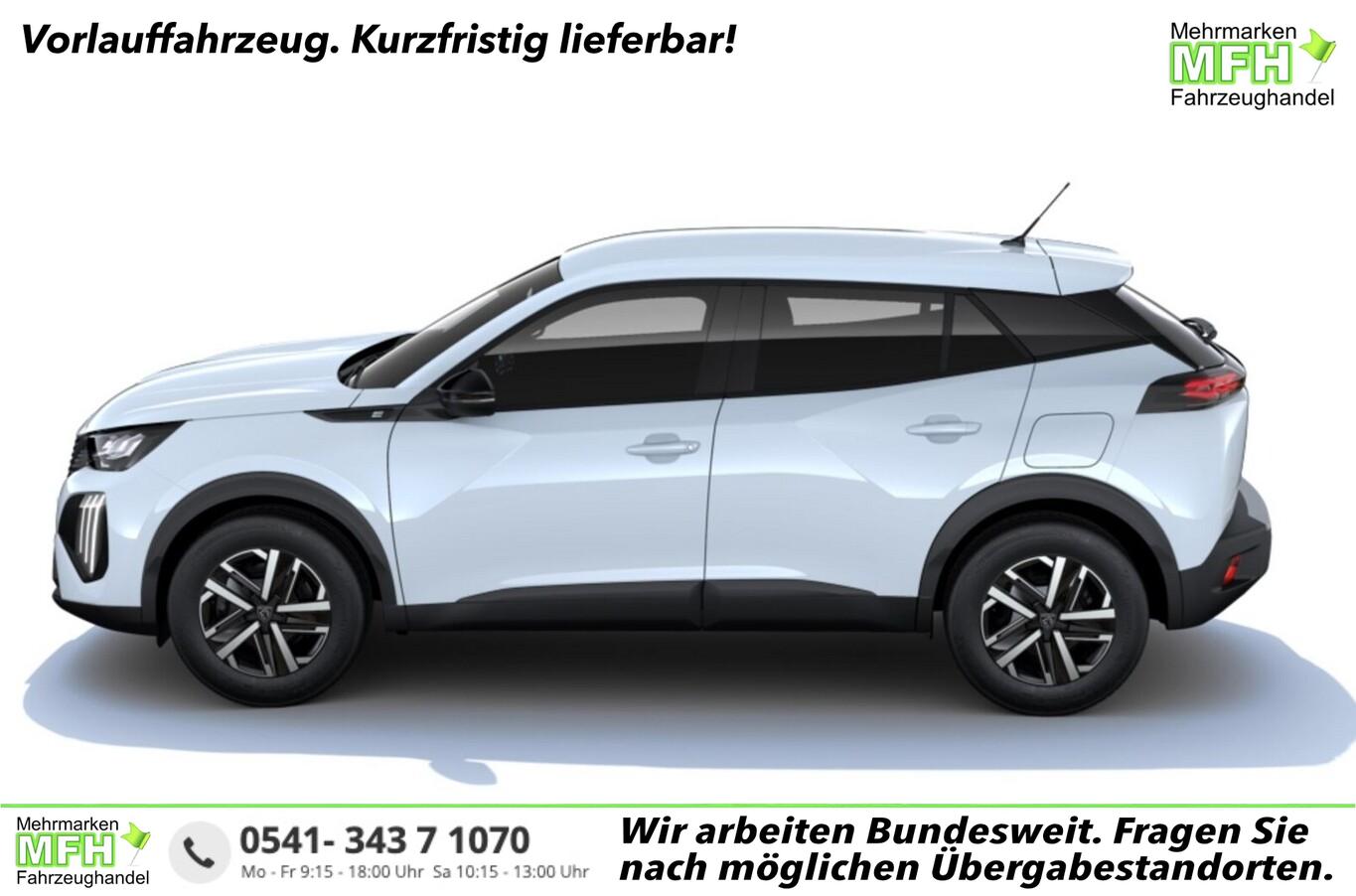 Ladevorrichtung On-Board-Lader 11 kW, Sitzheizung vorn, Reifen-Reparaturkit, Audiosystem inkl. 10"-Touchscreen, 6 Lautsprecher, Fensterheber elektr. hinten, Freisprecheinrichtung Bluetooth, Gepäckraumbeleuchtung, Lenkrad (Leder), Leseleuchten vorn, Leuchtweitenregulierung, Modelljahr 2024, Navigation in Verbindung mit dem Smartphone (über Apple Carplay / Android Auto /...), Radioempfang digital (DAB+), Reifen 215/65 R16, Smartphone-Schnittstelle (Apple CarPlay & Android Auto), Sonnenblenden mit Spiegel, Stahlfelgen 16", Steckdose (12V-Anschluss), USB-Anschluss (Typ A + Typ C), Akustischer Fußgängerschutz (Außensound), Außenspiegel mit Abdeckkappen schwarz, Dachhimmel schwarz, Elektr. Bremskraftverteilung, Elektromotor 115 kW (cont. 62 kW), Frontscheibe geräuschdämmend, Heckscheibe heizbar, Innenraumfilter: Staub- und Pollenfilter, Karosserie: 5-türig, Kartentasche an Vordersitze, Kindersicherung, manuell, Kopfstützen hinten (3-fach), Parkbremse elektrisch, Pyrotechnischer Gurtstraffer, Radstand 2605 mm, Sitz vorn links höhenverstellbar, Sitzbezug / Polsterung: Stoff, Türgriffe außen Wagenfarbe, Wärmepumpe zur Reichweitenoptimierung, Warnanlage für Sicherheitsgurte, Anti-Blockier-System (ABS), Fahrassistenz-System: Aktiver Notbrems-Assistent (Active Safety Brake), Antischlupfregelung (ASR), Antriebsart: Frontantrieb, Elektron. Stabilitäts-Programm (ESP, Bosch), Getriebe für Elektrofahrzeug, Klimaautomatik, Airbag Beifahrerseite abschaltbar, Airbag Fahrer-/Beifahrerseite, Fensterheber elektr. vorn, links mit Impulsgeber, Isofix-Aufnahmen für Kindersitz, Kopf-Airbag-System, Kopf-Airbag-System hinten, Mittelarmlehne vorn, Seitenairbag vorn, Verzurrösen Laderaum, Zentralverriegelung inkl. Türverriegelung automatisch, Zentralverriegelung mit Fernbedienung, Bordcomputer, Fahrmodusschalter, Fahrassistenz-System: Berganfahrhilfe, Fahrassistenz-System: Verkehrszeichenerkennung, Geschwindigkeits-Regelanlage (Tempomat) inkl. Geschwindigkeits-Begrenzeranlage, Peugeot Connect-Box / SOS-Taste (Notruf für Lokalisierung Fahrzeug) Version 3S, Lenkrad mit Multifunktion, Servolenkung elektrisch, Außenspiegel elektr. anklappbar, Außenspiegel elektr. verstell- und heizbar, beide, Blinkleuchte in Außenspiegel integriert, Einschaltautomatik für Fahrlicht, Scheibenwischer mit Regensensor, Scheinwerfer Eco-LED, Tagfahrlicht LED, Einparkhilfe hinten, Fahrassistenz-System: aktiver Spurassistent (Lenkunterstützung), Fahrassistenz-System: Müdigkeitserkennungs-Sensor, Reifendruck-Kontrollsystem
