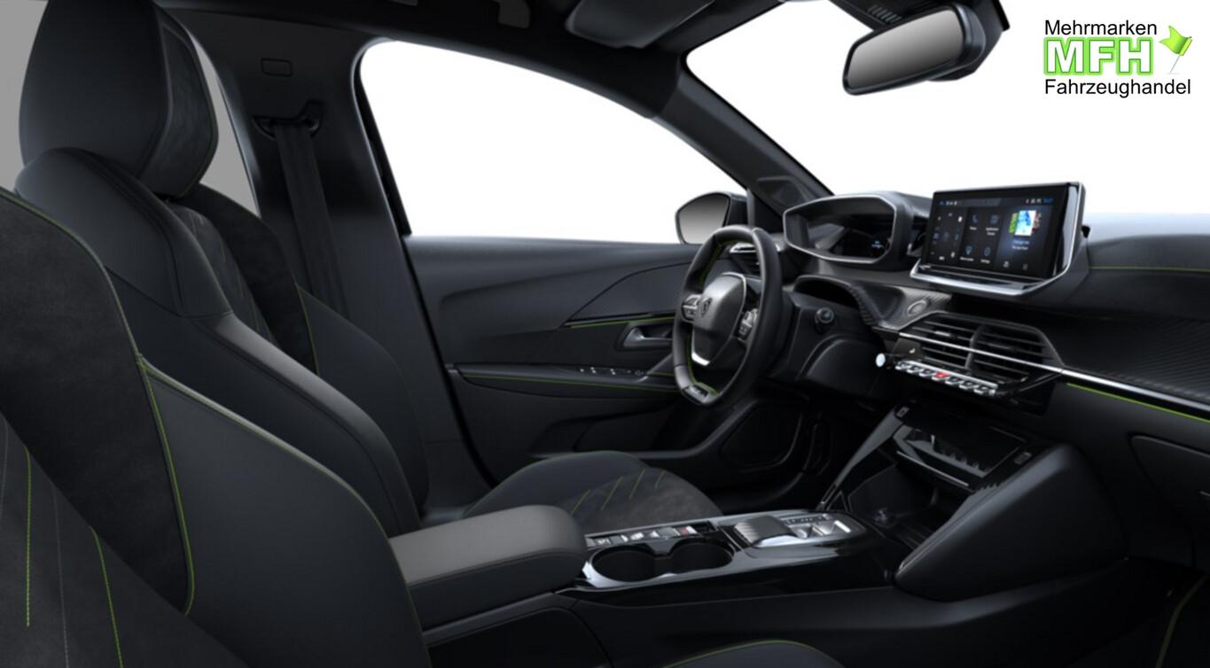 Alcantara / Kunstleder Paket (Innenausstattung: Ziernähte farbig / Sitz vorn links mit Massagefunktion / Sitzbezug / Polsterung: Alcantara / Kunstleder / Sitz vorn links elektr. verstellbar / Sitzheizung vorn), Sicht & Navigations-Paket (Induktionsladeschale für Smartphone / Multifunktionsanzeige mit HD Touchscreen-Farbdisplay 10 Zoll / Navigationssystem i-Connect Advanced / USB-Anschlüsse (Typ C und Typ A) / USB-Schnittstelle / Rückfahrkamera mit 360° Umgebungsansicht / Peugeot Connect-Box / SOS-Taste (Notruf für Lokalisierung Fahrzeug) / Fahrassistenz-System: Totwinkel-Assistent (SAM)), 6 Lautsprecher, Adaptive Geschwindigkeitsregelanlage (ACC), Bluetooth-Freisprecheinrichtung, Drive-Assist-Paket Plus, Einstiegsleisten Aluminium mit Peugeot-Schriftzug, Fahrassistenz-System: Aktiver Notbrems-Assistent (Active Safety Brake Plus), Fahrassistenz-System: aktiver Spurpositionierungsassistent, Fußraumbeleuchtung LED, Handschuhfach beleuchtet, Kombiinstrument digital (3D-Optik), Kopf-Airbag-System vorn, Lenkrad (Lenksäule) höhen- und tiefenverstellbar, Mittelarmlehne hinten, Smartphone-Schnittstelle kabellos (Apple CarPlay / Android Auto), Sommerreifen 205/45 R17, Fensterheber elektrisch hinten, sequentiell, mit Einklemmschutz (Fensterheber elektrisch vorn / Fensterheber elektrisch vorn links), Fensterrahmen / Zierleisten schwarz glänzend (Fensterzierleisten schwarz glänzend), Radioempfang digital (DAB+) (Radioempfang digital), Sonnenblenden mit Spiegel (beleuchtet) (Sonnenblenden mit Spiegel), Außenspiegel elektr. verstell- und heizbar, beide (Außenspiegel elektr. verstell- und heizbar, links / Außenspiegel elektr. verstell- und heizbar, rechts), Scheinwerfer Full-LED (Leuchtweitenregelung), Ambiente-Beleuchtung, Außenspiegel mit Abdeckkappen schwarz, Dachhimmel mit LED-Beleuchtung, Dachhimmel schwarz, Elektr. Bremskraftverteilung, Heckscheibe heizbar, Heckschürze, schwarz glänzend, Heckspoiler schwarz glänzend, Innenspiegel mit Abblendautomatik, Karosserie: 5-türig, LM-Felgen 6,5x17 (Yanaka, zweifarbig), Mild-Hybrid 107 kW (Motor 1,2 Ltr. - 100 kW), Otto-Partikelfilter (GPF), Parkbremse elektrisch, Pedale Aluminium, Sitz vorn links höhenverstellbar, Sitz vorn rechts höhenverstellbar, Warnanlage für Sicherheitsgurte, Anti-Blockier-System (ABS), Fahrassistenz-System: Kollisionswarnsystem, Antischlupfregelung (ASR), Elektron. Stabilitäts-Programm (ESP, Bosch), Getriebe Automatik - Doppelkupplungsgetriebe (6-Stufen, Hybrid), Klimaautomatik, Airbag Fahrer-/Beifahrerseite, Isofix-Aufnahmen für Kindersitz, Kopf-Airbag-System hinten, Mittelarmlehne vorn, Rücksitzbank klappbar 1/3-2/3, Seitenairbag vorn, Seitenscheiben hinten und Heckscheibe dunkel getönt, Zentralverriegelung / Startanlage Keyless System, Zentralverriegelung inkl. Türverriegelung automatisch, Bordcomputer, Fahrmodusschalter, Fahrassistenz-System: Berganfahrhilfe, Fahrassistenz-System: Verkehrszeichenerkennung, Lenkrad (Leder), Lenkrad mit Multifunktion, Servolenkung elektrisch, Außenspiegel elektr. anklappbar, Einschaltautomatik für Fahrlicht, Fahrassistenz-System: Fernlichtassistent, Heckleuchten Voll-LED, Scheibenwischer mit Regensensor, Tagfahrlicht LED, Einparkhilfe vorn und hinten, Fahrassistenz-System: aktiver Spurassistent (Lenkunterstützung), Fahrassistenz-System: Müdigkeitserkennungs-Sensor, Reifendruck-Kontrollsystem