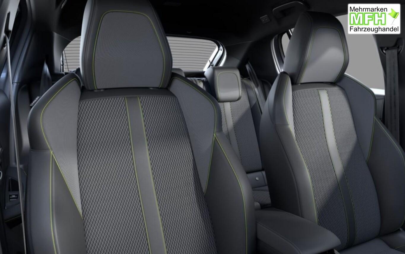 Sicht & Navigations-Paket (Induktionsladeschale für Smartphone / Multifunktionsanzeige mit HD Touchscreen-Farbdisplay 10 Zoll / Navigationssystem i-Connect Advanced / USB-Anschlüsse (Typ C und Typ A) / USB-Schnittstelle / Rückfahrkamera mit 360° Umgebungsansicht / Peugeot Connect-Box / SOS-Taste (Notruf für Lokalisierung Fahrzeug) / Fahrassistenz-System: Totwinkel-Assistent (SAM)), Panoramadach (Glas), Drive-Assist-Paket (Fahrassistenz-System: Aktiver Notbrems-Assistent (Active Safety Brake Plus) / Adaptive Geschwindigkeitsregelanlage (ACC) / Fahrassistenz-System: Spurhalteassistent (LPA)), 6 Lautsprecher, Ambientebeleuchtung (mehrfarbig), Freisprecheinrichtung Bluetooth, Fussraumbeleuchtung LED, Gepäckraumbeleuchtung, Kindersicherung manuell, Kombiinstrument digital, Kopf-Airbag-System vorn, Lenkrad mit Schaltfunktion, Leseleuchten LED vorn, Smartphone-Schnittstelle (Apple CarPlay & Android Auto), Sommerreifen 205/45 R17, Steckdose (12V-Anschluss), Fensterheber elektrisch hinten, sequentiell, mit Einklemmschutz (Fensterheber elektrisch vorn / Fensterheber elektrisch vorn links), Fensterrahmen / Zierleisten schwarz glänzend (Fensterzierleisten schwarz glänzend), Radioempfang digital (DAB+) (Radioempfang digital), Sonnenblenden mit Spiegel (beleuchtet) (Sonnenblenden mit Spiegel), Sitzbezug / Polsterung: Stoff/Kunstleder (Innenausstattung: Ziernähte farbig), Zentralverriegelung mit Fernbedienung (Fernbedienung für Zentralverriegelung), Außenspiegel elektr. verstell- und heizbar, beide (Außenspiegel elektr. verstell- und heizbar, links / Außenspiegel elektr. verstell- und heizbar, rechts), Scheinwerfer Full-LED (Leuchtweitenregelung), Außenspiegel mit Abdeckkappen schwarz, Elektr. Bremskraftverteilung, Frontscheibe geräuschdämmend, Innenraumfilter: Staub- und Pollenfilter, Innenspiegel mit Abblendautomatik, Karosserie: 5-türig, Kartentasche an Vordersitze, LM-Felgen 6,5x17 (Yanaka, zweifarbig), Mild-Hybrid 107 kW (Motor 1,2 Ltr. - 100 kW), Otto-Partikelfilter (GPF), Parkbremse elektrisch, Pedale Aluminium, Pyrotechnischer Gurtstraffer, Sitz vorn links höhenverstellbar, Sitz vorn rechts höhenverstellbar, Türgriffe außen Wagenfarbe, Warnanlage für Sicherheitsgurte, Anti-Blockier-System (ABS), Antischlupfregelung (ASR), Elektron. Stabilitäts-Programm (ESP, Bosch), Getriebe Automatik - Doppelkupplungsgetriebe (6-Stufen, Hybrid), Klimaautomatik, Airbag Beifahrerseite abschaltbar, Airbag Fahrer-/Beifahrerseite, Isofix-Aufnahmen für Kindersitz, Kopf-Airbag-System hinten, Mittelarmlehne vorn, Seitenairbag vorn, Seitenscheiben hinten und Heckscheibe dunkel getönt, Zentralverriegelung / Startanlage Keyless System, Zentralverriegelung inkl. Türverriegelung automatisch, Bordcomputer, Fahrmodusschalter, Fahrassistenz-System: Berganfahrhilfe, Fahrassistenz-System: Verkehrszeichenerkennung, Lenkrad (Leder), Lenkrad mit Multifunktion, Servolenkung elektrisch, Außenspiegel elektr. anklappbar, Einschaltautomatik für Fahrlicht, Fahrassistenz-System: Fernlichtassistent, Scheibenwischer mit Regensensor, Tagfahrlicht LED, Einparkhilfe vorn und hinten, Fahrassistenz-System: aktiver Spurassistent (Lenkunterstützung), Fahrassistenz-System: Müdigkeitserkennungs-Sensor, Reifendruck-Kontrollsystem