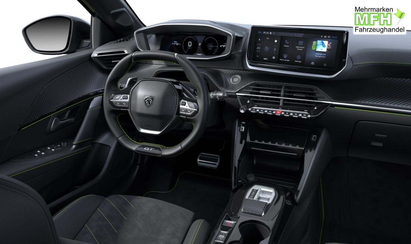 Alcantara / Kunstleder Paket (Innenausstattung: Ziernähte farbig / Sitz vorn links mit Massagefunktion / Sitzbezug / Polsterung: Alcantara / Kunstleder / Sitz vorn links elektr. verstellbar / Sitzheizung vorn), Drive-Assist-Paket Plus (Fahrassistenz-System: Aktiver Notbrems-Assistent (Active Safety Brake Plus) / Adaptive Geschwindigkeitsregelanlage (ACC) / Fahrassistenz-System: aktiver Spurpositionierungsassistent), 12V-Steckdose, 6 Lautsprecher, Bluetooth-Freisprechanlage, Fußraumbeleuchtung LED, Kombiinstrument digital, Kopfairbag vorn und hinten, Lendenwirbelstütze Sitz vorn elektr. Verstellbar, Lenkrad (Lenksäule) höhen- und tiefenverstellbar, LM-Felgen 17 Zoll "Yanaka", Multifunktionsanzeige mit HD Touchscreen-Farbdisplay 10 Zoll, Navigation in Verbindung mit dem Smartphone (über Apple Carplay / Android Auto /...), Peugeot Connect-Box inkl. Notrufsystem, Reifen 205/45 R17, Schadstoffarm nach Abgasnorm Euro 6e (EU6 EA), USB-Schnittstelle, Fensterheber elektrisch hinten, sequentiell, mit Einklemmschutz (Fensterheber elektrisch vorn / Fensterheber elektrisch vorn links), Fensterrahmen / Zierleisten schwarz glänzend (Fensterzierleisten schwarz glänzend), Radioempfang digital (DAB+) (Radioempfang digital), Sonnenblenden mit Spiegel (beleuchtet) (Sonnenblenden mit Spiegel), Außenspiegel elektr. verstell- und heizbar, beide (Außenspiegel elektr. verstell- und heizbar, links / Außenspiegel elektr. verstell- und heizbar, rechts), Scheinwerfer Full-LED (Leuchtweitenregelung), Ambiente-Beleuchtung, Außenspiegel mit Abdeckkappen schwarz, Dachhimmel schwarz, Elektr. Bremskraftverteilung, Heckscheibe heizbar, Innenspiegel mit Abblendautomatik, Karosserie: 5-türig, Kartentasche an Vordersitze, Mild-Hybrid 107 kW (Motor 1,2 Ltr. - 100 kW), Mobile Online Dienste Mirror Screen, Otto-Partikelfilter (GPF), Parkbremse elektrisch, Pedale Aluminium, Sitz vorn links höhenverstellbar, Sitz vorn rechts höhenverstellbar, Warnanlage für Sicherheitsgurte, Anti-Blockier-System (ABS), Antischlupfregelung (ASR), Elektron. Stabilitäts-Programm (ESP, Bosch), Getriebe Automatik - Doppelkupplungsgetriebe (6-Stufen, Hybrid), Klimaautomatik, Airbag Fahrer-/Beifahrerseite, Isofix-Aufnahmen für Kindersitz, Mittelarmlehne vorn, Rücksitzbank klappbar 1/3-2/3, Seitenairbag vorn, Seitenscheiben hinten und Heckscheibe dunkel getönt, Zentralverriegelung / Startanlage Keyless System, Fahrmodusschalter, Fahrassistenz-System: Berganfahrhilfe, Fahrassistenz-System: Verkehrszeichenerkennung, Rückfahrkamera mit 180° Umgebungsansicht, Lenkrad (Leder), Lenkrad mit Multifunktion, Servolenkung elektrisch, Außenspiegel elektr. anklappbar, Einschaltautomatik für Fahrlicht, Fahrassistenz-System: Fernlichtassistent, Scheibenwischer mit Regensensor, Tagfahrlicht LED, Einparkhilfe vorn und hinten, Fahrassistenz-System: aktiver Spurassistent (Lenkunterstützung), Fahrassistenz-System: Müdigkeitserkennungs-Sensor, Reifendruck-Kontrollsystem