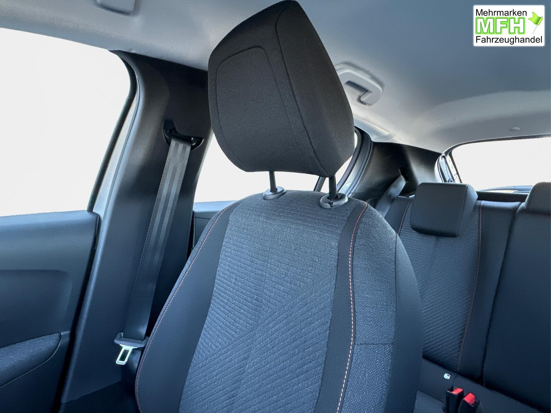 Innenausstattung Stoffposterung in RENZO schwarz mit orangenen Nähten