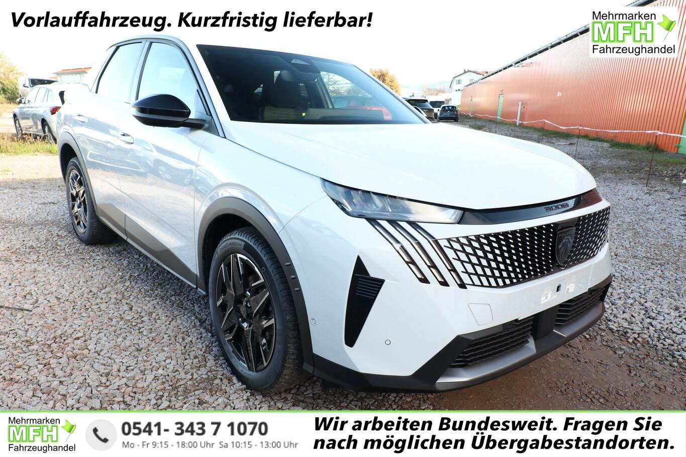 Drive-Assist-Paket (Lenkrad heizbar / Fahrassistenz-System: Autom. Distanzregelung (ACC inkl. Stop&Go-Funktion) / Rückfahrkamera mit 360° Umgebungsansicht / Fahrassistenz-System: Automatische Fahrlichtschaltung inkl. Fernlichtassistent / Fahrassistenz-System: Totwinkel-Assistent (SAM) / Einparkhilfe hinten / Einparkhilfe vorn und hinten / Fahrassistenz-System: Querverkehrs-Assistent Heck (Rear Cross Traffic Alert, RCTA) / Alarmanlage und Safesicherung), Panorama Navigations-Paket (Induktionsladeschale für Smartphone / Radioempfang digital (DAB+) / Freisprecheinrichtung Bluetooth / Navigationssystem i-Connect Advanced / USB-Anschluss (Typ C, 2-fach) / USB-Ladeanschlüsse (2) für 2.Sitzreihe / Audiobedienung am Lenkrad), Winter-Paket (Gepäckraum-Abtrennung (Netz) / Grip-Control / LM-Felgen 8x19 (Lulea, zweifarbig) / Frontscheibe heizbar / Fahrassistenz-System: Bergabfahrhilfe), 21 Zoll HD-Panorama I-Cockpit-Display, 6 Lautsprecher, 9,7 Zoll anpassbares virtuelles i-Toggle-Display, Allwetterbereifung, Beifahrersitz verstellbar (6-fach), Elektrische Fensterheber vorne und hinten mit Einklemmschutz, Fahrersitz AGR mit pneumatischer Lendenwirbelstütze, Fußraumbeleuchtung LED, Kabellose Smartphone Schnittstelle (Apple CarPlay & Android Auto), LED Leseleuchten vorn und hinten, Lenkrad (Leder) mit Multifunktion, Reifen 225/55 R19, Reifenreparaturkit, Sitzbezug / Polsterung: Stoff/Kunstleder (Innenausstattung: Ziernähte farbig), Außenspiegel elektr. anklappbar (Außenspiegel anklappbar), Licht- und Regensensor (Scheibenwischer mit Regensensor), Anhängerkupplung Vorbereitung, Außenspiegel und Spiegelfuss in Perla-Nera-Schwarz, Dachhimmel schwarz, Elektr. Bremskraftverteilung, Fahrassistenz-System: Multikollisionsbremse (Multi Collision Brake), Gepäckraumboden verschiebbar, variabel, Getränkehalter vorn, Heckscheibe heizbar, Innenspiegel mit Abblendautomatik, Karosserie: 5-türig, Mild-Hybrid 107 kW (Motor 1,2 Ltr. - 100 kW), Otto-Partikelfilter (GPF), Parkbremse elektrisch, Radstand Standard, Anti-Blockier-System (ABS), Fahrassistenz-System: Aktiver Notbrems-Assistent (Active Safety Brake Plus), Antischlupfregelung (ASR), Antriebsart: Frontantrieb, Elektron. Stabilitäts-Programm (ESP, Bosch), Getriebe Automatik - Doppelkupplungsgetriebe (6-Stufen, Hybrid), Klimaautomatik, getrennt regelbar Fahrer-/Beifahrerseite, Airbag Beifahrerseite abschaltbar, Airbag Fahrer-/Beifahrerseite, Isofix-Aufnahmen für Kindersitz, Kopf-Airbag-System, Kopf-Airbag-System hinten, Mittelarmlehne vorn, Seitenairbag hinten, Seitenairbag vorn, Seitenscheiben hinten und Heckscheibe getönt, Sitzheizung vorn, Zentralverriegelung / Startanlage Keyless System, Fahrassistenz-System: Berganfahrhilfe, Fahrassistenz-System: Verkehrszeichenerkennung, Geschwindigkeits-Regelanlage (Tempomat) inkl. Geschwindigkeits-Begrenzeranlage, Peugeot Connect-Box / SOS-Taste (Notruf für Lokalisierung Fahrzeug), Servolenkung elektrisch, Außenspiegel elektr. verstell- und heizbar, beide, Einschaltautomatik für Fahrlicht, Heckleuchten Voll-LED, Scheinwerfer Eco-LED, Tagfahrlicht LED, Fahrassistenz-System: aktiver Spurassistent (Lenkunterstützung), Fahrassistenz-System: Müdigkeitserkennungs-Sensor, Reifendruck-Kontrollsystem