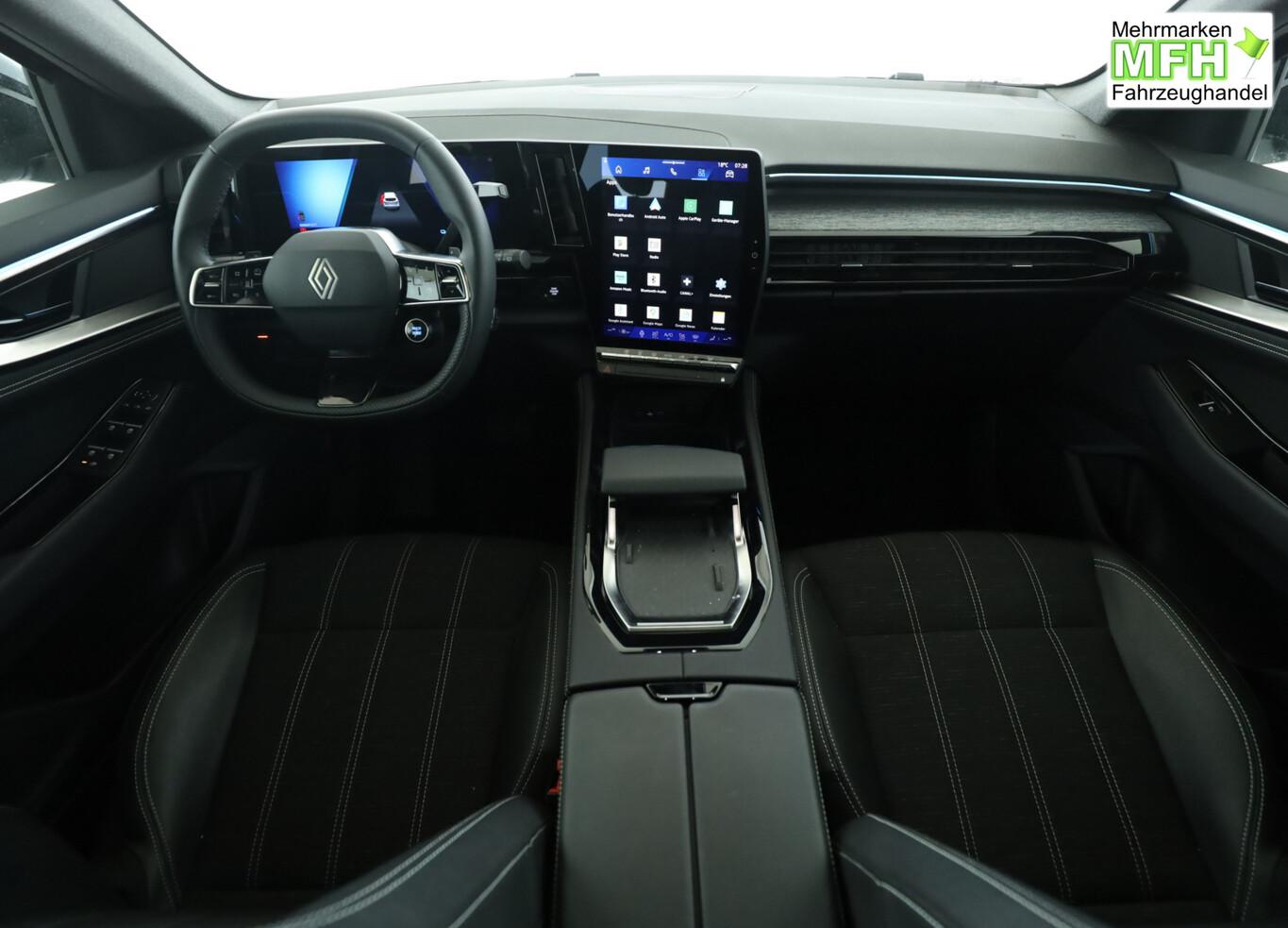 Look-Paket (Dachreling verchromt / Panoramadach fest (Glas)), Winter-Paket Premium (Lenkrad heizbar / Sitz vorn links mit Massagefunktion / Sitz vorn rechts verstellbar (6-fach) / Sitz vorn links elektr. verstellbar (6-fach) / Sitzheizung vorn / Frontscheibe heizbar), City-Paket Techno (Kamerasystem Around View 360° / Außenspiegel elektr. verstell-, heiz- und anklappbar, mit Memory), Heckklappenbetätigung elektrisch, Safety-Paket (Fahrassistenz-System: Ausstiegswarnung / Fahrassistenz-System: Totwinkel-Assistent mit aktivem Lenkeingriff / Fahrassistenz-System: Warnsystem Totwinkel (Blind Spot Warning, BSW) / Fahrassistenz-System: Querverkehrs-Assistent), Adaptive Geschwindigkeitsregelanlage (ACC), Dachfarbe schwarz, Einparkhilfe vorn, hinten und seitlich, Fahrassistenz-System: Intelligenter Geschwindigkeitsbegrenzer (ISA), Infotainment-System: OpenR link inkl. 12" Touchscreen, Navigationssystem, 6 Lautsprecher, Leseleuchten vorn und hinten, LM-Felgen 19", Reifen 205/55 R19, Reifendruck-Kontrollsystem, Vorbereitung Anhängerkupplung, Vorbereitung Diebstahl-Warnanlage, Elektr. Bremskraftverteilung, Geräuschsimulator (Außensound), Heckscheibe heizbar, Hybrid 147 kW E-Tech (Motor 1,2 Ltr. - 96 kW), Induktionsladeschale für Smartphone, Innenspiegel mit Abblendautomatik, Ionisator zur Luftreinigung, Karosserie: 5-türig, Kombiinstrument digital (12,3 Zoll), Kopfstützen hinten, Lenksäule (Lenkrad) höhenverstellbar, Lenksäule (Lenkrad) längsverstellbar, Mittelkonsole mit Armlehne und Staufach, Parkbremse elektrisch mit Auto-Hold-Funktion, Radstand 2667 mm, Schaltpunktanzeige, Sonnenblenden mit Spiegel (beleuchtet), Warnanlage für Sicherheitsgurte, Anti-Blockier-System (ABS), Fahrassistenz-System: Aktiver Notbrems-Assistent mit Fußgängererkennung, Antriebsart: Frontantrieb, Elektron. Stabilitäts-Programm (ESP), Getriebe Automatik - Multi-Mode (15-Stufen), Klimaautomatik 2-Zonen mit autom. Umluft-Control, Airbag Beifahrerseite, Airbag Beifahrerseite abschaltbar, Airbag Fahrerseite, Fensterheber elektrisch vorn + hinten, Isofix-Aufnahmen für Kindersitz, Keyless Go, Kopf-Airbag-System vorn, Rücksitzbank geteilt/klappbar (1/3-2/3), Seitenairbag vorn, Seitenairbag vorn mitte (Center-Airbag), Sitzbezug / Polsterung: Stoff/Kunstleder, Anthrazit-Schwarz, Verglasung hinten abgedunkelt (Privacy Glass), Zentralverriegelung mit Fernbedienung, Eco Mode (Fahrmodusschalter), Fahrassistenz-System: Multi-Sense (Fahrmodusschalter), Fahrassistenz-System: Abstandswarner, Fahrassistenz-System: Berganfahr-Assistent (HSA), Fahrassistenz-System: Verkehrszeichenerkennung, Fahrassistenz-System: Sicherheitssystem mit automatischem Notruf (ERA GLONASS / eCall), Fahrassistenz-System: Fernlichtassistent, Heckleuchten LED, Licht- und Regensensor, Scheinwerfer Full-LED, mit adaptivem Kurvenlicht, Schlechtwetter-Licht, LED-Signatur (Pure Vision), Tagfahrlicht LED, Fahrassistenz-System: Müdigkeitserkennungs-Sensor, Fahrassistenz-System: Spurhalteassistent Aktiv