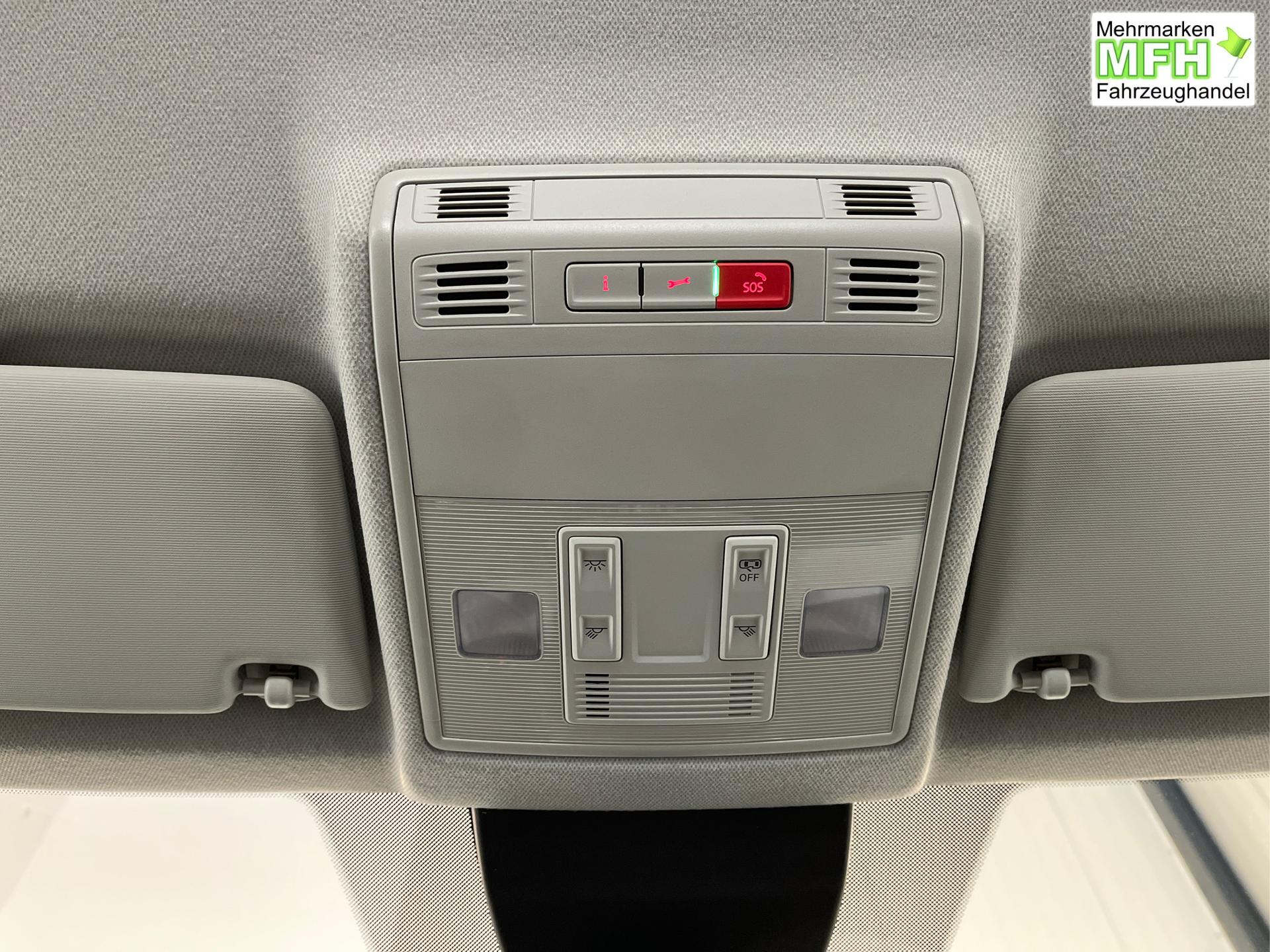 • Winterpaket (Sitzheizung vorn), Klima-Komfort-Paket (Außenspiegel elektrisch anklappbar, Außenspiegel elektrisch einstell- und beheizbar, Vordersitze höhenverstellbar, Klimaautomatik 2-Zonen-Climatronic, Coming/Leaving Home Funktion, Regensensor), Warnsignal bei nicht angelegten Sicherheitsgurten, Freisprecheinrichtung Bluetooth, Handbremshebel in Leder, Schalthebelknauf in Leder, Digitaler Radioempfang DAB, Doppelter Gepäckraumboden, Fensterheber vorn und hinten elektrisch, Wegfahrsperre, ESC, ABS, ASR, Müdigkeitserkennung, Kopfstützen, Reifendruckkontrolle, Dreipunkt-Sicherheitsgurte, Heckscheiben Wisch-Waschanlage, Berganfahrassistent, Reserverad als Notrad, Isofix, Nebelschlussleuchte, Zentralverriegelung mit Funkfernbedienung, Make-up-Spiegel in den Sonnenblenden, Airbag für Fahrer und Beifahrer, Beifahrerairbag-Deaktivierung, Seitenairbag vorn mit Kopfairbag, Rücksitzlehne geteilt umklappbar, Radio "Basic" (8,25 Zoll Farb-Touchscreen, USB-Schnittstelle), Spurhalteassistent, SEAT CONNECT - Sicherheit und Service, Geschwindigkeitsregelanlage, Scheibenwischer-Intervallschaltung, Scheibenbremsen, Servolenkung, LED-Scheinwerfer inkl. Tagfahrlicht, ParkPilot hinten