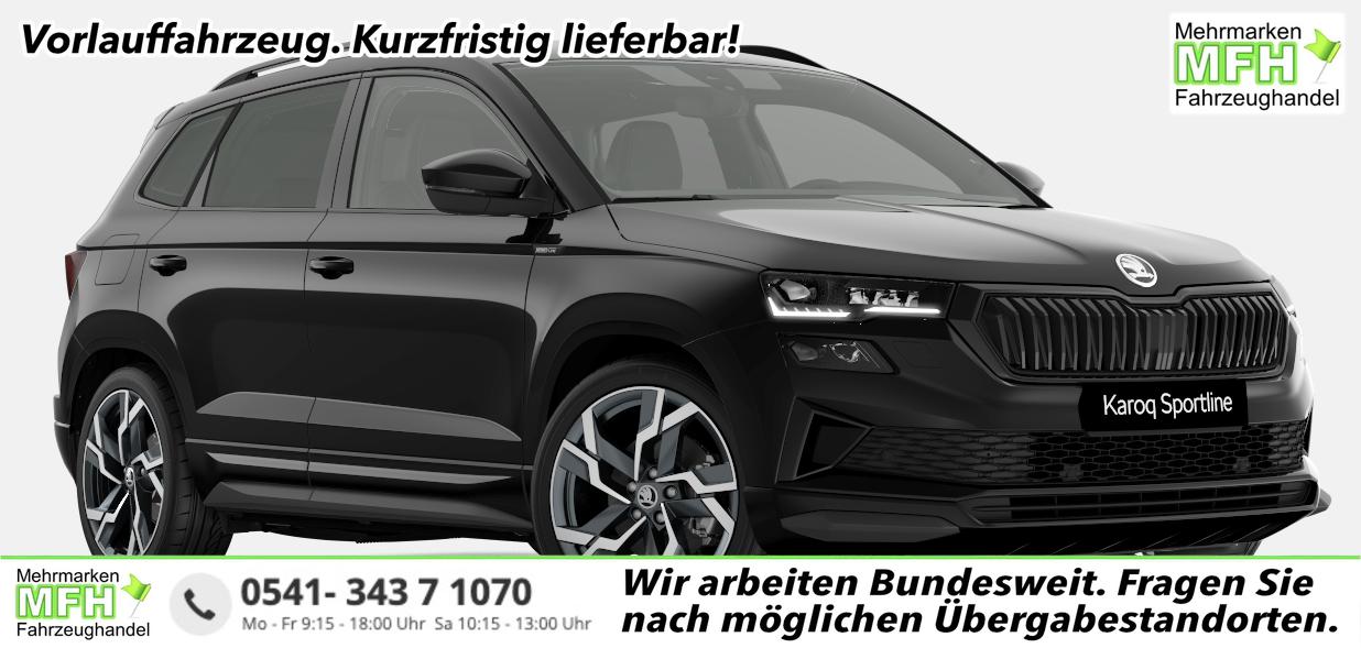 Skoda Karoq Sportline 1.5 TSI 150PS DSG, SCHWARZ-MET, 5JGARANTIE, AHK SCHWENKBAR, 19" ALU SAGITARIUS, BEHEIZTE FRONTSCHEIBE, SITZHEIZUNG, MATRIX-LED, Elektr. Heckklappe, Virtual Cockpit 10", Climatronic, NAVI, ACC, Parksensoren v/h, Rückfahrkamera, Dachreling, PRIVACY-GLAS