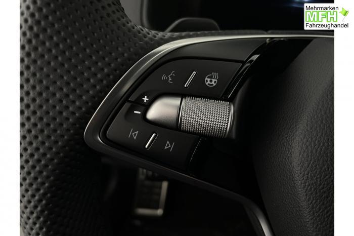 230-V-Steckdose und USB-C Anschluss, Bluetooth-Telefonvorbereitung, DAB-digitaler Radioempfang, Infotainment Navi 8, Phonebox mit induktiver Ladefunktion, Sprachsteuerung, USB-C Anschluss vorne, Wireless SmartLink, Ambientebeleuchtung, Fußraumbeleuchtung vorne/hinten, LED-Leseleuchten vorne/hinten, LED-Matrix Scheinwerfer [8G4] , LED-Tagfahrlicht, Licht- und Regensensor, Scheinwerferreinigungsanlage, Fensterheber elektrisch vorn und hinten, Sunset, 3-Speichen-Sport Multifunktionslenkrad in Leder, beheizbar mit Schaltwippen, Innenspiegel mit automatischer Abblendung, Lenkradheizung, Mittelarmlehne vorn, Textil- Fußmatten, Variabler Ladeboden im Kofferraum [PKP] , 2-Zonen CLIMATRONIC, Licht Paket, Park Paket, Technikpaket 8 Navi Plus, 18 Leichtmetallfelgen PROCYON schwarz, Alarm für KESSY, Fahrer Knieairbag, Fahrerairbag, Fahrerairbag und Beifahrerairbag, Isofix-Vorbereitung für die Rücksitze, Notruf (eCall), Seitenairbags vorne und Kopfairbags vorne/hinten, Beheizte Vordersitze, Design Interieur Sportline mit Thermoflux-Stoff in Schwarz, Fahrersitz mit Lendenwirbelstütze, Lendenwirbelstütze in den Vordersitzen [7P4] , Rücksitzlehne geteilt umklappbar, Sportsitze vorn, Anschlussgarantie 3 Jahre / 100.000km, 12-V-Steckdose, Adaptiver Abstandsassistent (ACC) bis 210 km/h [8T8] , Berganfahrassistent, Elektronische Parkbremse inkl. Auto Hold Funktion, Fahrmodusauswahl, Front Assistant - Warnsystem und Notbremsfunktion, Heckklappe mit elektr. Komfortöffnung [4E6], KESSY-Schlüsselloses Zugangs- und Start-Stopp-System, Müdigkeitserkennung, Parksensoren vorne/hinten, Reifendruckkontrolle, Rückfahrkamera, Spurhalteassistent, Verkehrszeichenerkennung, Virtuelles Cockpit, Zentralverriegelung mit Fernbedienung, Anhängekupplung schwenkbar mit Adapter, Außenspiegel elektrisch beheizbar, Außenspiegel elektrisch einstell- und beheizbar und anklappbar, Außenspiegel elektrisch einstellbar, Außenspiegel in Schwarz, Dachreling schwarz, EU-Fahrzeug mit Tageszulassung