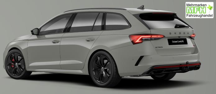 Innenausstattung Design Selections / Interieur RS: Sportsitze RS Stoff mit roten Ziernähten, LED-Ambientebeleuchtung: Armaturentafel, Vordertüren, Fußraum vorne/hinten, Einstiegsbeleuchtung vorne mit Skoda Schriftzug, Rücksitzlehnen mit Fernentriegelung, Kopfstützen vorne integriert, Armaturentafel-Mittelteil mit Neopren schwarz/rot, Dekor RS, Make-up-Spiegel mit LED-Beleuchtung (Fahrer- und Beifahrer-Sonnenblende), Luftausströmer mit schwarzem Rahmen, Dachhimmel schwarz, Pedale im Alu-Design