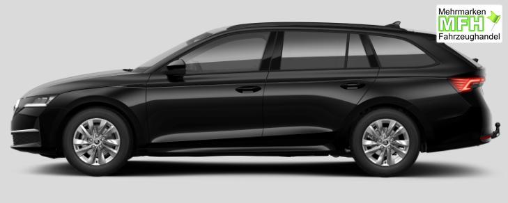 Innenausstattung Design Selections / Interieur Lodge: Komfortsitze in Stoff/Kunstleder, LED-Ambientebeleuchtung: Armaturentafel, Vordertüren, Fußraum vorne, Einstiegsbeleuchtung vorne mit Skoda Schriftzug, Rücksitzlehnen mit Fernentriegelung, Armaturentafel-Mittelteil Lodge schwarz mit doppelter Ziernaht, Dekor Lodge, Make-up-Spiegel mit LED-Beleuchtung: Fahrer- und Beifahrer-Sonnenblende, Luftausströmer mit Chromrahmen und schwarzer Dekorleiste, Dachhimmel grau