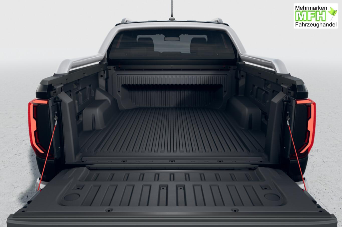 Laderaumjalousie (Roll Cover System elektrisch, Pick-Up), LM-Felgen 8,5x21 (Varberg) (Reserverad in Fahrbereifung (Leichtmetall)), Dachreling silber, Unterfahrschutz Motor / Verteilergetriebe aus Stahl, für Tank aus Kunststoff, Aufsatzbügel Styling Bar (verchromt), Reifen 275/45 R21, Laderaumauskleidung Kunststoff (Steckdose 12V im Koffer-/Laderaum), Vorbereitung für VW Connect (Vorbereitung Onlinedienste), 2.Sitzreihe Sitzbank (3 Sitzplätze), Ambiente-Beleuchtung weiß, Anhängersteckdose 13-polig, Antennen-Diversity, Armaturentafel Kunstleder, Außenspiegel und Türgriffe außen verchromt, Ausstattung Aventura, Dachhimmel Stoff, schwarz, Diebstahlsicherung für Räder (Felgenschlösser), Digital Cockpit (Farbdisplay 12,3 Zoll), Fahrassistenz-System: Multikollisionsbremse (Multi Collision Brake), Federung Komfort, Funkschlüssel / Handsender (2), Haltegriff A-Säule, Beifahrerseite, Handschuhfach abschließbar und beleuchtet, Heckklappe abschließbar über Zentralverriegelung (Pick-Up), Heckklappengriff Wagenfarbe (Pick-Up), Heckscheibe heizbar, Induktionsladeschale für Smartphone (Wireless Charging), Infotainment-System mit Touchscreen-Farbdisplay 12 Zoll für Navigation, Innenraumfilter: Staub- und Pollenfilter, Innenspiegel mit Abblendautomatik, Karosserie/Aufbau: Doppelkabine (Double-Cab), Karosserie/Aufbau: Pick-Up, Kopfstützen hinten (3-fach), Kühlergrill schwarz mit Chromleiste, Ladeflächenbeleuchtung LED (außen), Leseleuchten vorn und Brillenfach, Leuchtweitenregelung automatisch, Mittelarmlehne hinten, Motor 3,0 Ltr. - 177 kW V6 TDI, Parkbremse elektrisch, Radioempfang digital (DAB+), Radstand Standard, Schalt-/Wählhebelgriff Leder, Schmutzfänger vorn und hinten, Sitz vorn links mit Kartentasche, Sonnenblenden mit Spiegel (beleuchtet), Sound-System Harman-Kardon (8 Lautsprecher, Subwoofer, 640 Watt), Steckdose 120V / 230V in Mittelkonsole hinten und Ladefläche, Stoßfänger hinten schwarz unlackiert mit Chrom-Applikationen, Stoßfänger vorn Wagenfarbe (X-Design), Trittbretter seitlich mit Chromeinlage, Türgriffe innen verchromt, Umfeldbeleuchtung über Infotainment-System einstellbar, Vorbereitung Online Diebstahl-Warnanlage, Warnanlage für Sicherheitsgurte vorn und hinten, Navigationsfunktion, USB-Ladeanschluß (1) am Innenspiegel, Anhängerkupplung (Kugelkopf abnehmbar), Anti-Blockier-System (ABS), Antriebsart: Allradantrieb, Differentialsperre (Hinterachse), Elektron. Stabilitäts-Programm (ESP) mit Bremskraftverstärker elektro-mechanisch, Getriebe Automatik - (10-Stufen), Klimaanlage Climatronic 2-Zonen, Airbag und Knieairbag Fahrer-/Beifahrerseite, Beifahrerairbag abschaltbar, Kindersitzerkennung, Fensterheber elektrisch vorn und hinten, Isofix-Aufnahmen für Kindersitz an Rücksitze (inkl. i-Size-Kindersitze), Schließ-/Startsystem Keyless Access mit Safesicherung, Seitenairbag vorn mit Center-Airbag, Kopf-Airbag-Einheit vorn und hinten, Seitenscheiben hinten und Heckscheibe abgedunkelt, Sitzbezug / Polsterung: Leder Savona, Sitze vorn elektr. verstellbar (10-Wege), Sitzheizung vorn, Verzurrösen auf Ladefläche / Laderaumboden, Zentralverriegelung, Fahrassistenz-System: Fahrprofilauswahl, Frontscheibe Dämmglas, Fahrassistenz-System: Autom. Distanzregelung (ACC inkl. Stop&Go-Funktion), Fahrassistenz-System: Verkehrszeichenerkennung, Rückfahrkamera (Rear View), Notrufsystem, Lenkrad (Leder) mit Multifunktion, Außenspiegel elektr. verstell-, heiz- und anklappbar und Umfeldleuchte, Fahrassistenz-System: Dynamische Fernlichtregulierung (Dynamic Light Assist), Fahrassistenz-System: Fernlichtregulierung (Light Assist), Heckleuchten LED, Matrix-LED-Scheinwerfer (IQ.Light), Nebelscheinwerfer LED, Scheibenwischer mit Regensensor, Einparkhilfe vorn und hinten inkl. Auspark-Assistent, Fahrassistenz-System: Notbremsassistent Front assist mit Fußgänger- und Fahrraderkennung, Fahrassistenz-System: Spurhalteassistent (Lane Assist) inkl. Side Assist, Reifendruck-Kontrollsystem, Rußpartikelfilter