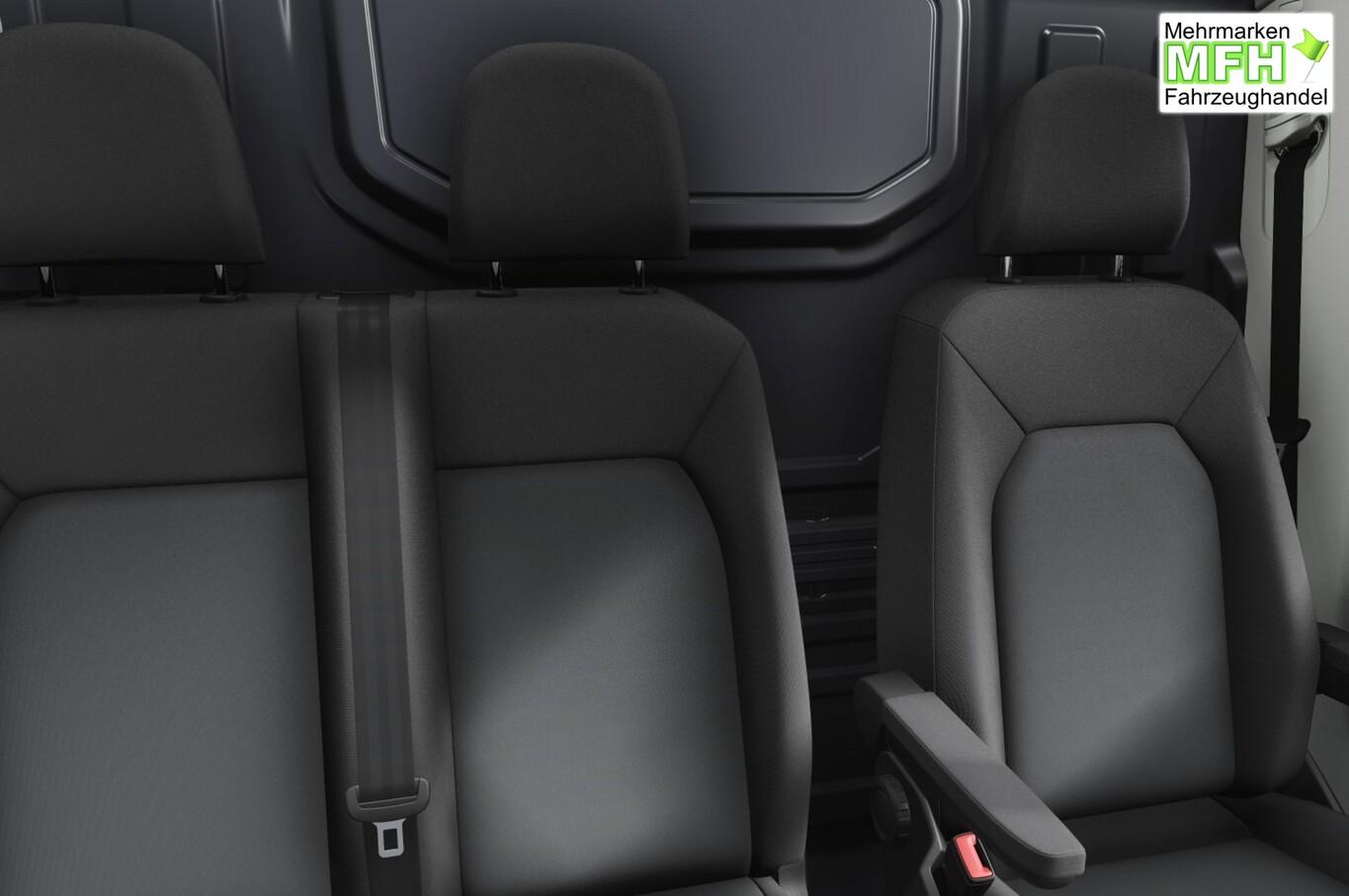 Klimaanlage Climatic (Fahrerhaus), Anhängerkupplung: Kugelkopf fest (Anhänger-Stabilisierungs-Programm), Geschwindigkeits-Regelanlage (Tempomat) inkl. Geschwindigkeits-Begrenzeranlage, Sitze im Fahrerhaus: Beifahrerdoppelsitz mit Stau-/Ablagefach, Sitze im Fahrerhaus: Fahrersitz Komfort Plus, Außenspiegel elektr. verstell-, heiz- und anklappbar, Nebelscheinwerfer mit integriertem Abbiegelicht, Reserverad in Fahrbereifung inkl. Bordwerkzeug und Wagenheber (Bordwerkzeug und Wagenheber), Steckdosen (12V-Anschluß) im Fahrerhaus (4 Stück), Steckdosen (12V-Anschluß) im Lade-/Fahrgastraum (2 Stück), App-Connect Wired und Wireless, Audiosystem Composition inkl. 10"-Touchscreen, 4 Lautsprecher, Handschuhfach, Induktive Ladefunktion für Mobiltelefon, Kombiinstrument digital (Digital Cockpit Pro), Navigation in Verbindung mit dem Smartphone (über Apple Carplay / Android Auto /...), Schlüsselloses Startsystem Keyless-Go, Sommerreifen 235/65 R16, Stahlfelgen 6,5x16, Zweiflügelige Hecktürscharniere mit erweitertem Öffnungswinkel (max. 270°), Ablage-Paket 2 (Ablagen: 2 DIN-Schacht vorn unter Dachhimmel / Innenleuchten im Fahrerhaus: Leseleuchte vorn), Außenspiegel konvex, links, Außenspiegel konvex, rechts, Bodenbelag im Fahrerhaus: Gummi, Digital Cockpit Pro (Instrumentenanzeige Digital), Doppelscheinwerfer, Frontscheibe Verbundglas, Funkschlüssel (2) klappbar, Handschuhfach mit Klappe, Heckflügeltüren ohne Verglasung, Infotainment mit Touchscreen-Farbdisplay 26 cm (10,4"), Innenleuchten im Lade-/FG-Raum: LED, Karosserie/Aufbau: Kasten Hochraum Standard, Karosserievariante: Hochdach in Wagenfarbe, Keyless-Start ohne Safesicherung, Kraftstofftank: 75 Ltr., Lautsprecher (4), Motor 2,0 Ltr. - 103 kW TDI, Nichtraucher-Paket, Radioempfang digital (DAB+), Radstand 3640 mm, Scheibenwischer mit Intervallschaltung, regulierbar, Schiebetür Lade-/Fahrgastraum rechts, Sitzbezug / Polsterung: Stoff, Stoßfänger vorn in Grau, Vorbereitung für Alkohol-Wegfahrsperre (Alcolock), Warnanlage für Sicherheitsgurte (Fahrer-/Beifahrerseite), Zul. Gesamtgewicht 3,50 t, Mobiltelefon Schnittstelle Bluetooth, Mobiltelefon Schnittstelle Bluetooth mit kabelloser Ladefunktion, Multimedia-Schnittstelle 2 USB-C (Mittelkonsole) mit erhöhter Ladeleistung, 2 USB-C Ladeanschlüsse (Mitte, Frontscheibe), Multimedia-Schnittstelle 2 x USB (Typ C) vorn, Anti-Blockier-System (ABS), Antriebsart: Frontantrieb, Elektron. Stabilitäts-Programm (ESP), Wegfahrsperre (elektronisch), Getriebe 6-Gang, Airbag Fahrer-/Beifahrerseite, Beifahrerairbag abschaltbar, Laderaumtrennwand hoch ohne Fenster, Verzurrösen Laderaum, Zentralverriegelung mit Fernbedienung und Innenbetätigung, Wärmeschutzverglasung, Fahrassistenz-System: Berganfahr-Assistent, Fahrassistenz-System: Verkehrszeichenerkennung, Notrufsystem, Lenkrad mit Multifunktion, Servolenkung elektro-mechanisch, Automatische Fahrlichtschaltung, Lichtassistent (Coming Home, Leaving Home), Regensensor, Tagfahrlicht, Tagfahrlicht und Assistenzfahrlicht, Fahrassistenz-System: Einparkhilfe vorn und hinten, Fahrassistenz-System: Ablenkungs- und Müdigkeitserkennung, Fahrassistenz-System: Müdigkeitserkennungs-Sensor, Fahrassistenz-System: Notbrems-Assistent (Front Assist) inkl. Fußgänger- und Fahrraderkennung, Fahrassistenz-System: Seitenwind-Assistent, Fahrassistenz-System: Spurhalteassistent (Lane Assist), Reifendruck-Kontrollsystem, Rußpartikelfilter, Start/Stop-Anlage Motor