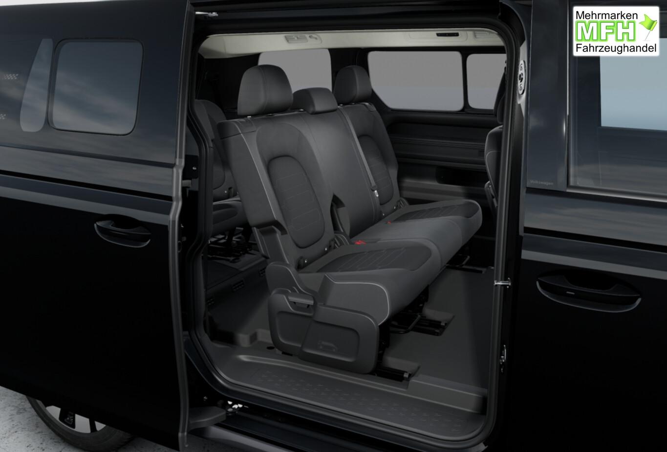 Ausstattungs-Paket: Easy Open & Close Plus (Fenster im Lade-/FG-Raum: - schiebbar, vorn links / Fenster im Lade-/FG-Raum: - schiebbar, vorn rechts / Schließ-/Startsystem Keyless Advanced mit Safesicherung / Umfeldleuchte in Heckklappe / Heckklappe elektr. betätigt Easy Open (öffnen + schliessen, sensorgesteuert) / Schiebetür Lade-/Fahrgastraum links elektr. betätigt Easy Open (sensorgesteuert) / Schiebetür Lade-/Fahrgastraum rechts elektr. betätigt Easy Open (sensorgesteuert)), Interieur-Paket Style Plus (Lenkrad schwarz) (Ambiente-Beleuchtung (30 Farben) / Sitzbezug / Polsterung: Stoff Seaqual / Sitze im Fahrerhaus: Fahrer- und Beifahrersitz Komfort / Sitze im Fahrerhaus: Fahrer- und Beifahrersitz mit Armlehnen beidseitig / Sitze vorn mit Massagefunktion / Sitze im Fahrerhaus: Fahrer- und Beifahrersitz elektr. verstellbar mit Memory, Einstiegshilfe links / Sitze im Fahrerhaus: Fahrer- und Beifahrersitz heizbar / Lenkrad heizbar (Leder) mit Multifunktion), Ausstattungs-Paket: Infotainment Plus (Sound-System Harman-Kardon (13 Lautsprecher, Subwoofer, 700 Watt) / Navigationsfunktion Discover Pro / Sprachassistent IDA / Head-up-Display), Ausstattungs-Paket: Komfort-Paket Plus (Außenspiegel schwarz lackiert und Türgriffe außen in Wagenfarbe / Gepäckraum-Abtrennung / Trennnetz / Gepäckraumabdeckung / Rollo / Innenspiegel mit Abblendautomatik / Mittelkonsole vorn variabel (ID.Buzz Box) / Multiflex-Board / Scheibenwaschdüsen beheizt / Multimedia-Schnittstelle 2 x USB (Typ C) vorn, USB-Ladeanschluß (Typ C) 1 x vorn, hinten / Klimaanlage Climatronic 3-Zonen inkl. Fondbedienung / Sitze im Fahrerhaus: Fahrer- und Beifahrersitz heizbar / Lenkrad heizbar (Leder) mit Multifunktion / Regensensor), LM-Felgen vorn/hinten: 8x19 / 9x19 (Tilburg, schwarz glanzgedreht), Fahrassistenz-Paket Plus inkl. Travel Assist und Umgebungsansicht inkl. Rückfahrkamera (Schließ-/Startsystem Keyless Advanced mit Safesicherung / Türgriffschalen außen beleuchtet / Rückfahrkamera mit 360° Umgebungsansicht (Area View) / Lenkrad heizbar (Leder) mit Multifunktion / Fahrassistenz-System: Memoryfunktion für Park Assist / Fahrassistenz-System: Parklenkassistent (Park Assist) inkl. Einparkhilfe vorn und hinten / Fahrassistenz-Paket: Travel Assist, Emergency Assist und Lane Assist / Diebstahl-Warnanlage + Innenraumüberwachung / Abschleppschutz + Back-up-Horn), Ausstattungs-Paket: Design (Leuchtweitenregelung automatisch und Kurvenlicht dynamisch / Lichtleiste zwischen Scheinwerfer / Pedale Edelstahl / Fahrassistenz-System: Dynamische Fernlichtregulierung (Dynamic Light Assist) / Heckleuchten LED, Blinkleuchten dynamisch / Matrix-LED-Scheinwerfer (IQ.Light)), Sitz-Paket: 7-Sitzer (Sitzausstattung: 7-Sitzer / Sitze im Lade-/FG-Raum: 1.Reihe, 3er-Sitzbank, geteilt/klappbar + 2.Reihe, 2 Einzelsitze, herausnehmbar / Zul. Gesamtgewicht 3,34 t / Klimaanlage 2-Zonen mit 2 Zuheizer), Heizungs-/Klimaanlage: Wärmepumpe, Anhängerkupplung klappbar (elektr. Entriegelung), Ladekabel mit Schukostecker (10 A, Mode 2), Ladekabel mit Typ 2-Stecker (32 A, Mode 3), Fahrassistenz-System: Parklenkassistent (Park Assist Pro) inkl. Einparkhilfe in Verbindung mit Onlinedienste, Diebstahl-Warnanlage + Innenraumüberwachung / Abschleppschutz, Elektron. Stabilitäts-Programm (ESP), Garantieverlängerung: 3 Jahre oder 100.000 km, Isofix-Aufnahmen für Kindersitz am Beifahrersitz, Mobiltelefon Schnittstelle mit kabelloser Ladefunktion, Radschrauben mit Diebstahlsicherung, Scheibenwischer mit Intervallschaltung, Sommerreifen hinten 255/50 R19, Sommerreifen vorn 235/55 R19, Akustischer Fußgängerschutz, Außensound (e-sound), Audiosystem Ready 2 Discover (Touchscreen-Farbdisplay 12,9 Zoll), Außenspiegel konvex, links und rechts, Bidirektionales Laden (DC), Bodenbelag: Teppich verstärkt, DC / DC Wandler 3 kW, Elektromotor 210 kW (cont. 89 kW), Fahrassistenz-System: Ausweich-Assistent und Abbiege-Assistent, Funkschlüssel (2), Fußraumbeleuchtung vorn und hinten, Heckklappe mit Verglasung, Heckscheibenwischer mit Intervallschaltung, HV-Batterie 86 kWh netto, Innenausstattung: Bedienelemente, Lenkrad und Einfassung Instrumente schwarz, Innenleuchten im Lade-/FG-Raum: LED (Gepäckraum), Insassen-Schutzsystem proaktiv, Intelligent Speed Assist inkl. Geschwindigkeitsbegrenzer, Karosserie/Aufbau: Bus, Lautsprecher (9), Linkslenker, Mobile Online Dienste App-Connect inkl. App-Connect Wireless (Apple CarPlay, Android Auto), Nichtraucher-Paket, Radioempfang digital (DAB+), Radstand 3239 mm, Radstand lang, Schnellladevorrichtung (CCS-Ladedose), Sonnenblenden mit Spiegel (beleuchtet), Steckdose (12V-Anschluß) im Laderaum, Stoßfänger in Wagenfarbe, Umfeldbeleuchtung seitlich mit Projektionsfunktion, Vorbereitung für Alkohol-Wegfahrsperre (Alcolock), Vorbereitung Onlinedienste We Connect (Plus) oder VW Connect (Plus) und Online-Update-Fähigkeit, Warnanlage für Sicherheitsgurte vorn und hinten, Mobiltelefon Schnittstelle Bluetooth, Anti-Blockier-System (ABS), Antriebsart: Heckantrieb, Getriebe für Elektrofahrzeug, Airbag Fahrer-/Beifahrerseite, Beifahrerairbag abschaltbar, Isofix-Aufnahmen für Kindersitz an Rücksitz, Seitenairbag, Kopfairbag und Center-Airbag vorn, Wärmeschutzverglasung seitlich / hinten, Fahrassistenz-System: Autom. Distanzregelung (ACC inkl. Stop&Go-Funktion), Fahrassistenz-System: Verkehrszeichenerkennung, Multifunktionskamera / Frontkamera, Notrufsystem, Servolenkung elektro-mechanisch, geschwindigkeitsabhängig, Außenspiegel elektr. verstell-, heiz- und anklappbar mit Spiegelabsenkung, Fahrassistenz-System: Ablenkungs- und Müdigkeitserkennung, Fahrassistenz-System: Notbrems-Assistent (Front Assist) inkl. Fußgänger- und Fahrraderkennung, Fahrassistenz-System: Spurhalteassistent (Lane Assist), Fahrassistenz-System: Spurwechselassistent (Side Assist) mit Auspark-Assistent und Ausstiegswarnung, Reifenkontroll-Anzeige