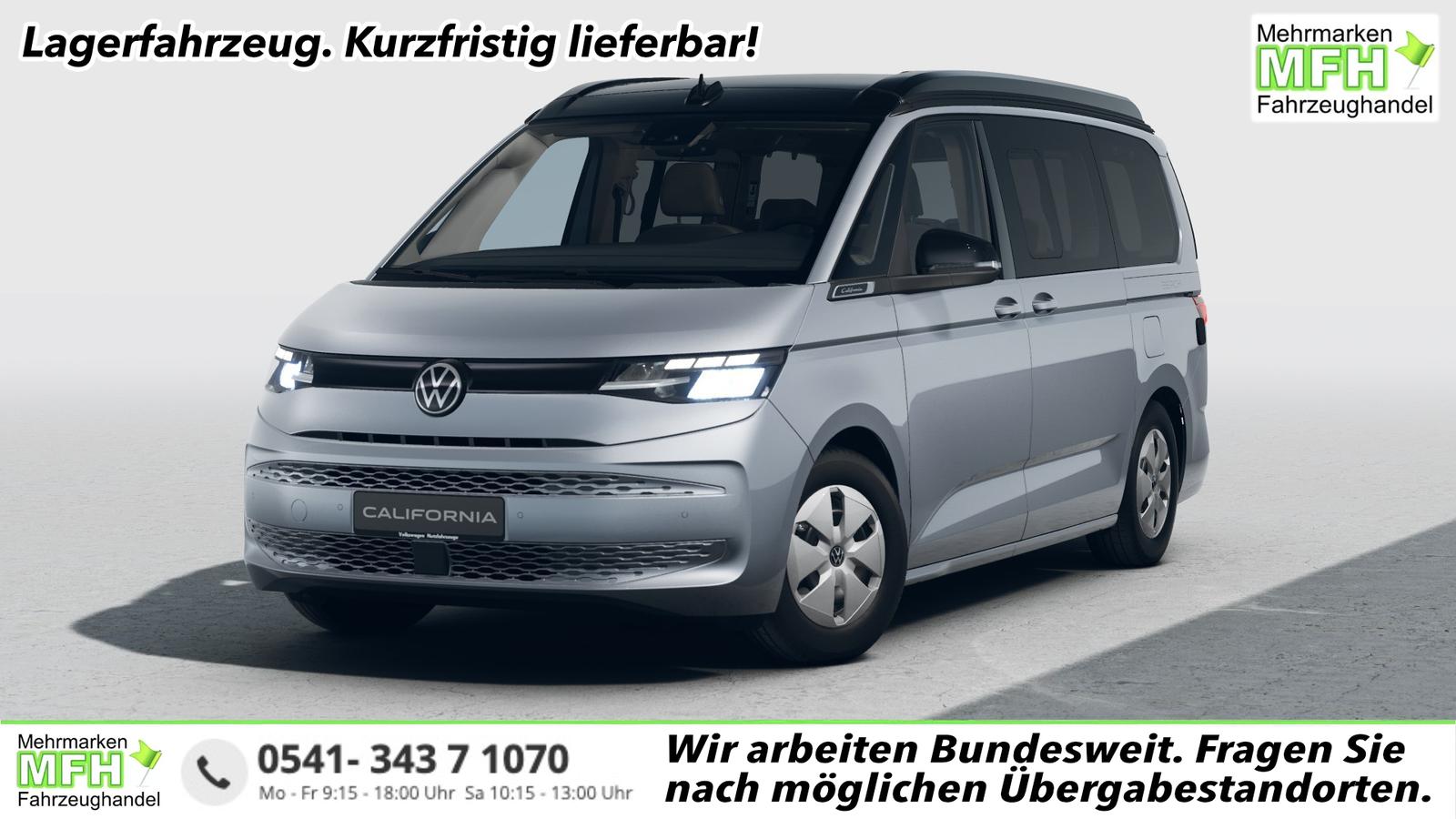 Sonstige: Zulassung als Wohnmobil, Werksanschlussgarantie auf 5 Jahre / max. 100.000 Km. Komfort und Funktion: 230-Volt-Einspeisung mit Ladefunktion für Fahrzeugbatterien, 230-Volt-Steckdose im Innenraum, 230-Volt-Steckdose mit Wechselrichter im Innenraum, Aufstelldach manuell, Faltenbalg grau mit 3 Fenstern und einer Frontöffnung, Faltenbalg in Basalt Grey, Digital Cockpit Pro, Geschwindigkeitsregelanlage elektronisch, Innenbeleuchtung Camper, LED-Hauptscheinwerfer mit LED-Tagfahrlicht, LED-Rückleuchten, Markisenschiene beidseitig in schwarz, Miniküche am Heck mit ausziehbarem einflammigen Gaskocher inkl. Technikbox mit Camper Batterie und 230-Volt-Steckdose, Campingtisch unter Bettverlängerung, 2 Campingstühle in der Heckklappe integriert, Multifunktions-Lederlenkrad mit Schaltwippen, Schlafplätze, 2 Schlafplätze im Aufstelldach oben (1.140 x 2.050 mm), 2 Schlafplätze im Wohnraum unten über gesamte Fahrzeugbreite (1.980 x 1.330 mm), Schubladen im Fahrer- und Fahrgastraum sowie unter den äußeren Sitzen inkl. 2 Abfallbehälter, Sitze, 2. Sitzreihe, 3 Einzelsitze mit Schlafauflage, Sitz Fahrer/Beifahrer drehbar mit Armlehnen an den Vordersitzen, beidseitig, mit elektrischer Lendenwirbelstütze, Sprachsteuerung plus ICC (InCarCommunication), Schiebetür links und rechts, Verdunklungssystem mit Rollos und Gardinen, Zentralverr. ""Keyless Start, Optik: Außenspiegelgehäuse in Schwarz hochglanz, Bodenbelag Kunststoff im Fahrgast-/Laderaum, Dekoreinlagen ""Scale Light Grey"", Fenster ab B-Säule abgedunkelt, 65% lichtabsorbierend, Scheinwerferleiste schwarz, Schiebefenster in der Schiebetür links und rechts, Infotainment: Wireless Mirror Link/App-Connect, Navigation über App Connect möglich (kompatibles Smartphone erforderlich), Radio ""Ready 2 Discover"" mit 25,4 cm (10"") Touch-Farbdisplay, Lautsprecher 8 Stück, Bluetooth Schnittstelle, USB-C-Schnittstelle vorne & hinten, 2 USB vorne, 4 USB im FGSTR, Sicherheit und Fahrerassistenz: Ablenkungs- und Müdigkeitserkennung, Außenspiegel elektrisch einstell-, beheiz- und anklappbar, Einparkhilfe im Front- und Heckbereich, Notbremsassistent ""Front Assist"", mit Fußgänger- und Radfahrererkennung, Spurhalteassistent ""Lane Assist"", Tagfahrlichtschaltung mit Assistenzfahrlicht, Verkehrszeichenerkennung, Räder: Stahl 6,5 J x 16.