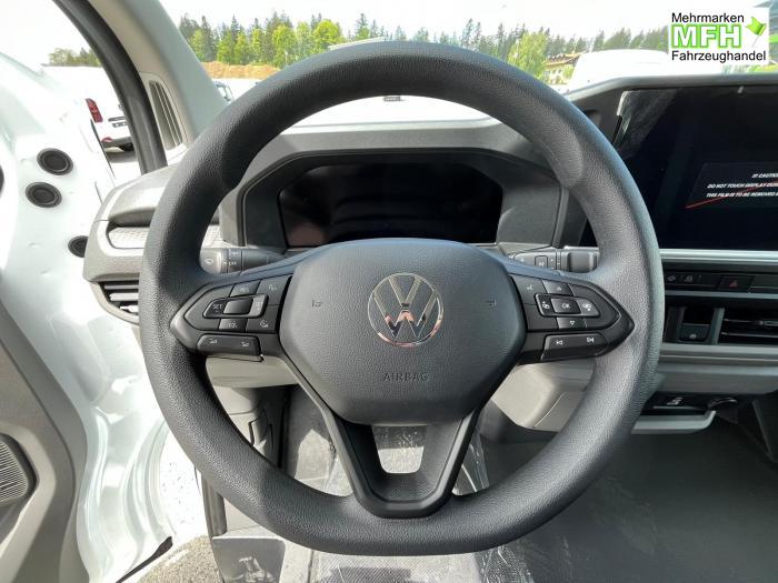 2x USB im Fahrerhaus, 4 Lautsprecher (2 Lautsprecher in der Instrumententafel und 2 Lautsprecher in den Fahrerhaustüren, Mobiltelefon-Schnittstelle, Radio 33 cm (13) Touch-Farbdisplay und Wireless App-Connect (Apple & Android), Fernlichtregulierung Light Assist, LED Frontscheinwerfer inkl. LED Tagfahrlicht und mit Abbiege- und Schlechtwetterlicht, LED-Rückleuchten, Frontscheibe in Verbundsicherheitsglas, wärmedämmend, 6 Verzurrösen zur Ladegutsicherung im Laderaum, Armlehnen für den Fahrersitz, Einstiegleiste Schiebetür Kunststoff, in Schwarz, Gummiboden im Fahrerhaus, Handschuhfach mit Klappe, Multifunktionslenkrad, Seitenverkleidung aus Kunststoff im Laderaum, halbhoch, Trennwand aus Metall, hoch, mit Fenster, oberer Teil der Trennwand auf Fahrerhausseite mit Stoffbezug, Klimaanlage Fahrerhaus (mit man. Regelung), Fahrerassistenzpaket, Fahrerhaus Sitzpaket 8A Einzelsitz in Stoff gestreift mit Beifahrerdoppelsitzbank, 16 Stahlräder, Notrad 155/70 R17 und Wagenheber, Airbags für Fahrer und Beifahrer, mit Beifahrer-Airbag-Deaktivierung, Elektronisches Stabilisierungsprogramm ESP, Notrufsysstem eCall, 2-Wege Lendenwirbelstütze für den Fahrersitz, manuell einstellbar, 6-Wege Fahrersitz, verstellbar, Beifahrerdoppelsitzbank mit Unterladefunktion und Klapptisch, Anschlussgarantie 2 Jahre / 100.000km, AGM-Fahrzeugbatterie 80 Ah, Digitales Cockpit, Einparkhilfe im Heckbereich, Elektrische Klemmleiste 12-Polig, Geschwindigkeitsregelanlage mit intellig. Geschwindigkeitsassistent, Müdigkeitserkennung, Notbremsassistent mit Fußgänger- und Radfahrererkennung mit Ausweichunterstützung & Abbiegeassistent, Spurhalteassistent Lane Assist, Verkehrszeichenerkennung und Falschfahrwarnung, Zentralverriegelung mit schlüssellosem Startsystem Keyless Start ohne Safesicherung, Zulässiges Gesamtgewicht 2.770 - 2.845 kg, Kraftstofftank 55 l Fassungsvermögen, Außenspiegel elektrisch einstell- und beheizbar, Exterieurpaket genarbte Anbauteile, Kühlergrill in Clear White, Heckflügeltüren, mit Verkleidung aus Kunststoffplatten (Türen bei Hochdach in dachhoher Ausführung), Schiebetür auf der Beifahrerseite, Schriftzug Transporter am Heck, Zierleiste schwarz, genarbt, EU-Fahrzeug mit Tageszulassung